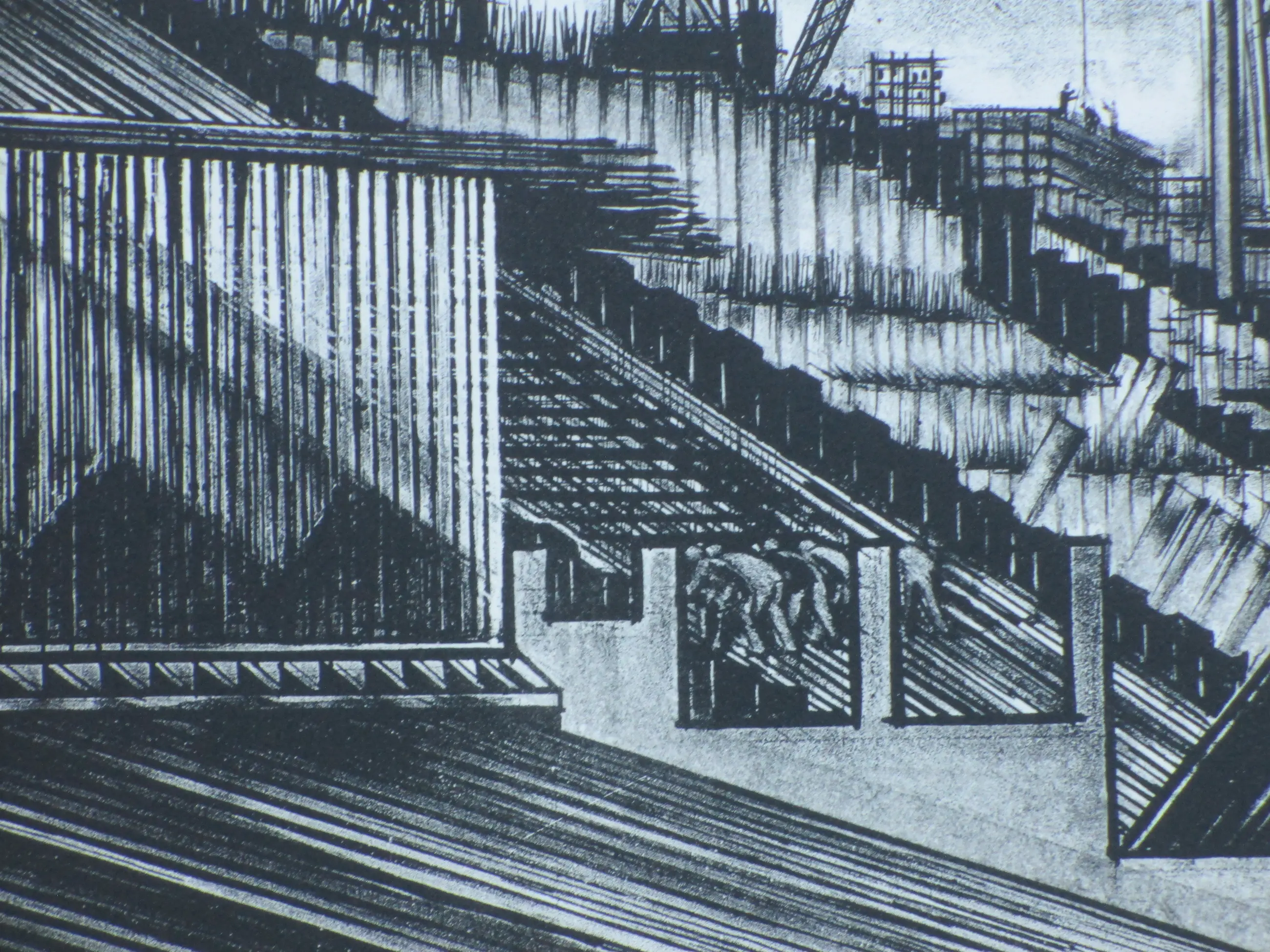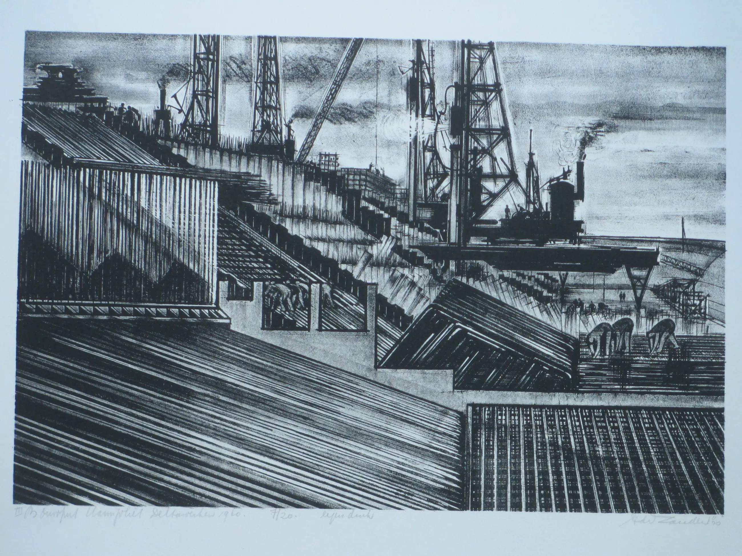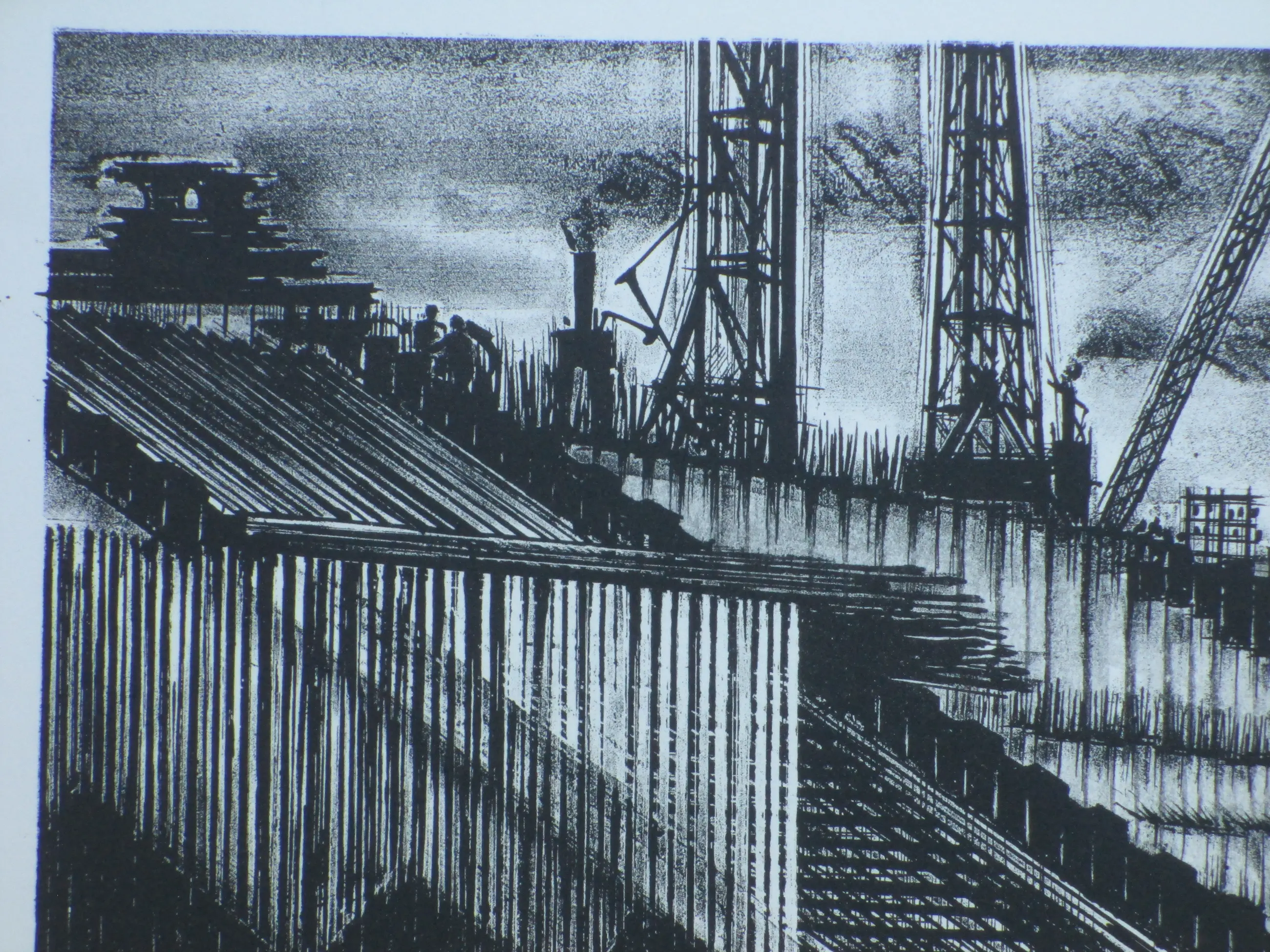 Eduard van Zanden - Bouwput Haringvliet Deltawerken - Litho