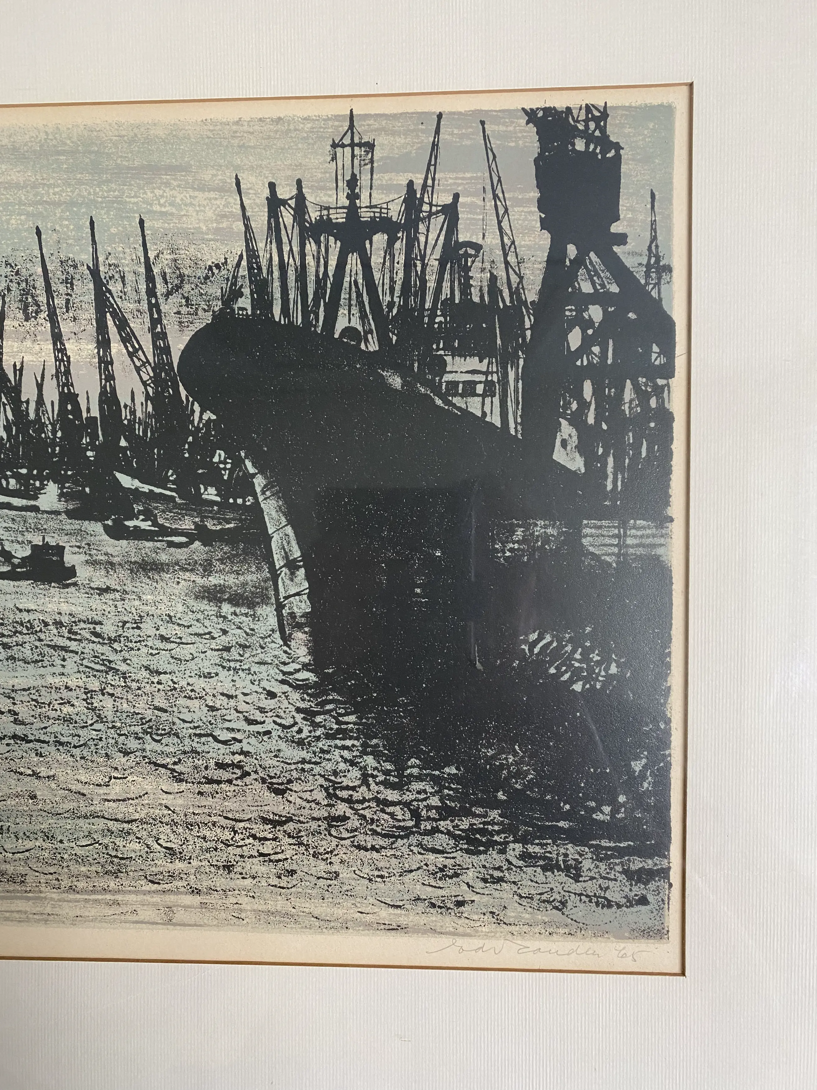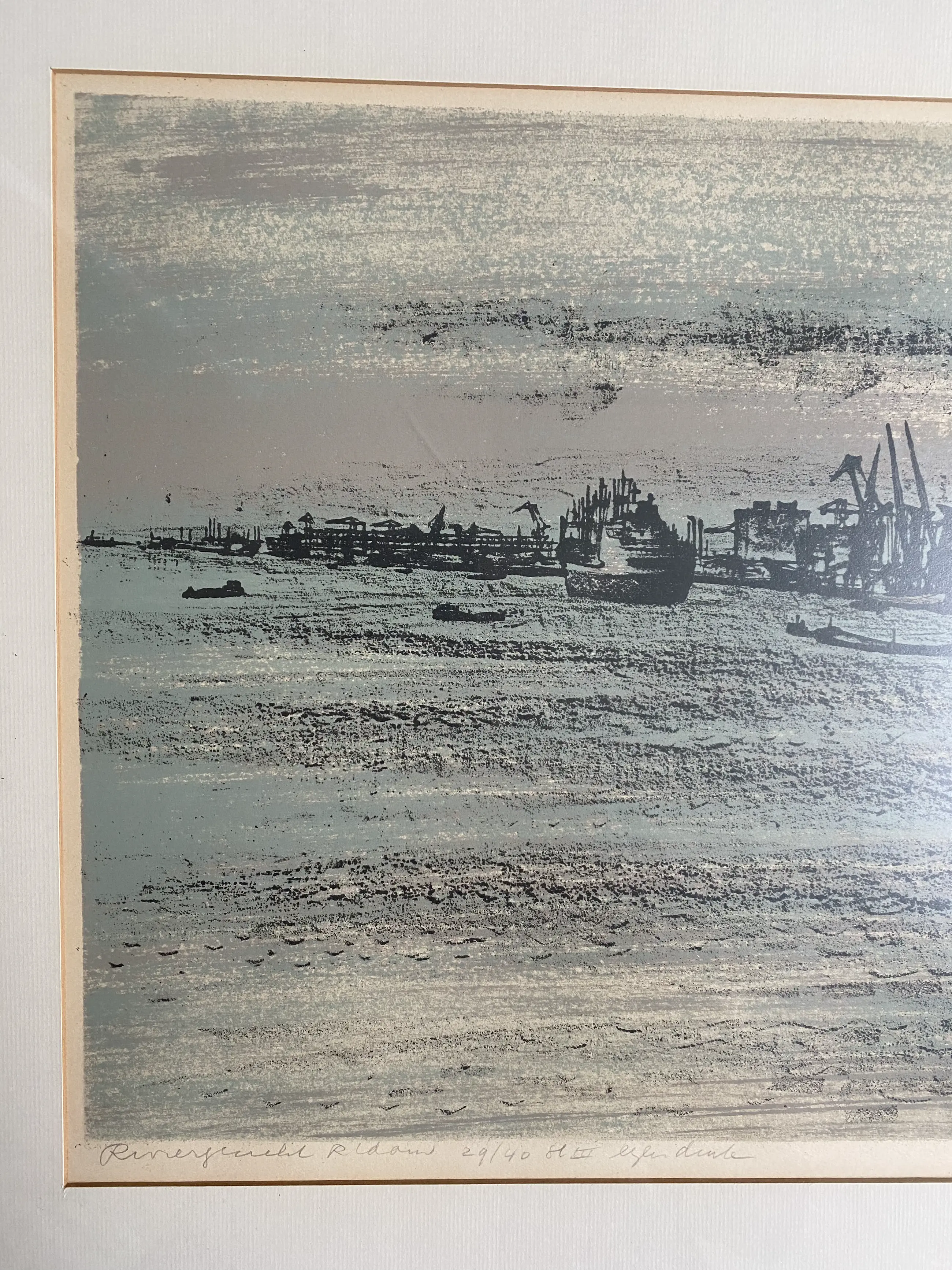 Ed van Zanden tekende en etste de Rotterdamse haven, hij wijdde daar zijn hele leven aan, waarbij de veranderingen in de haven vastgelegd werden. Onder het werk met potlood geschreven:
