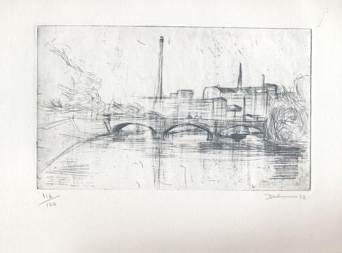 Edwin Dickman - Brücke in Moabit, Radierung, 1988
