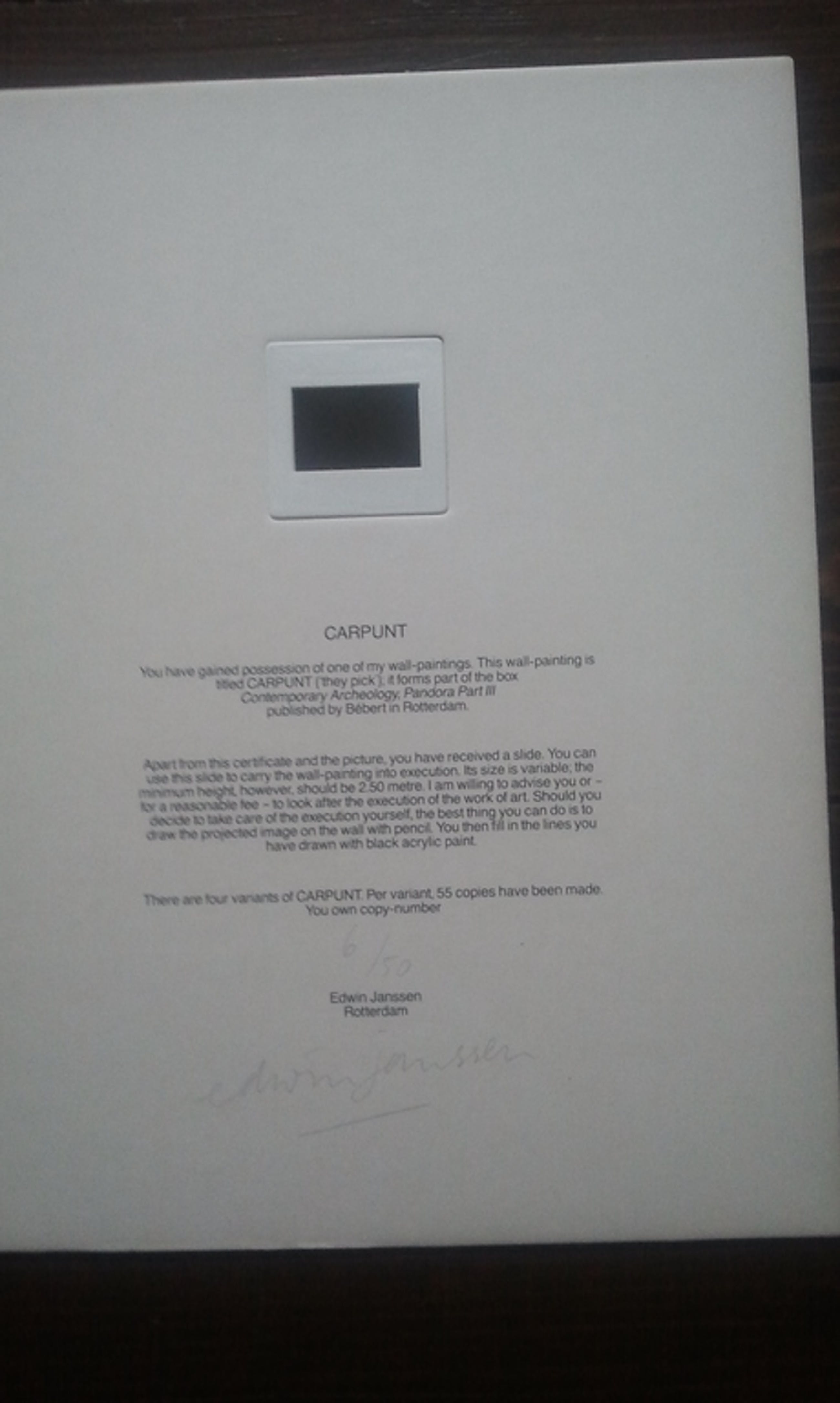 Dia met afbeelding van een muurtekening van Edwin Janssen en een zeefdrukje.