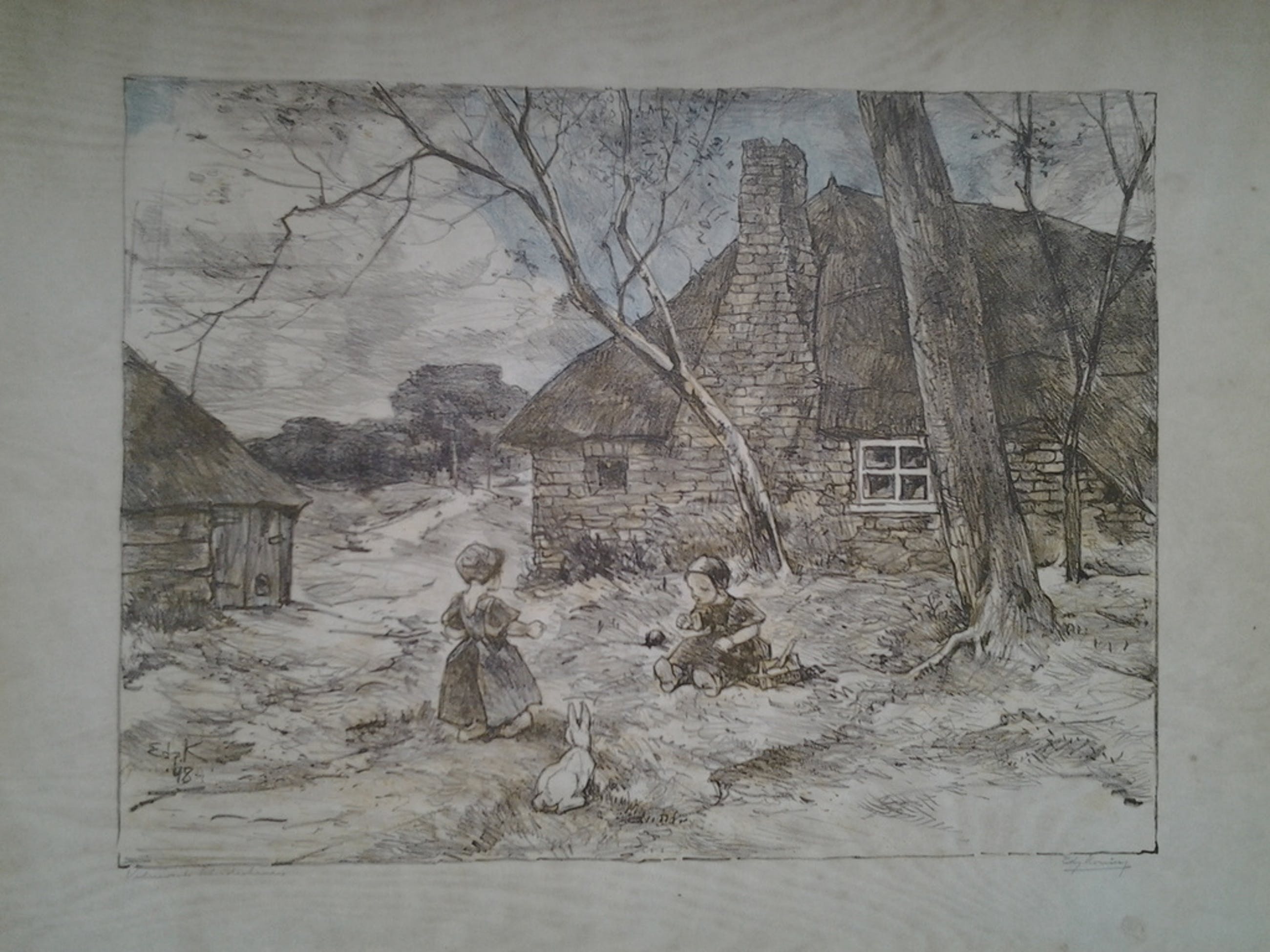 Edzard Willem Koning (1869-1954), kleurentekening. Titel: Veluwsche Kinderkens. Handgesigneerd met potlood r.onder, links initialen met datum. Afmetingen: 54x69 cm. Afhalen kan zonder bijkomende kosten. Verzendkosten 7,00