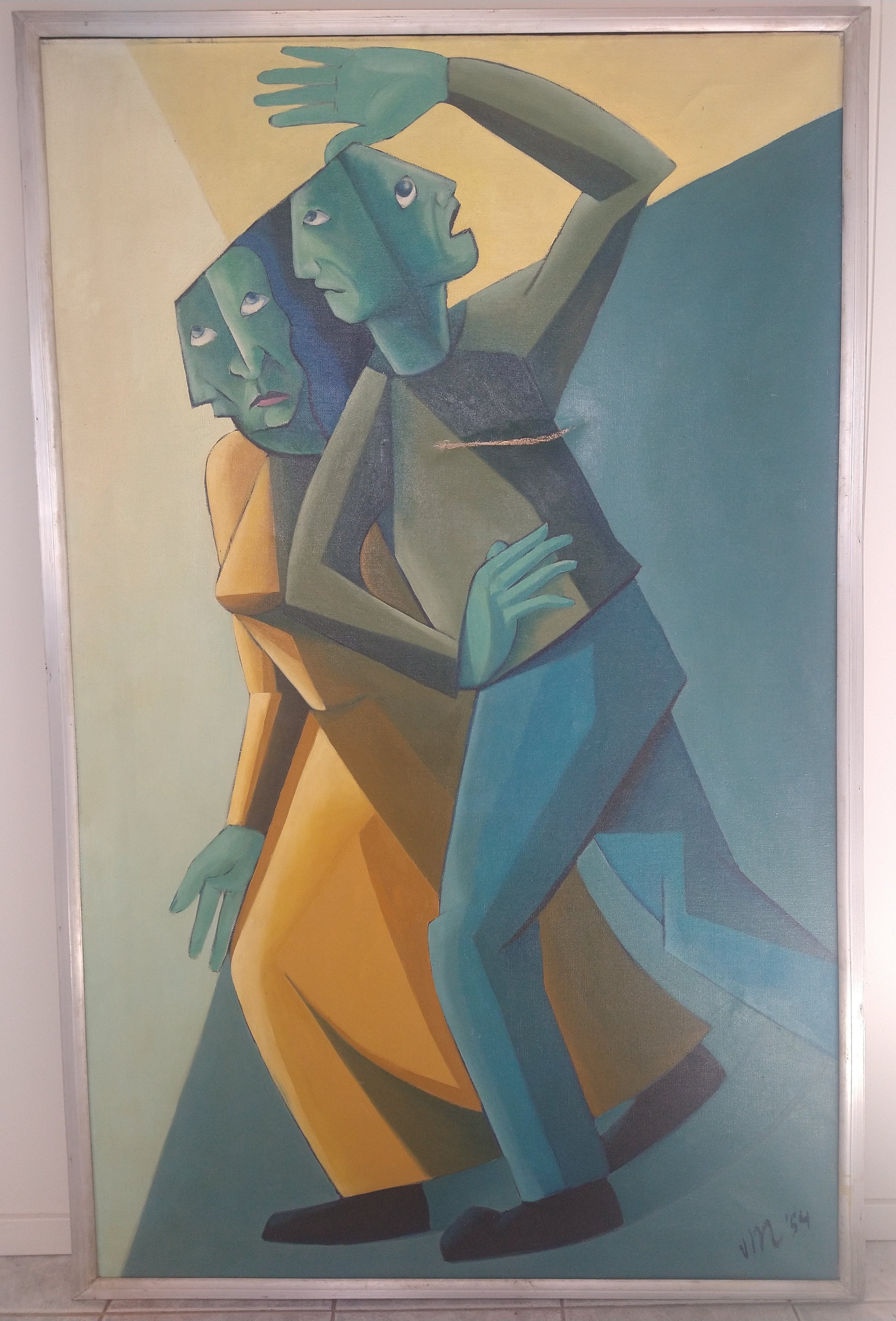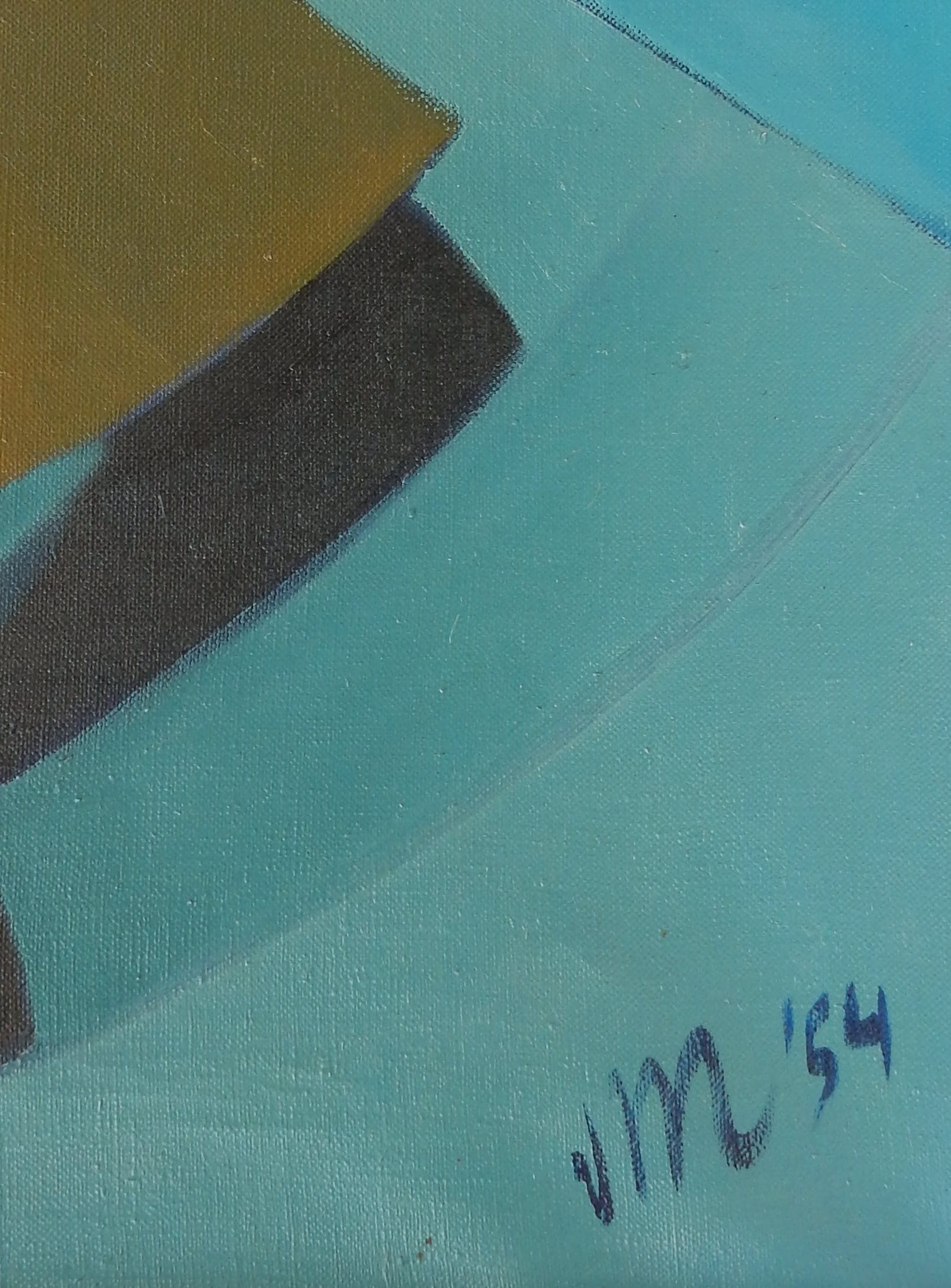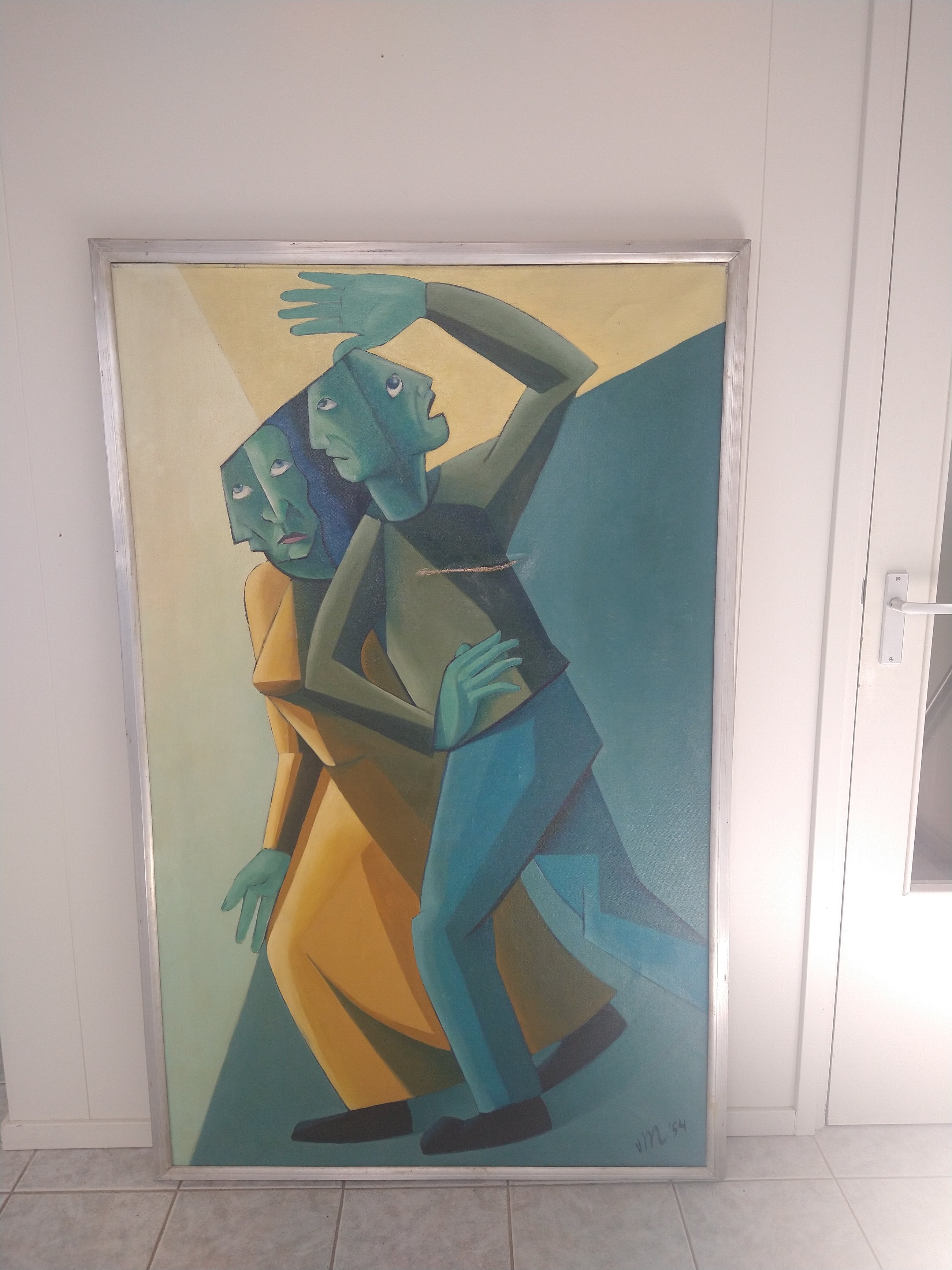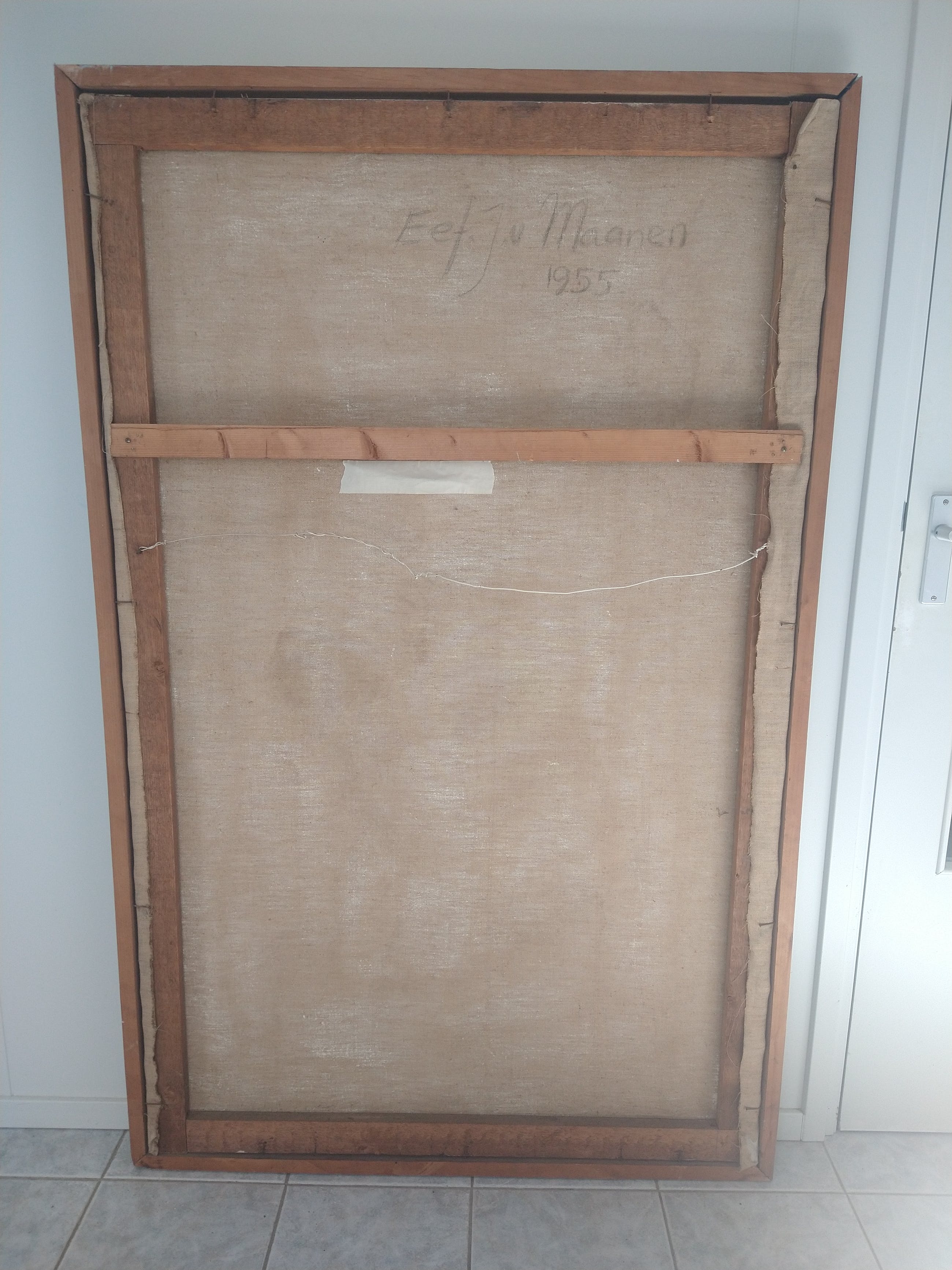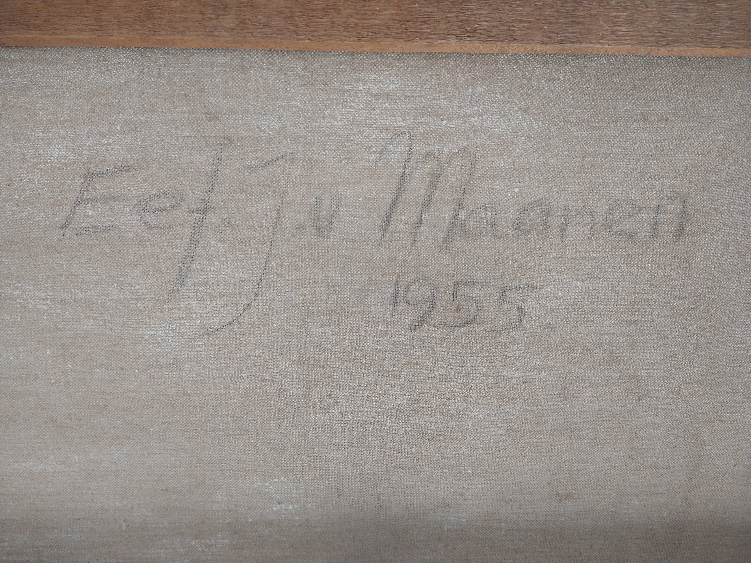 Groot olieverf op doek door Eef (Evert Jan) van Maanen Het is gesigneerd en rechtsonder gedateerd 1954 Aan de achterzijde is het nogmaals gesigneerd en gedateerd 1955. Het zou dus goed kunnen dat dit werk eind 1954 begin 1955 geschilderd is, óf het betreft een foutje van de schilder