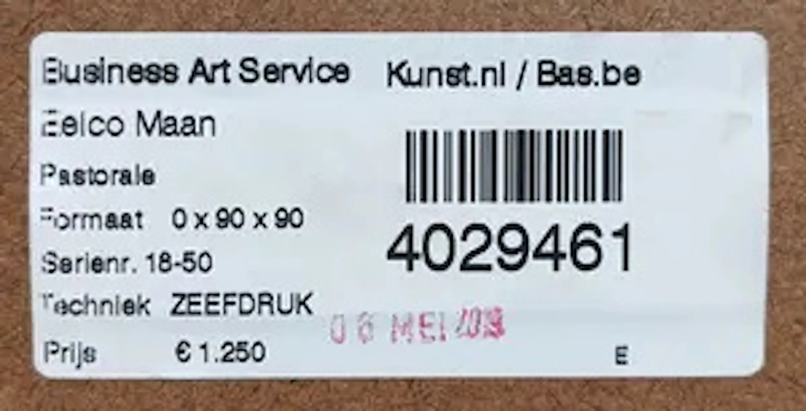 Ben u niet in staat om een werk zelf af te halen, dan kunt u een koeriersdienst inschakelen om het werk te laten afhalen. Klik hier voor meer informatie over hoe dit werkt en bekijk de tarieven.