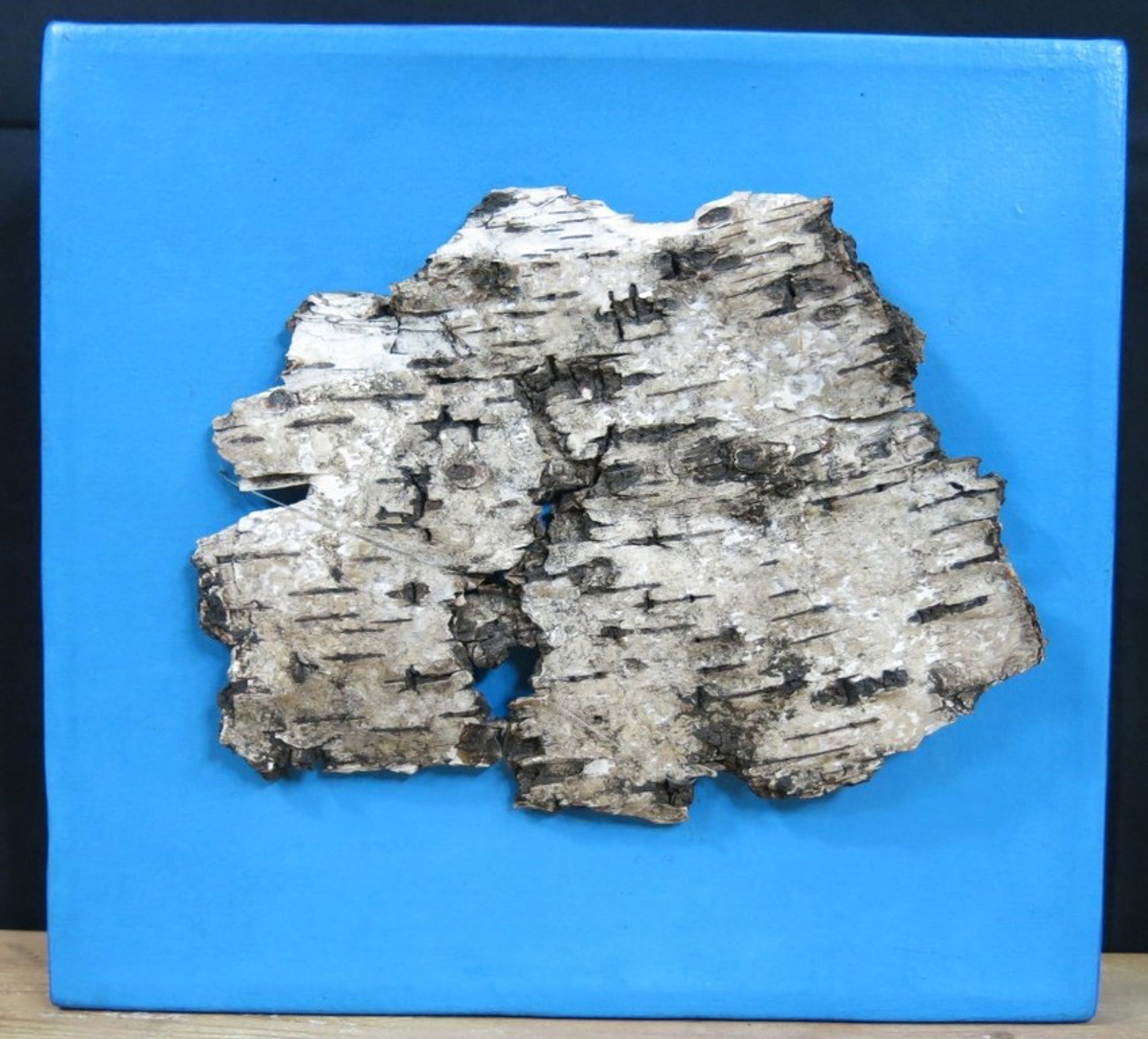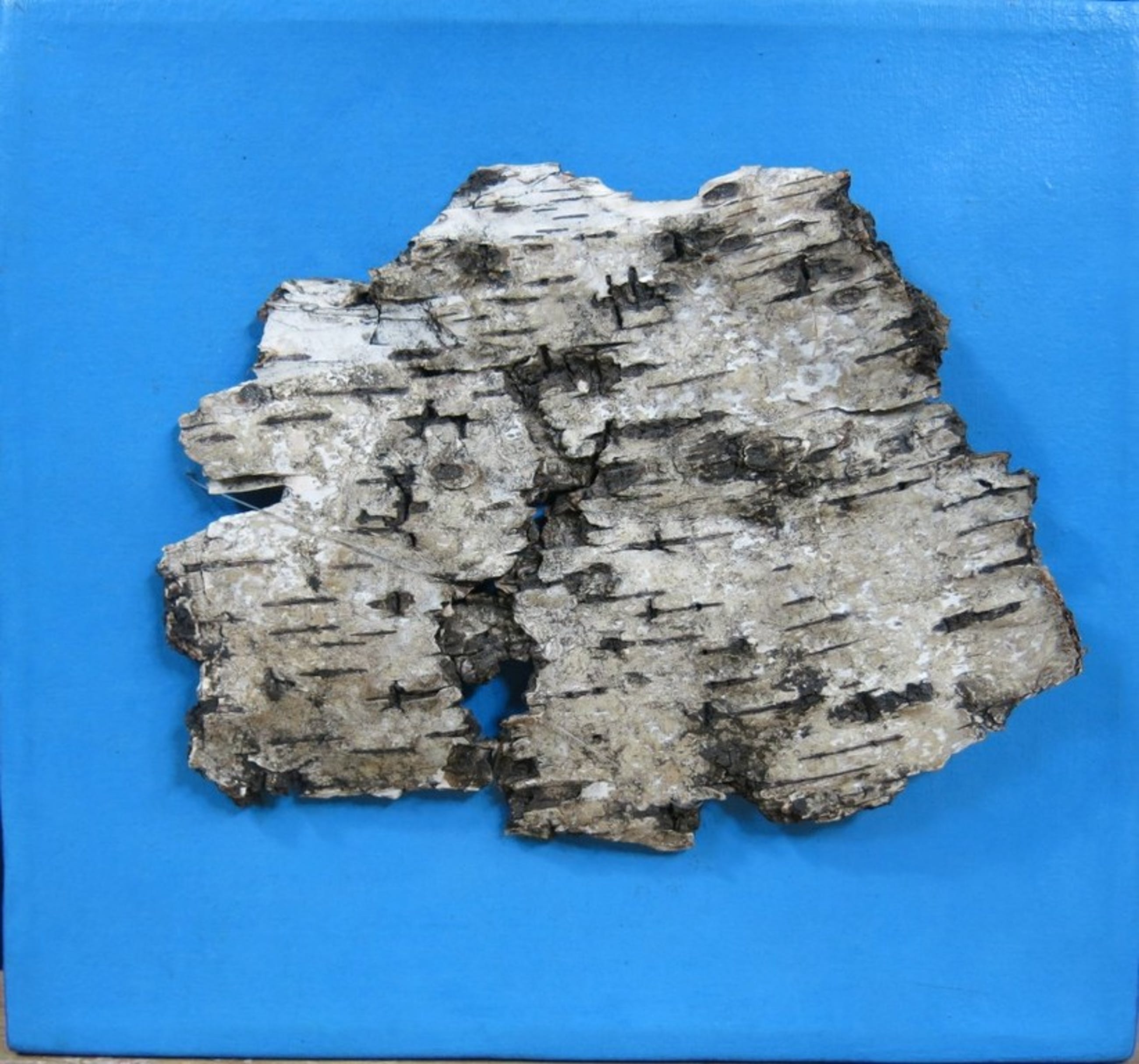 Materiaal: Acryl, berkenbast, nylondraad op doek.