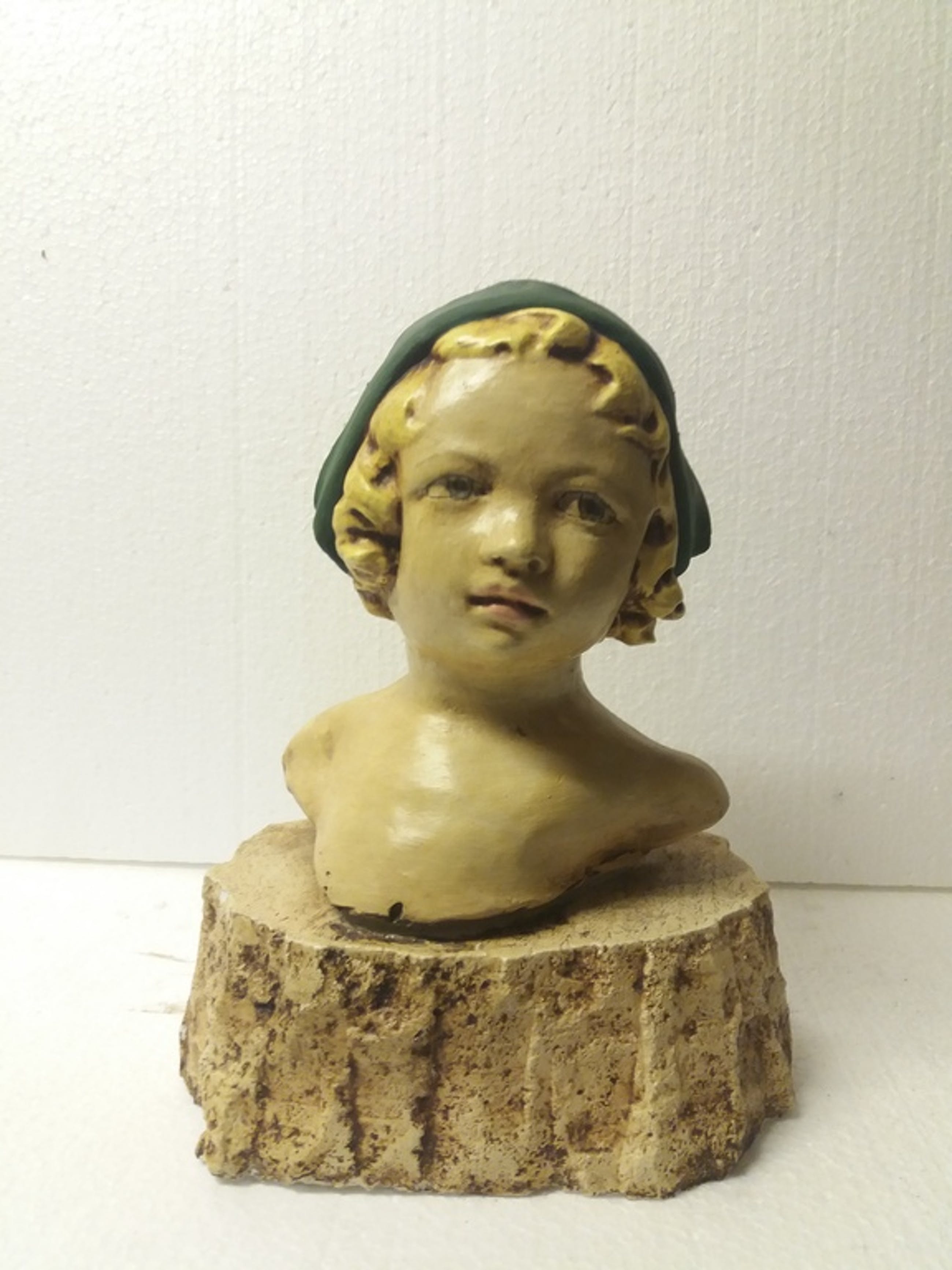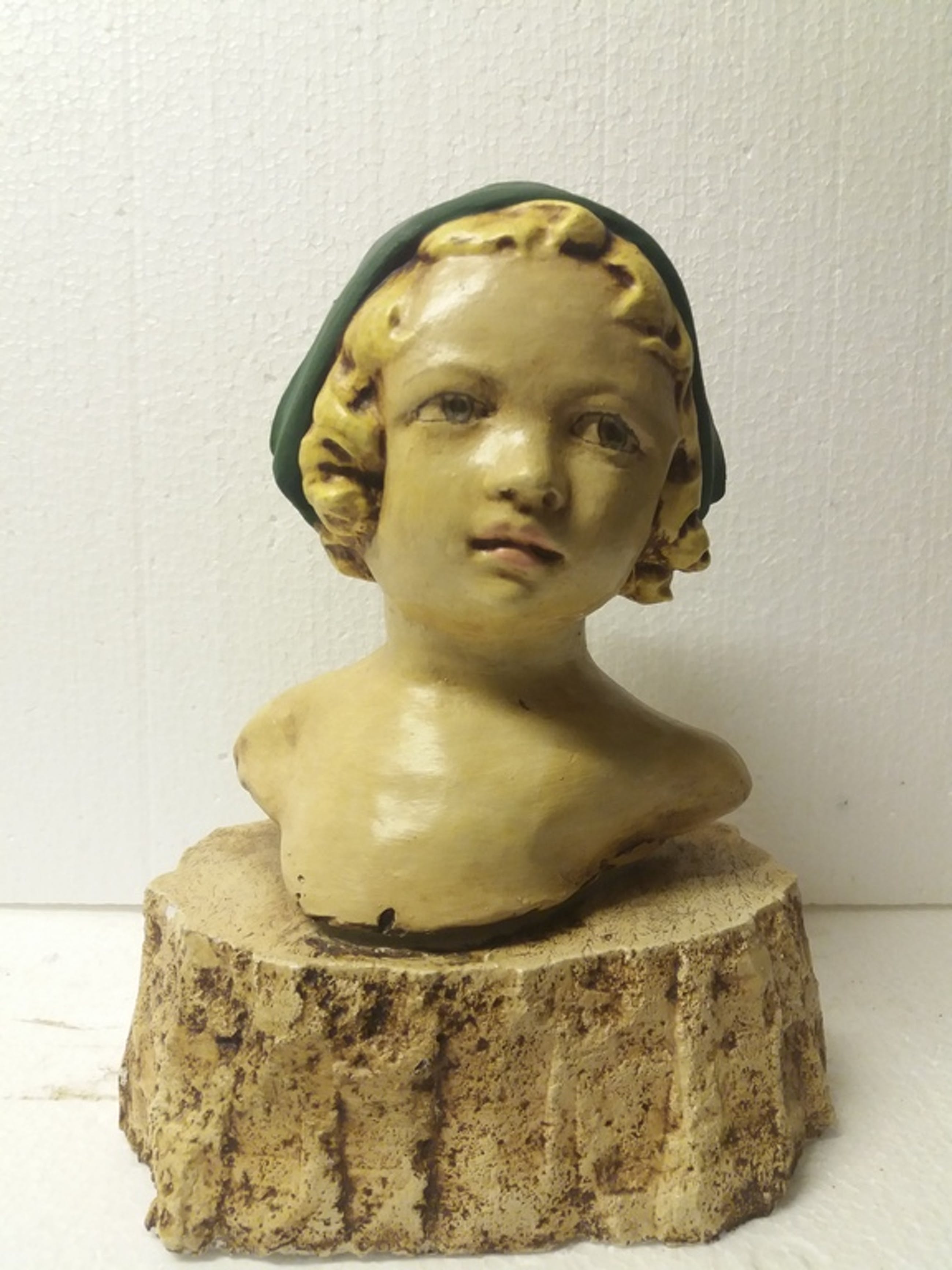 Een polychroom beschilderde gipsen buste van een jonge vrouw, eerste Helft van de 20e eeuw,