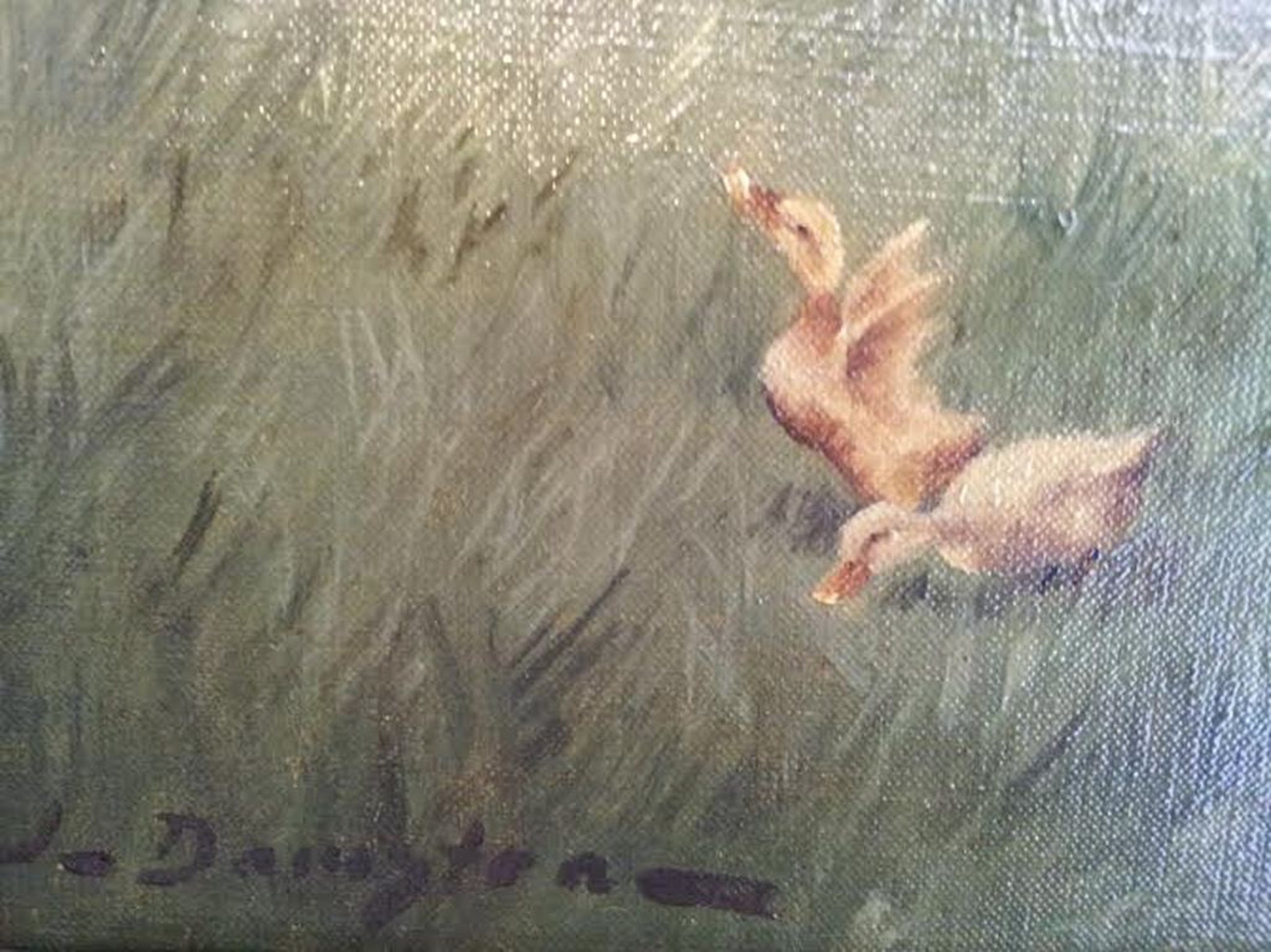 Zeer fraai werk - op doek- door J (Jeroen) Damstra. Bekend van zijn eendenschilderijen (beetje in de stijl van Constant Artz en Hendrik Breedveld). Eendenfamilie bij het water. In keurige conditie. Netjes ingelijst en ook - de houten- lijst is in prima staat, Linksonder gesigneerd. Kortom een pracht werk.