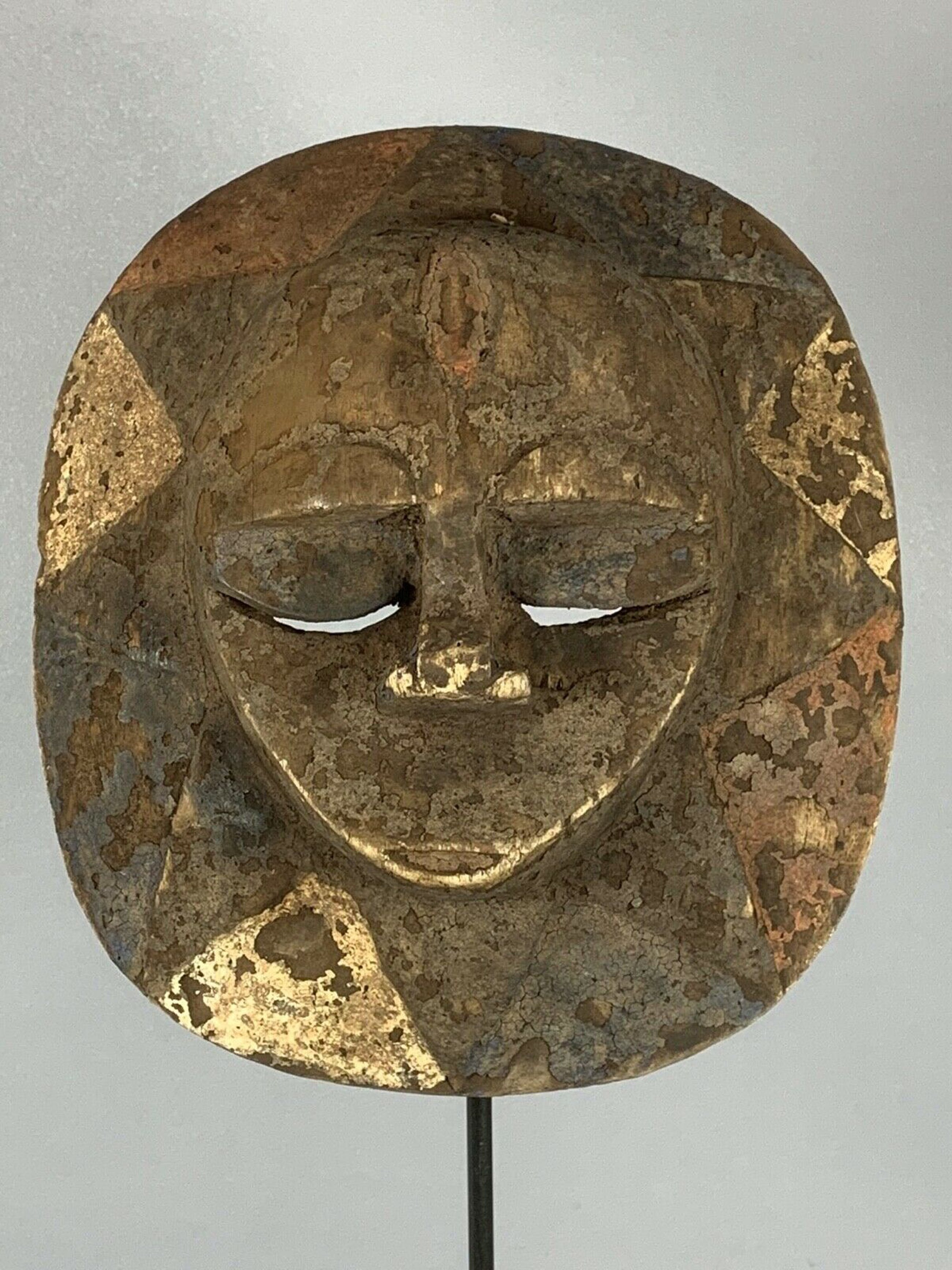Tribal used Rare African Sun mask from Eket, Nigeria. Hand carved from a single piece of wood, with color pigments. Diameter: 23 cm.