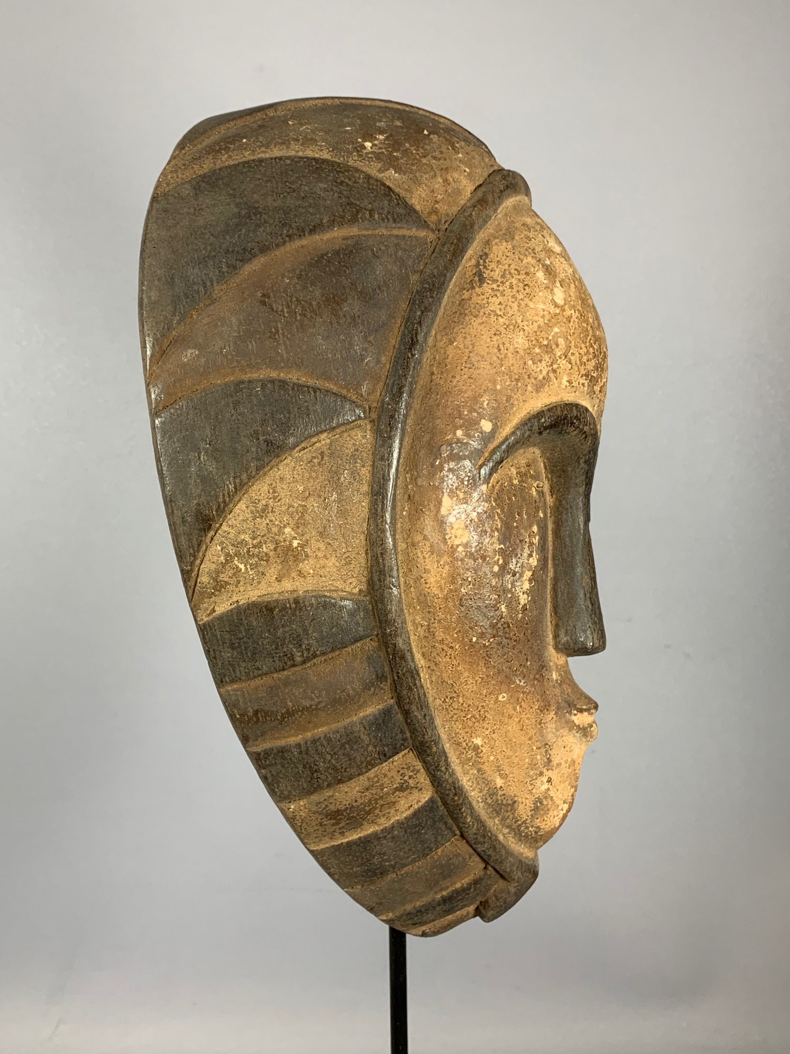 Tribal used Rare African Old Nigwria Eket mask, Nigeria. Hand carved from a single piece of wood, with color pigments.Diameter: 29 cm.