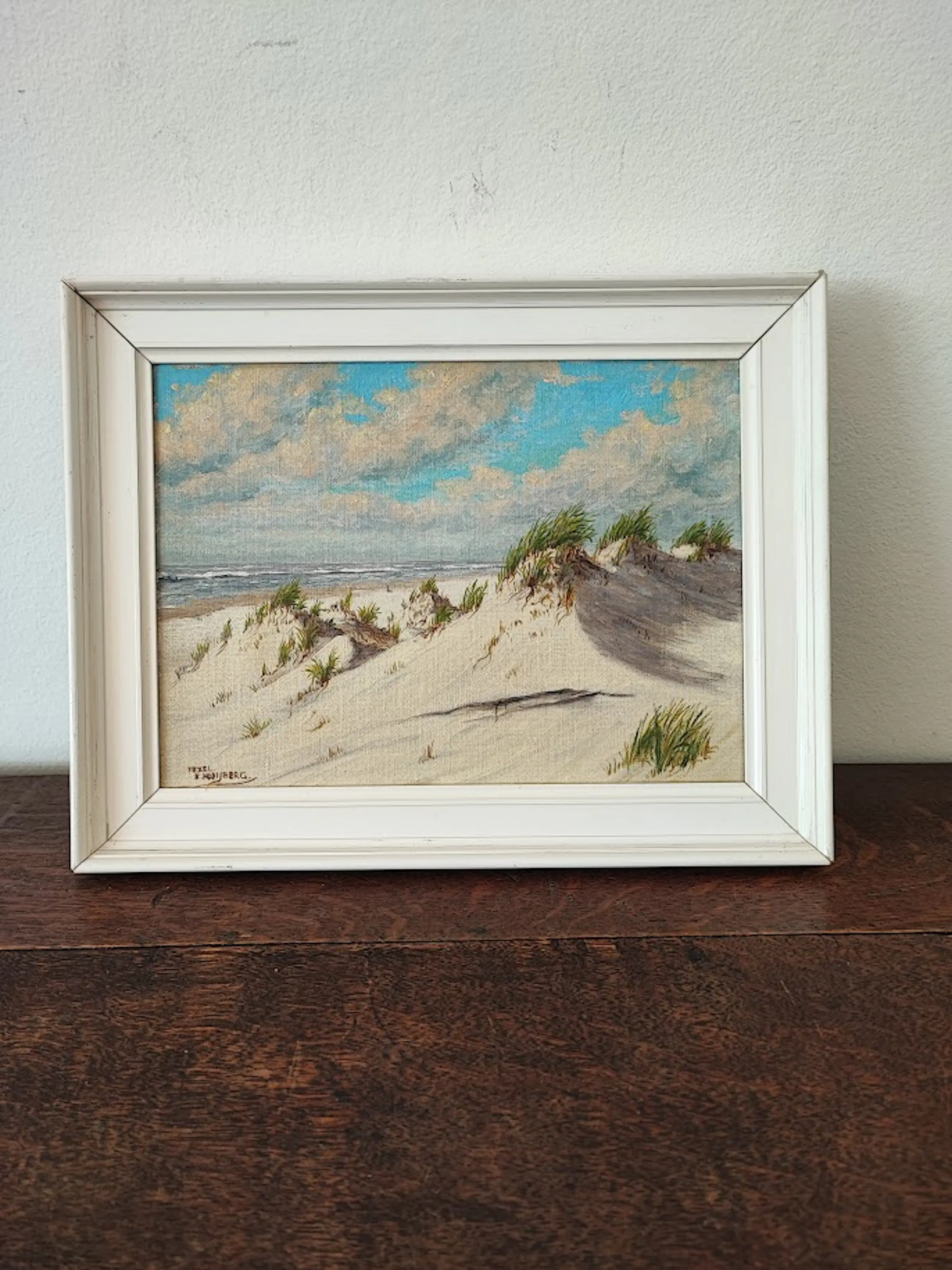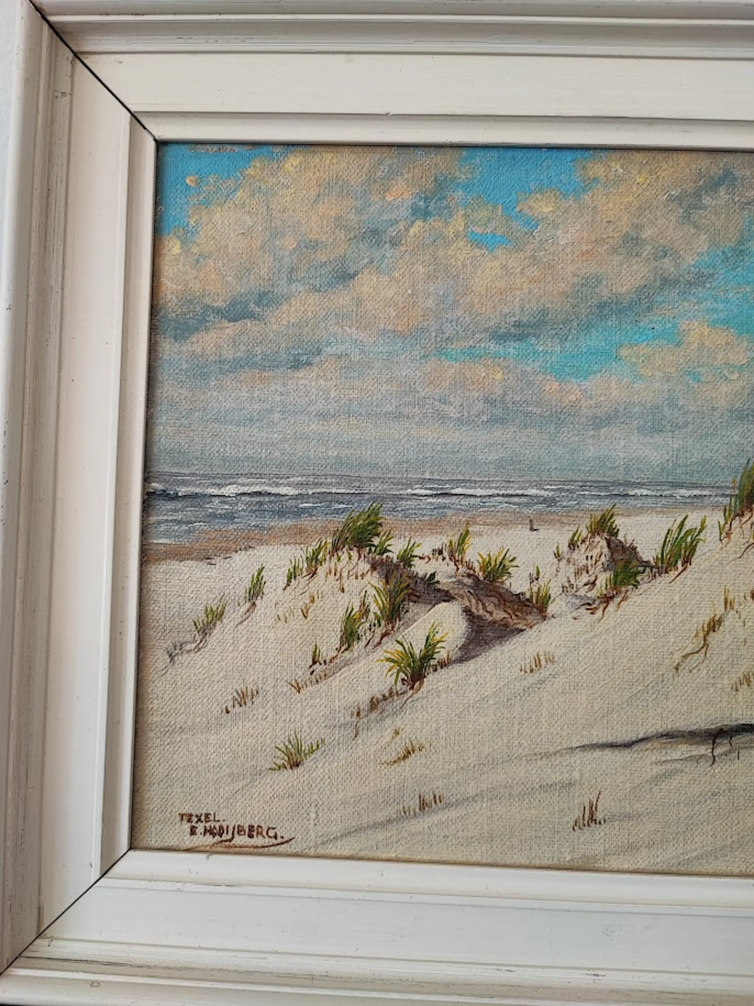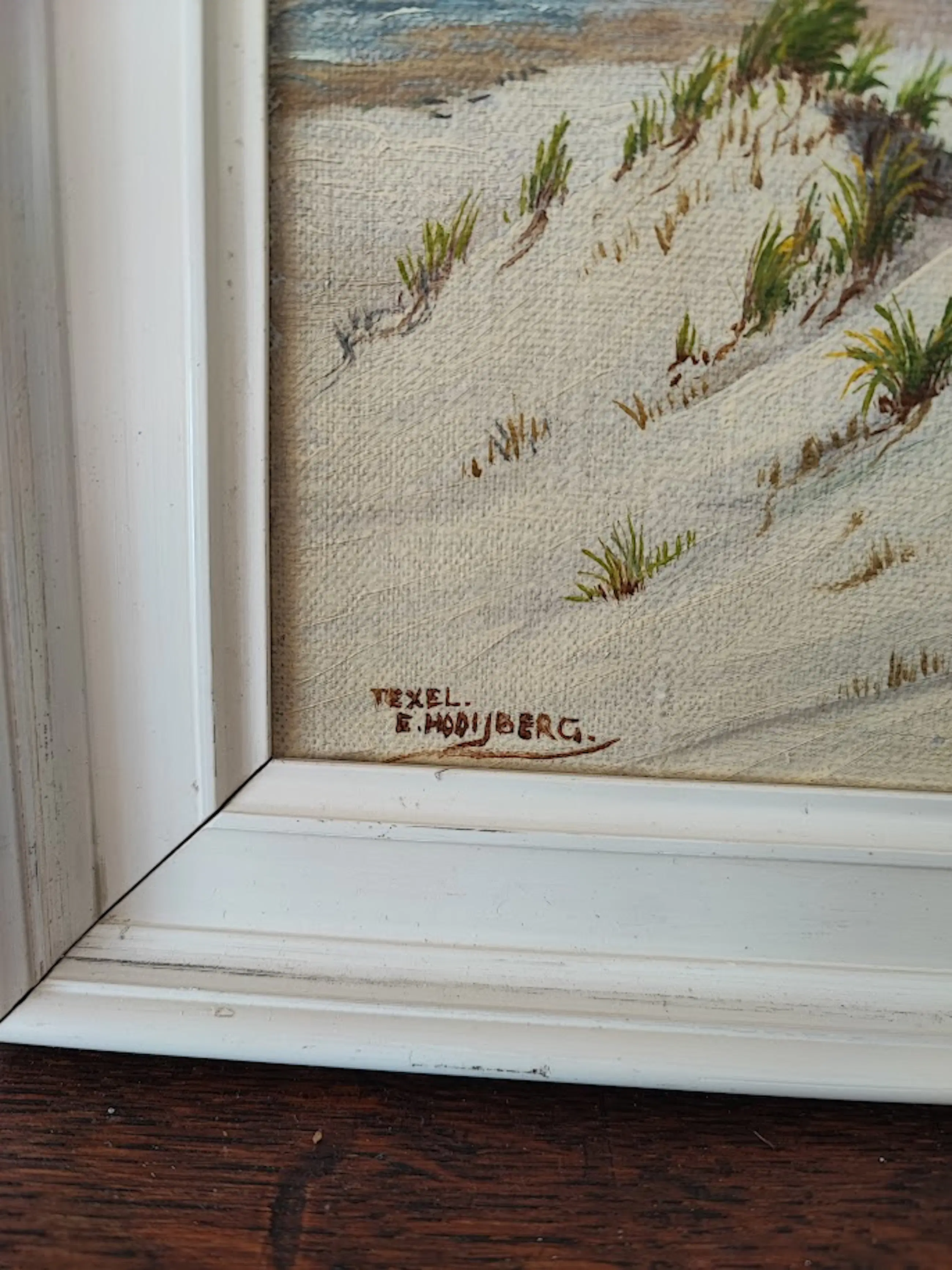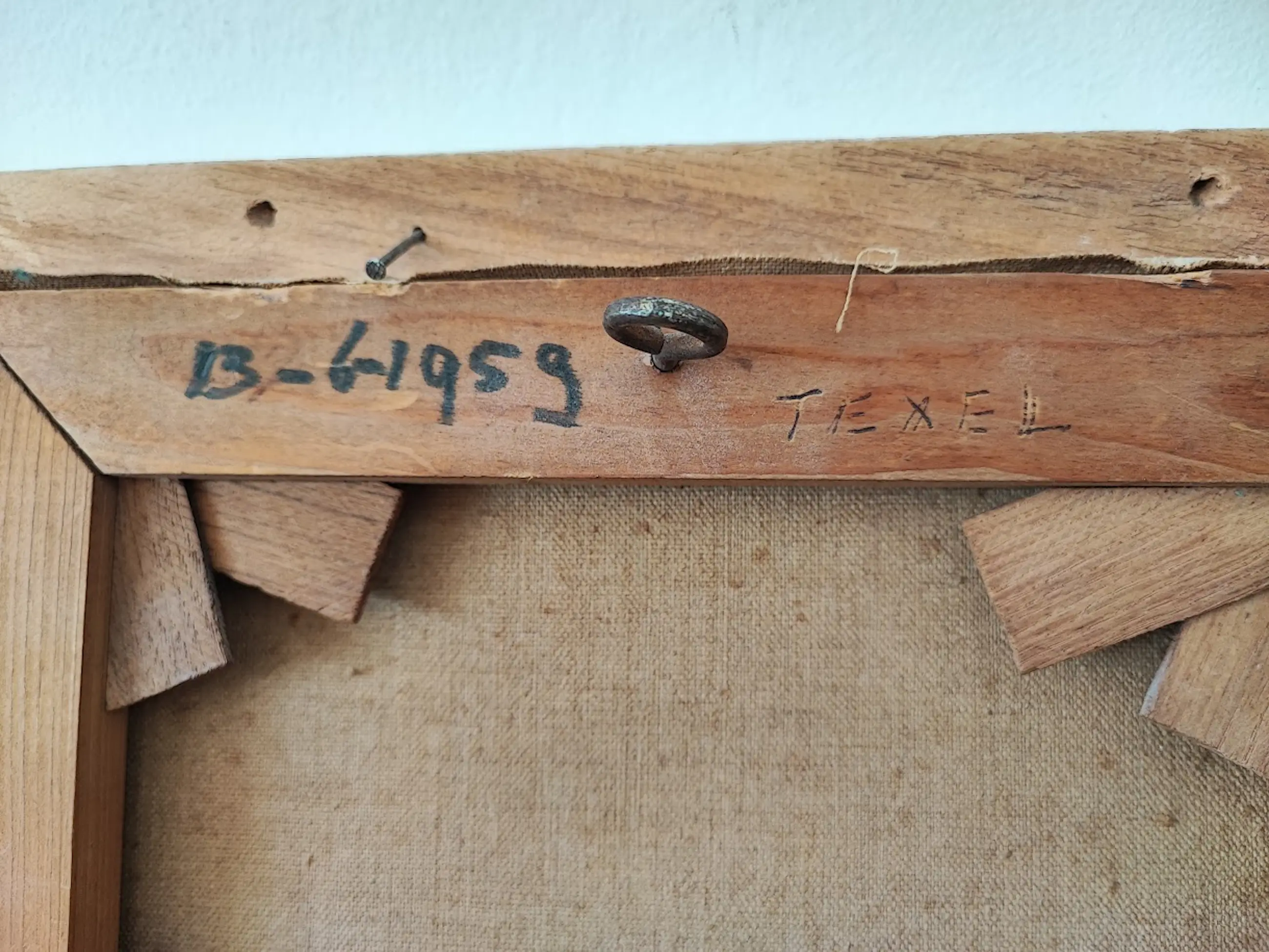 Mooi klein werk van Elbert Hooijberg welke linksonder is gesigneerd. Op de achterkant staat in het hout 'texel' gekerft met daarbij 'B-6-1-1959'. Het werk hangt rederlijk los in de lijst. Een andere lijst is aan te raden.