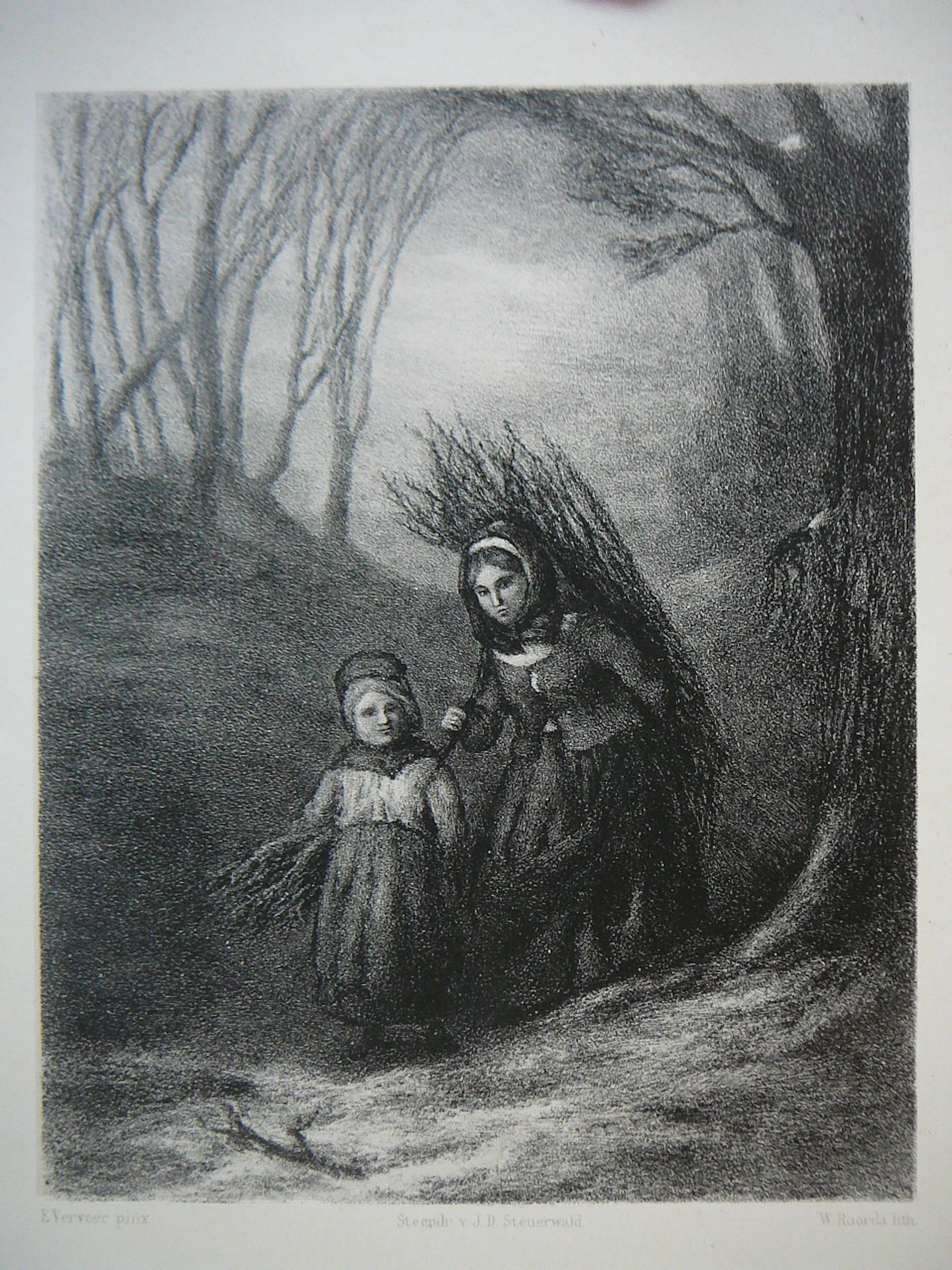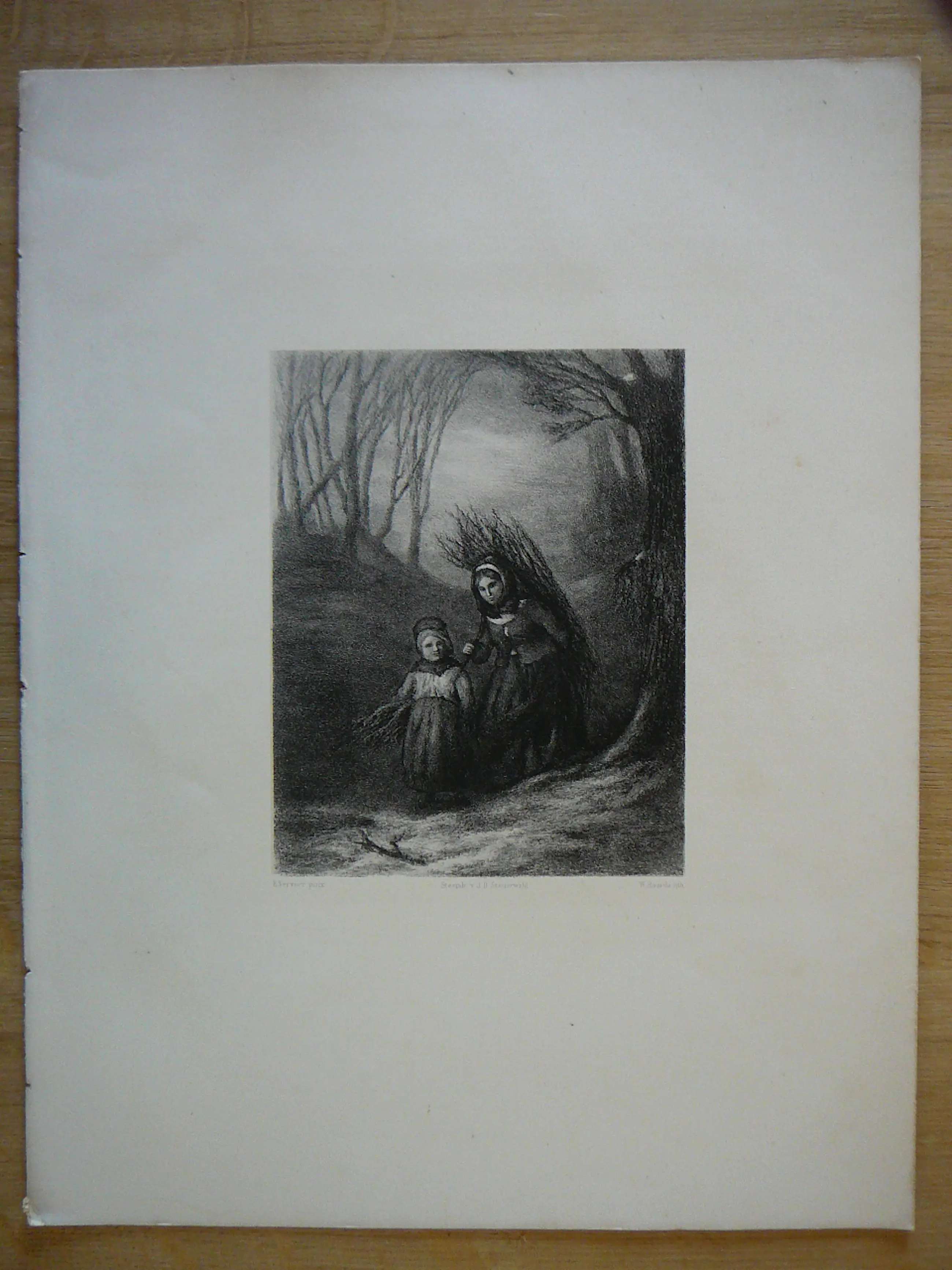 Heel mooie litho door W Roorda naar een schilderij van E Verveer uit 1864 gedrukt door J.D.Steuerwald afm papier 34,2 x 26,3 cm