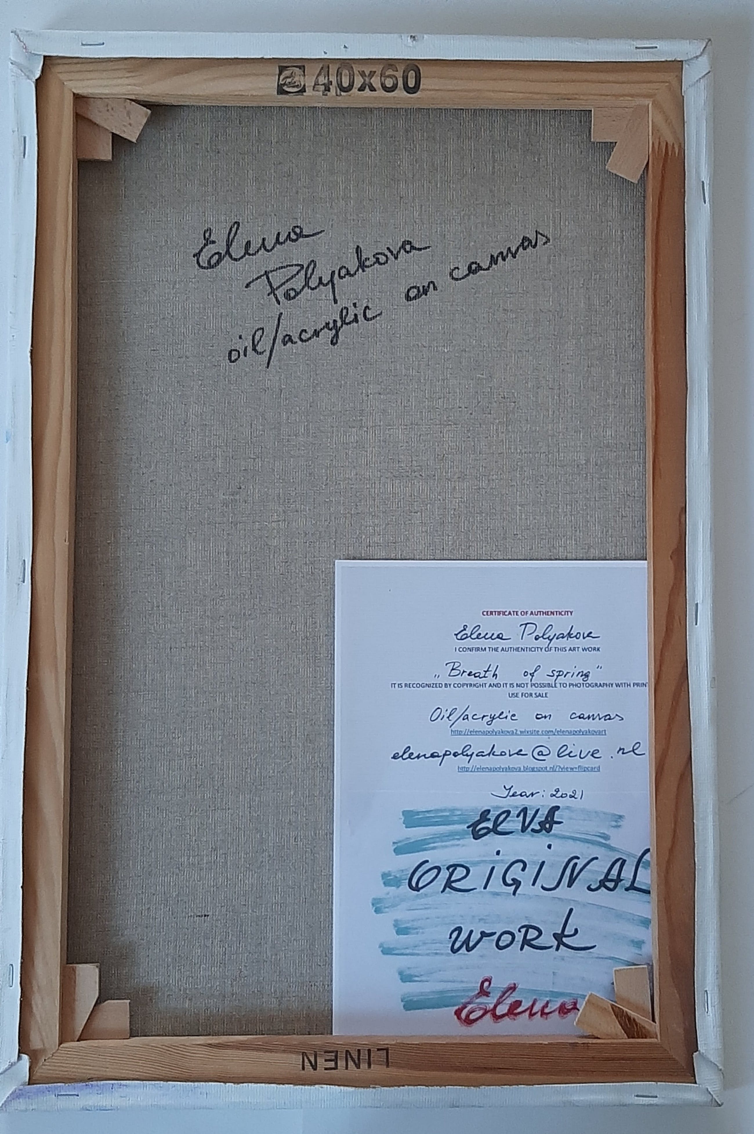 Prachtig kunstwerk van de Amsterdamse kunstenares Elena Polyakova, die woont en werkt in Amsterdam. Het is rechtstreeks uit haar atelier verkregen en wordt geleverd met een certificaat.