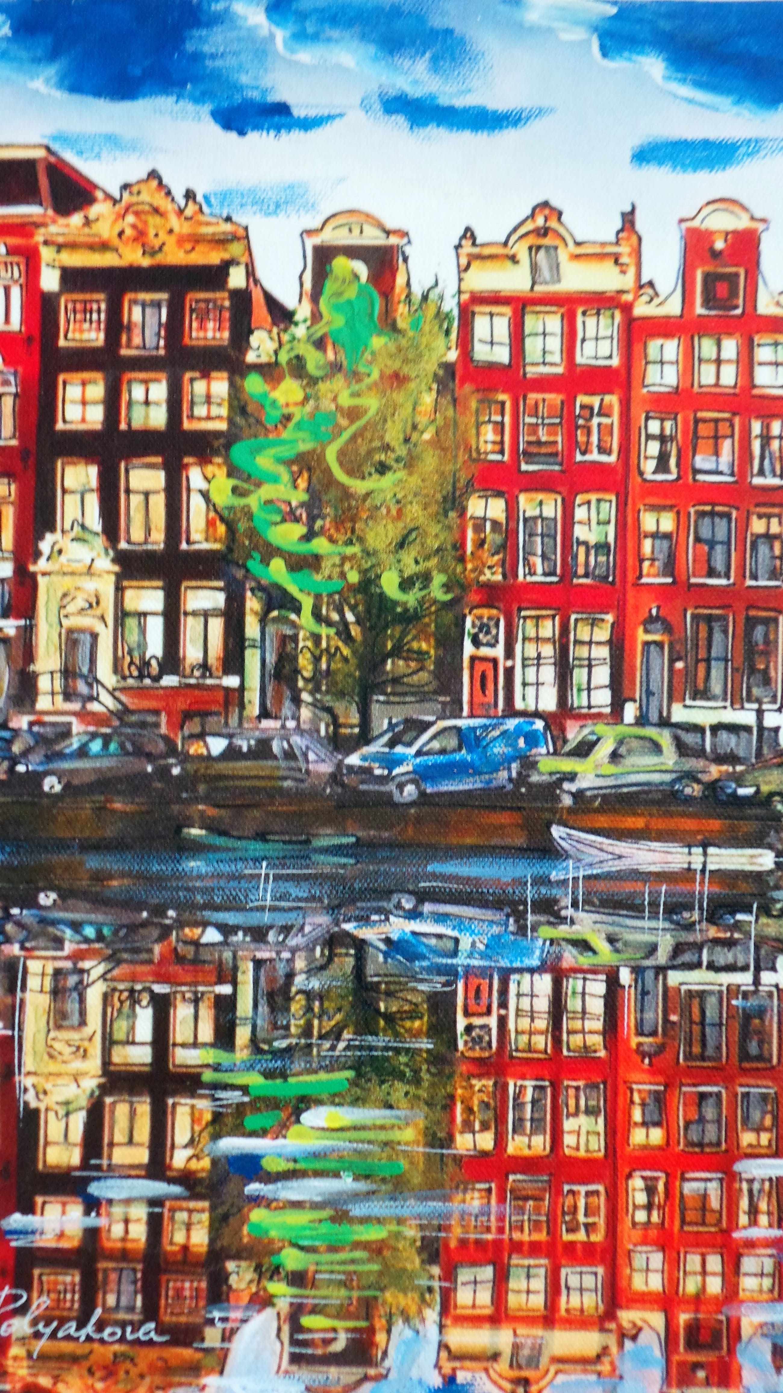 Mix media met inkt en aquarel over druk op papier, ingelijst. De kunstenaar zoekt de emotie van licht en beweging. Techniek op grens expressieve en impressionistische schilderijen, met zijn eigen unieke stijl. Certificaat van echtheid zit erbij. Conditie: in nieuwstaat uit eigen atelier.