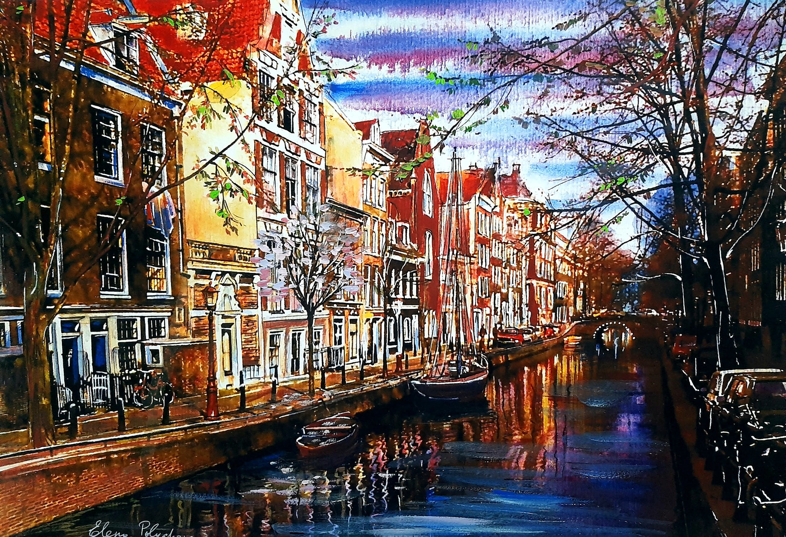 De kunstenaar zoekt de emotie van licht en beweging. Techniek op grens expressieve en impressionistische schilderijen, met zijn eigen unieke stijl.