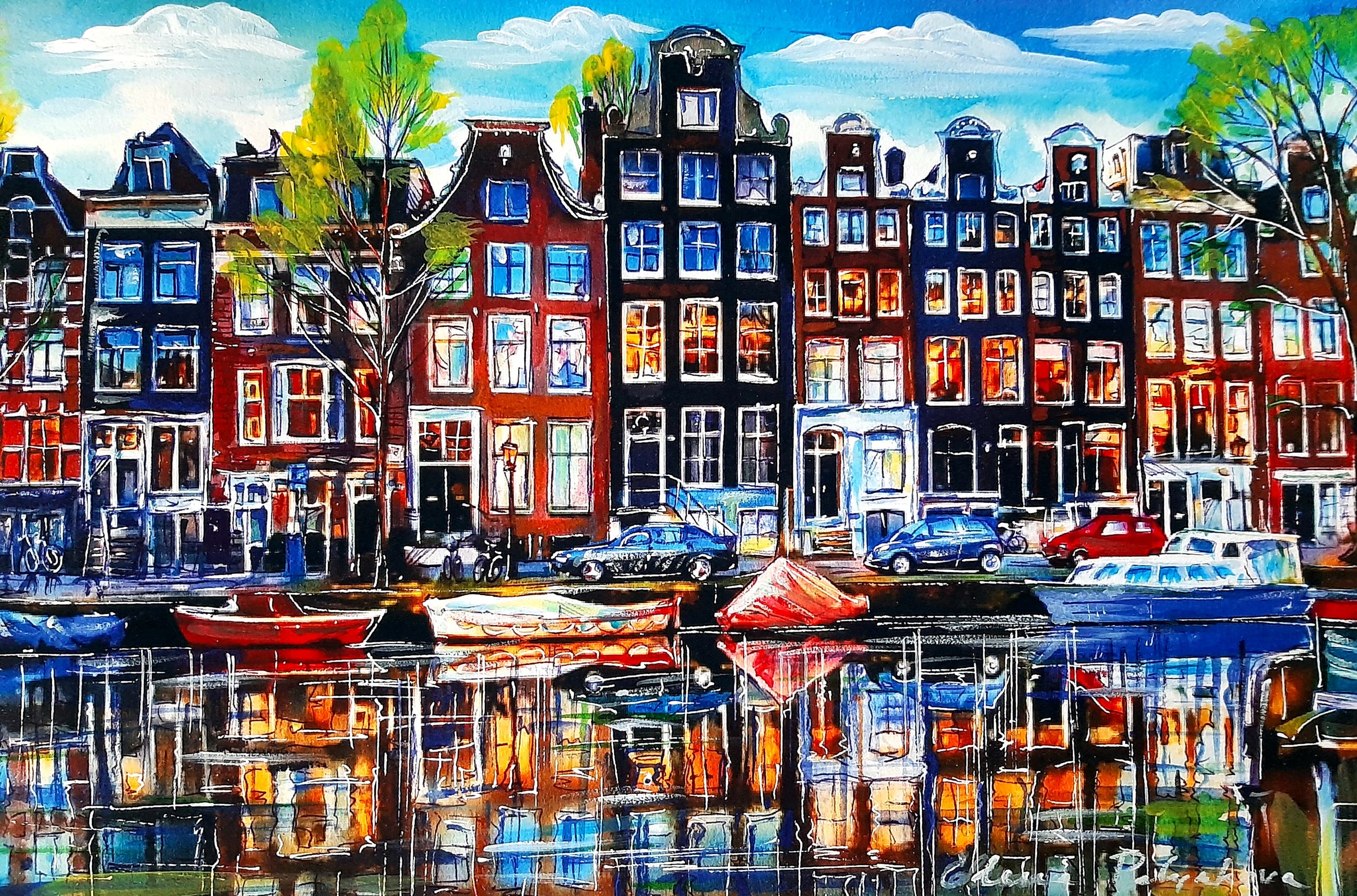 De kunstenaar zoekt de emotie van licht en beweging. Techniek op grens expressieve en impressionistische schilderijen, met zijn eigen unieke stijl.