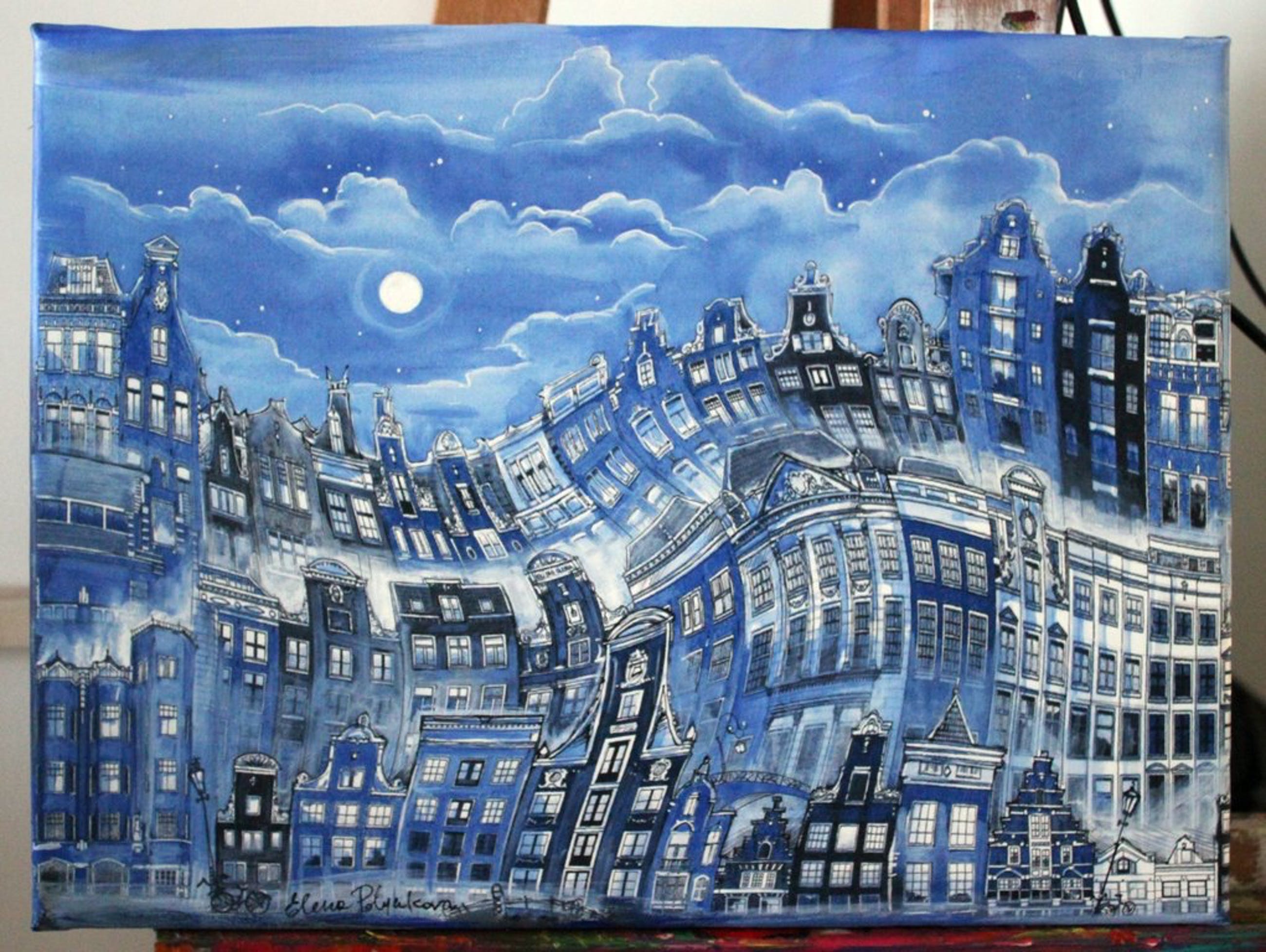 Gemengde techniek: Digitale werk op doek bijgewerkende met inkt ,olieverf, acrylverf.