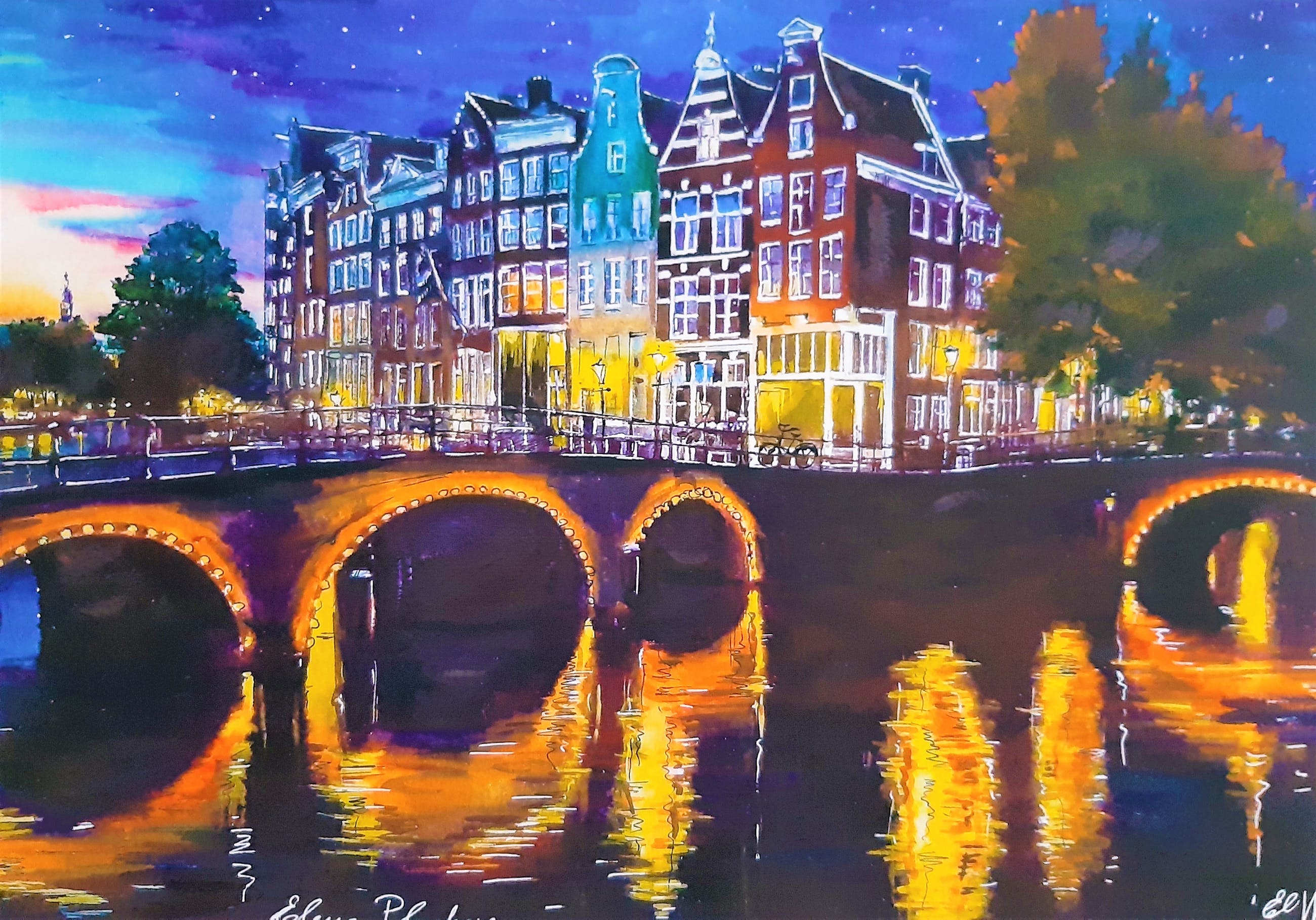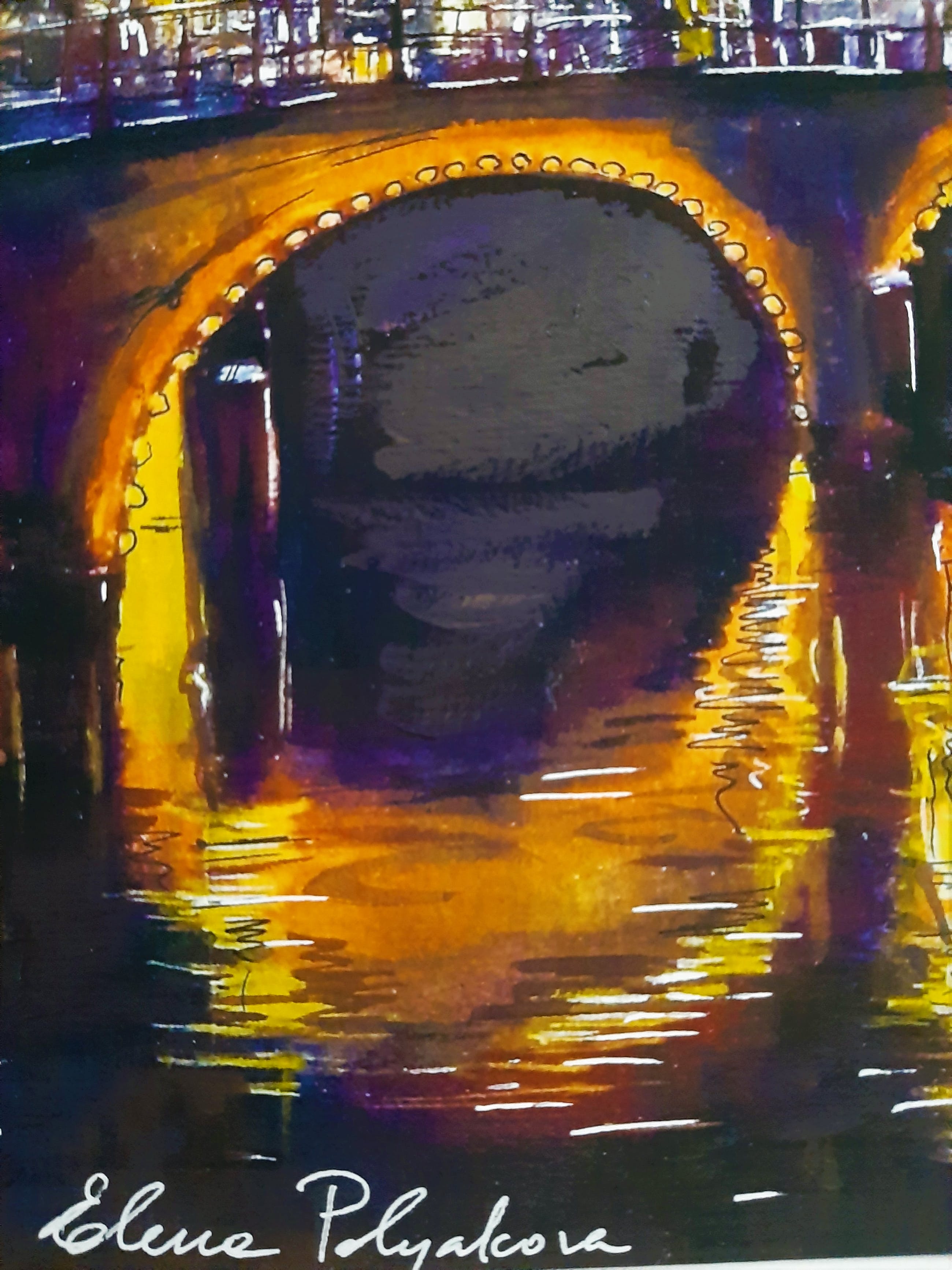 Elena Polyakova - ELVA Mix media met inkt en aquarel over druk , ingelijst. Certificaat van echtheid zit erbij. Conditie: in nieuwstaat uit eigen atelier.