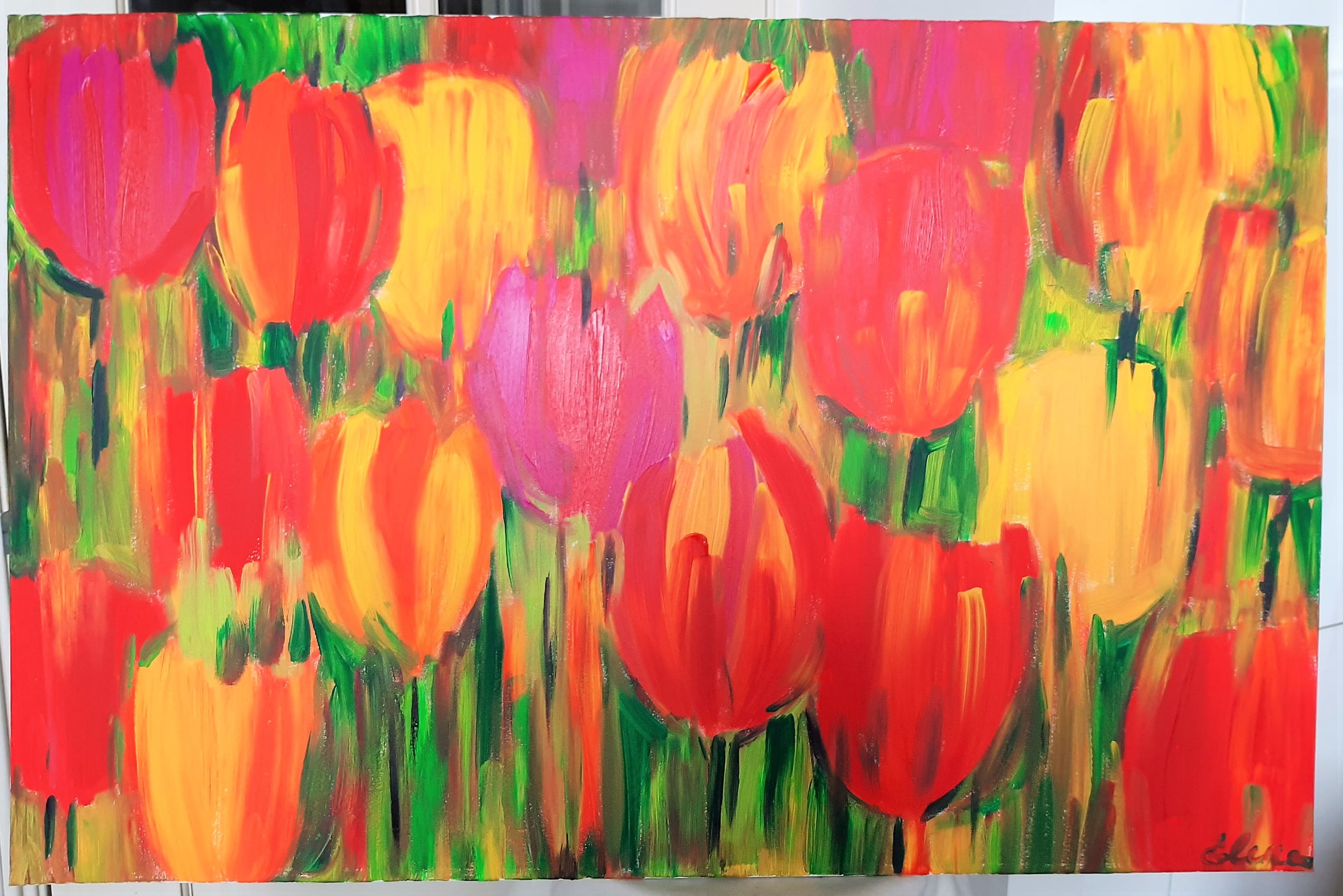 Acrylverf op doek - Handgesigneerd - origineel - 2020 Prachtig kunstwerk van de Amsterdamse kunstenares Elena Polyakova, die woont en werkt in Amsterdam. Het is rechtstreeks uit haar atelier verkregen en wordt geleverd met een echtheidscertificaat. Het item is in nieuwstaat en wordt volledig beschermd en verzekerd naar u verzonden.