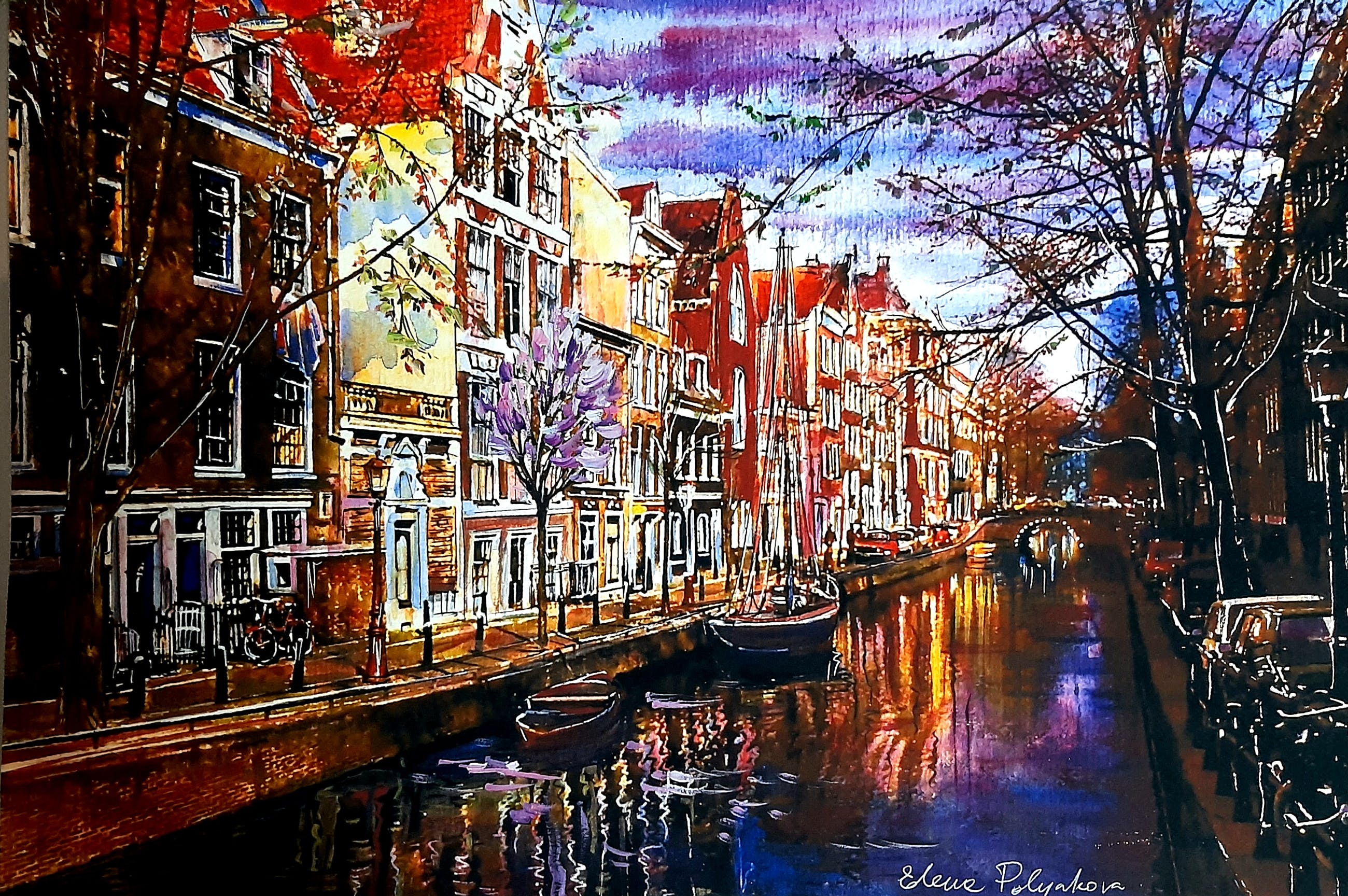 Acrylverf en inkt over giclee op papier - Uniek werk van kunstenaar Elena Polyakova. De kunstenaar zoekt de emotie van licht en beweging. Techniek op grens expressieve en impressionistische schilderijen, met zijn eigen unieke stijl. Certificaat van echtheid is inbegrepen.