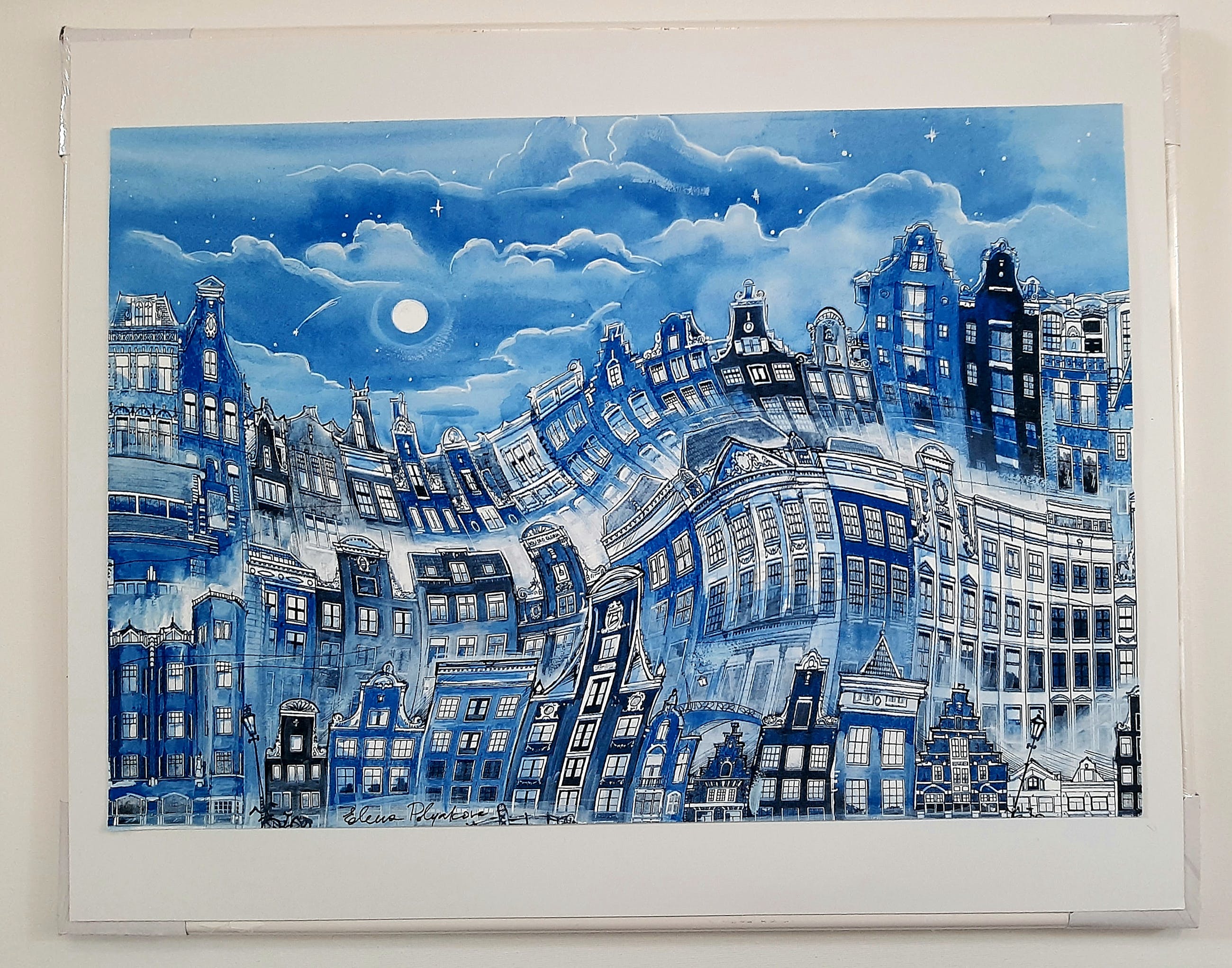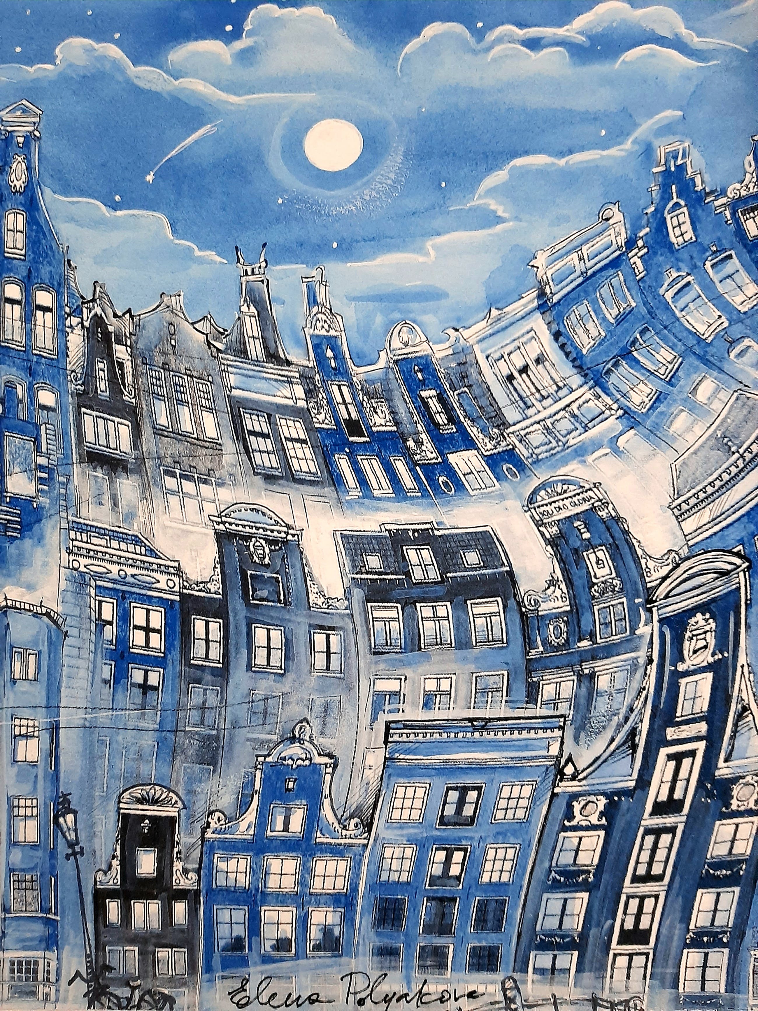 Acrylverf en inkt over giclee op papier - Uniek werk van kunstenaar Elena Polyakova. De kunstenaar zoekt de emotie van licht en beweging. Techniek op grens expressieve en impressionistische schilderijen, met zijn eigen unieke stijl. Certificaat van echtheid is inbegrepen.