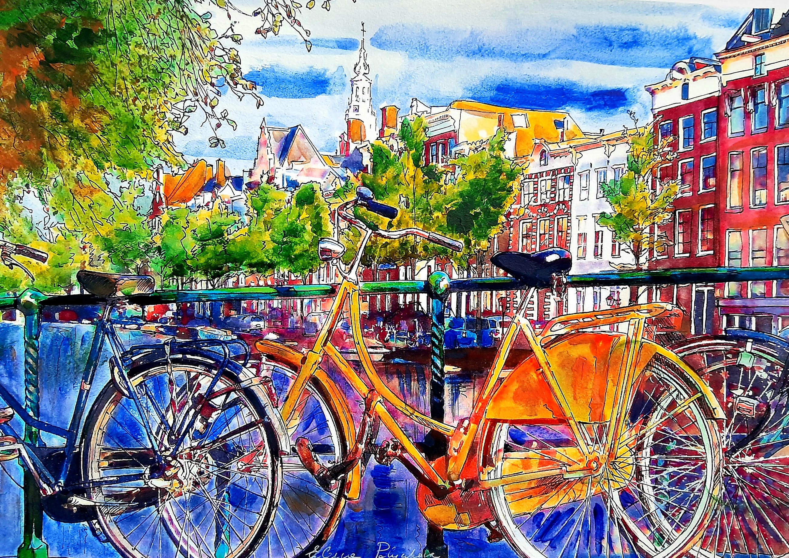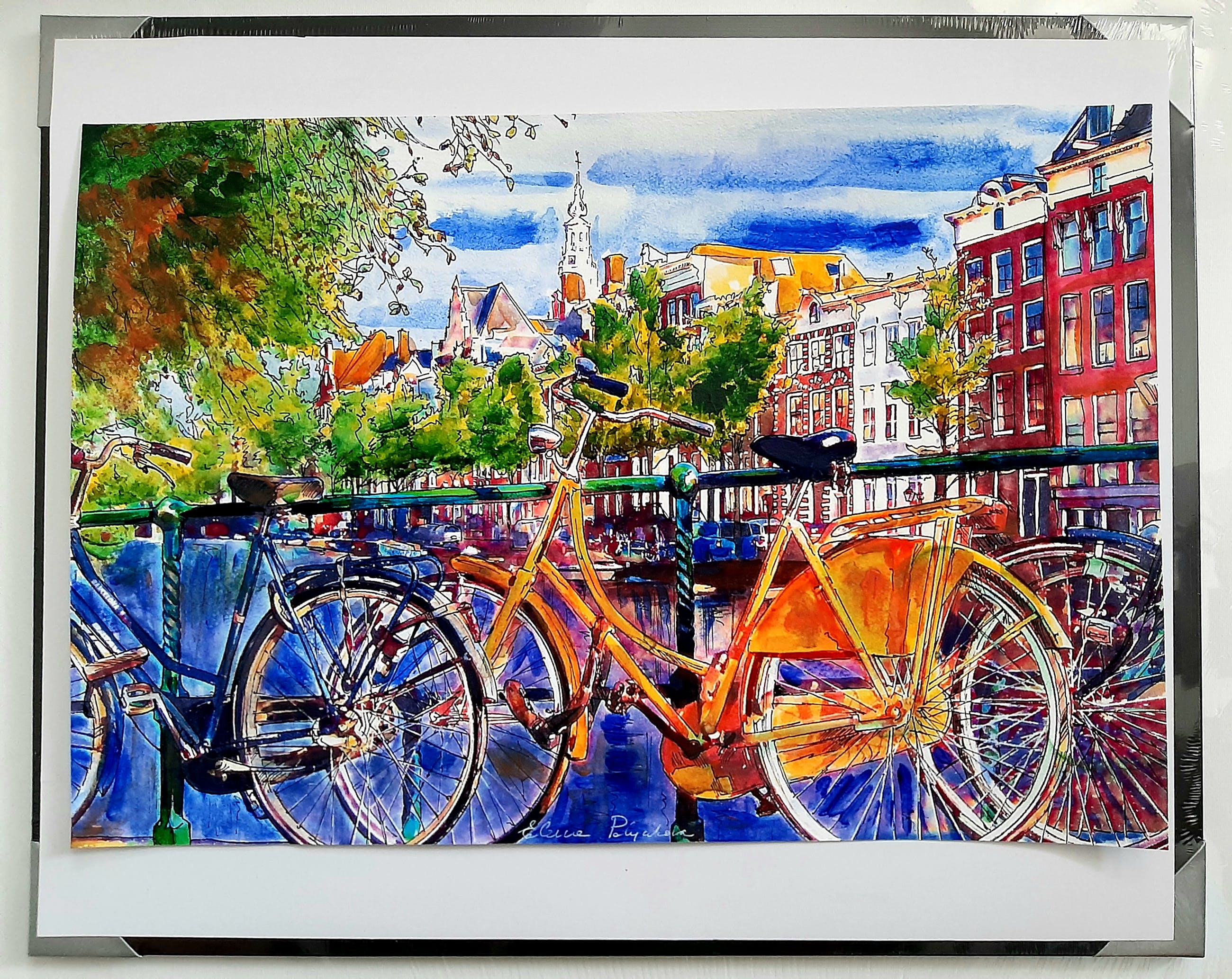 Acrylverf en inkt over giclee op papier - Uniek werk van kunstenaar Elena Polyakova. De kunstenaar zoekt de emotie van licht en beweging. Techniek op grens expressieve en impressionistische schilderijen, met zijn eigen unieke stijl. Certificaat van echtheid is inbegrepen.