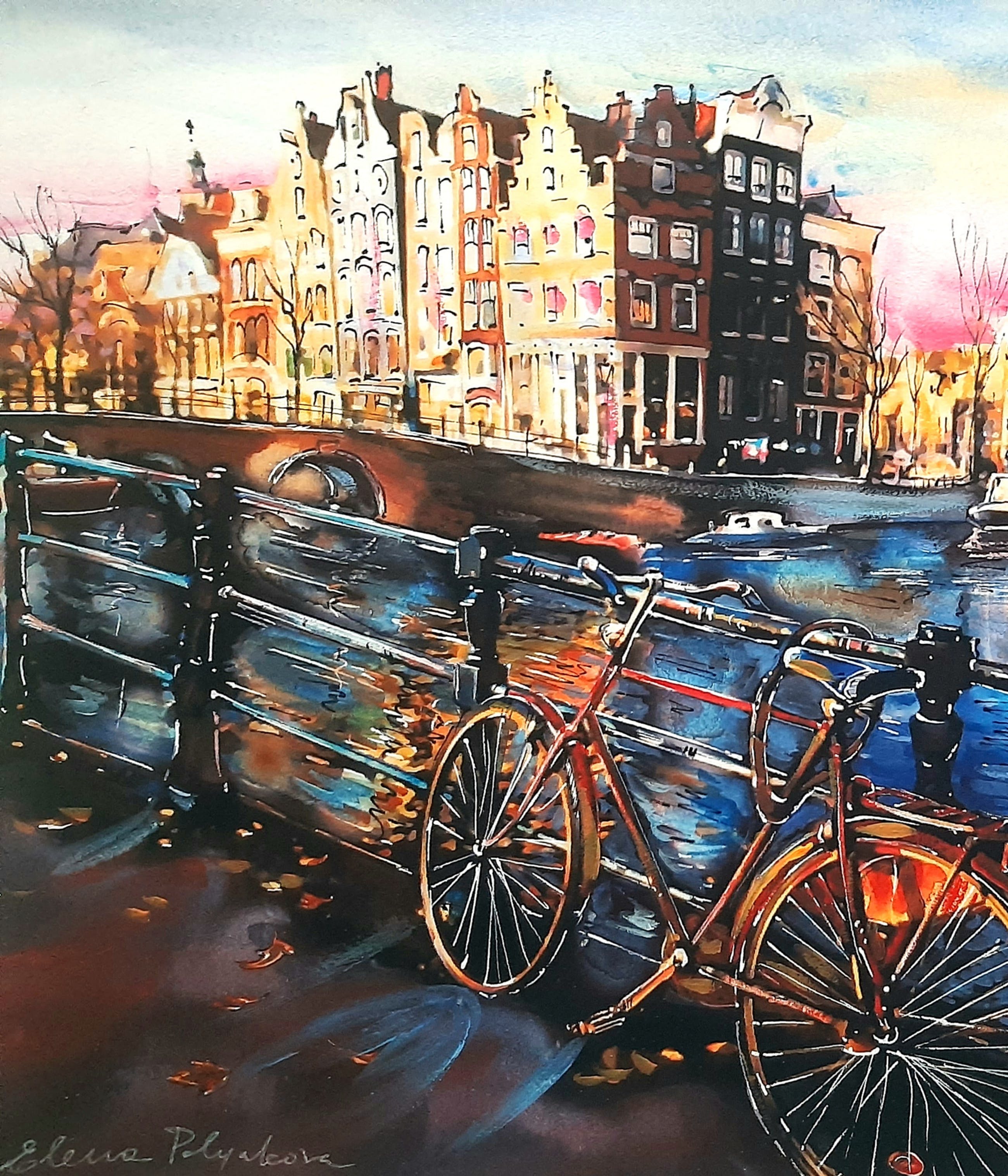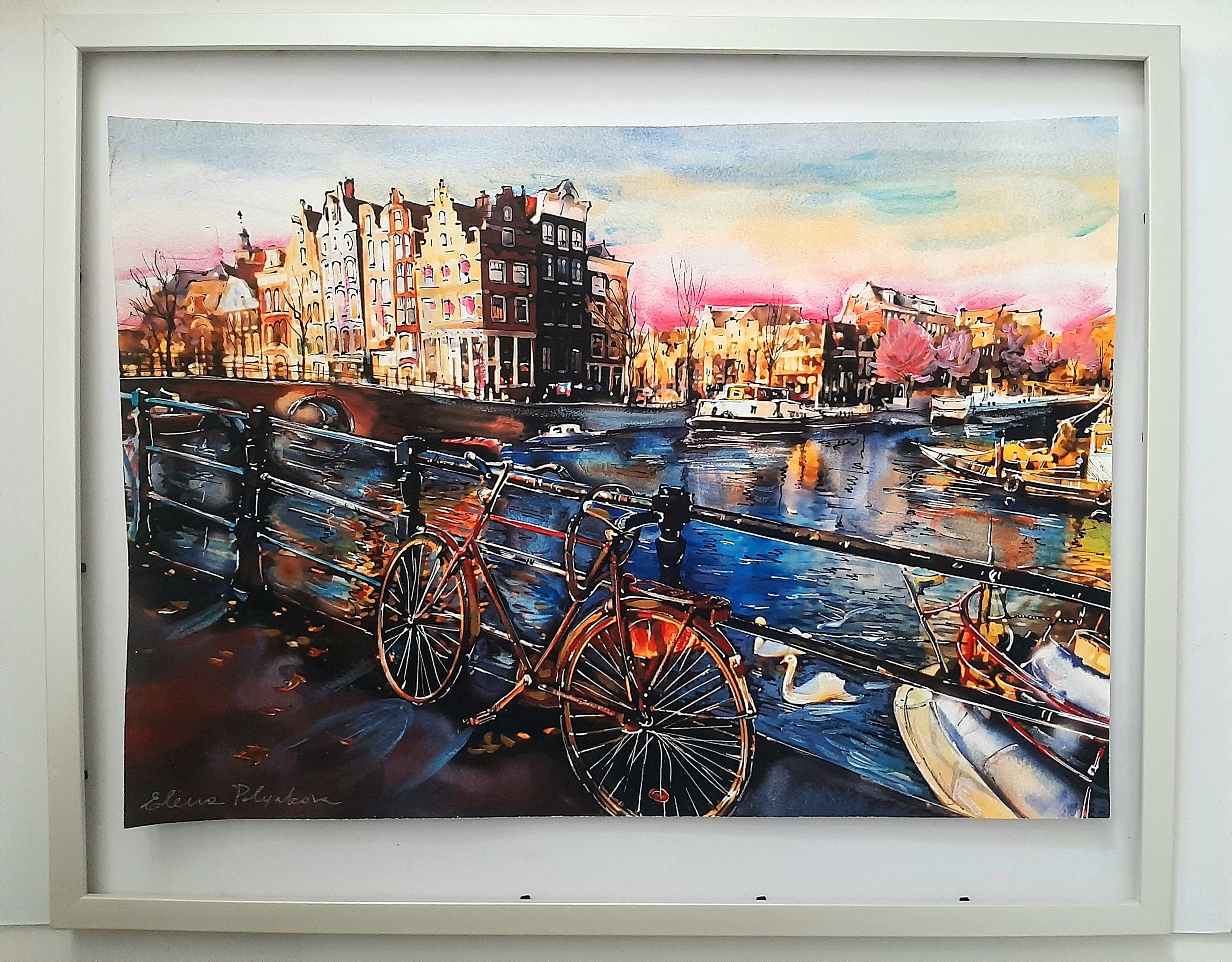 Acrylverf en inkt over giclee op papier - Uniek werk van kunstenaar Elena Polyakova. De kunstenaar zoekt de emotie van licht en beweging. Techniek op grens expressieve en impressionistische schilderijen, met zijn eigen unieke stijl. Certificaat van echtheid is inbegrepen.