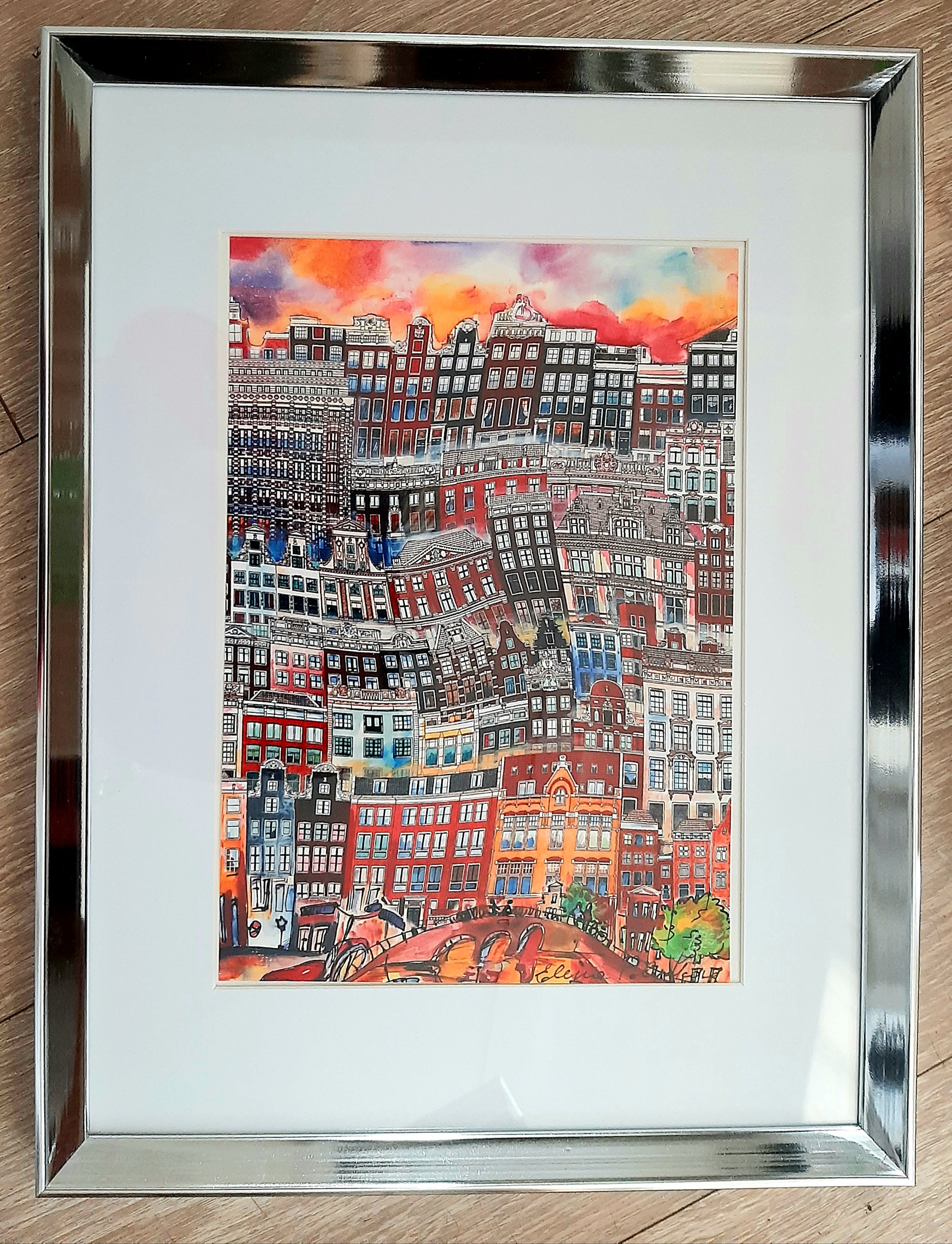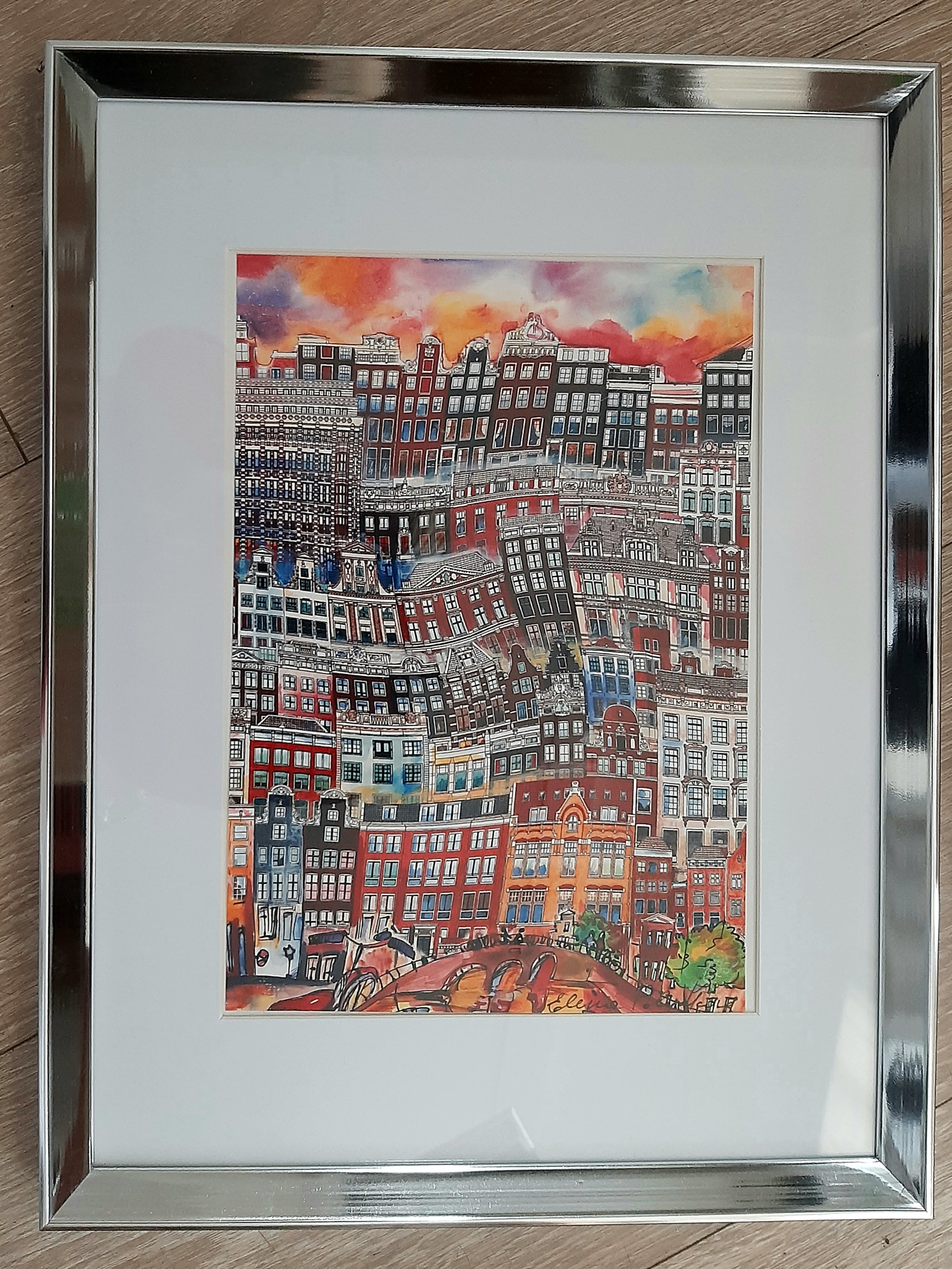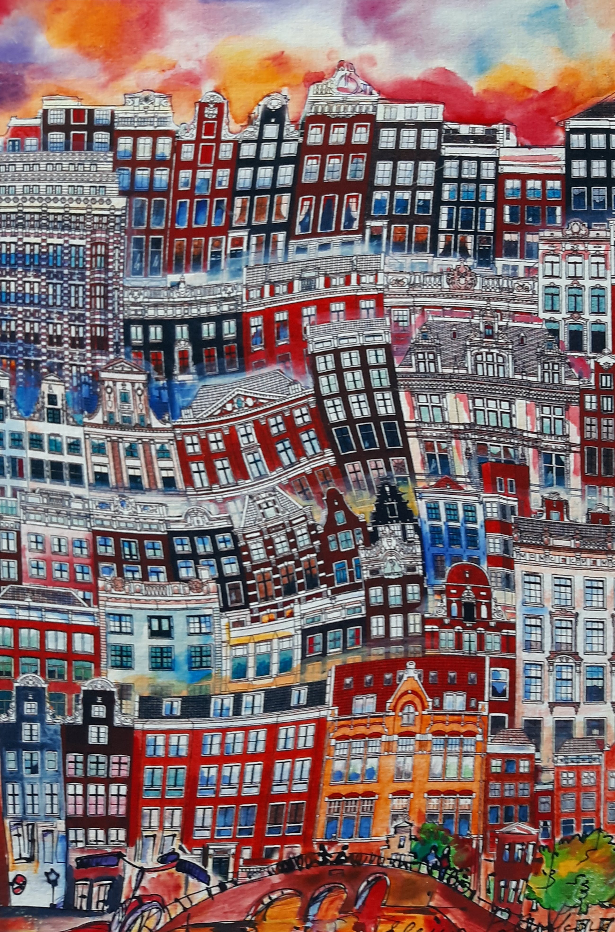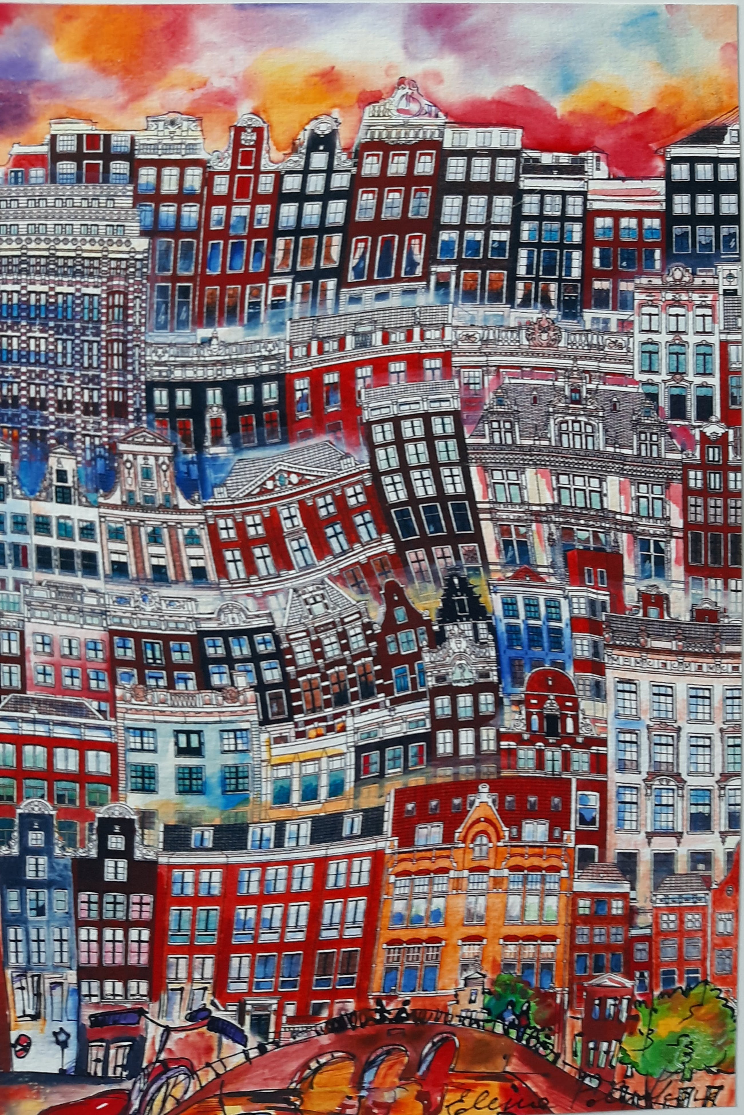 Mixedmedia op giclee op papier. Painting vrom Amsterdam-Vrolijk Amsterdam. Certificat van echtheid zit erbij.
