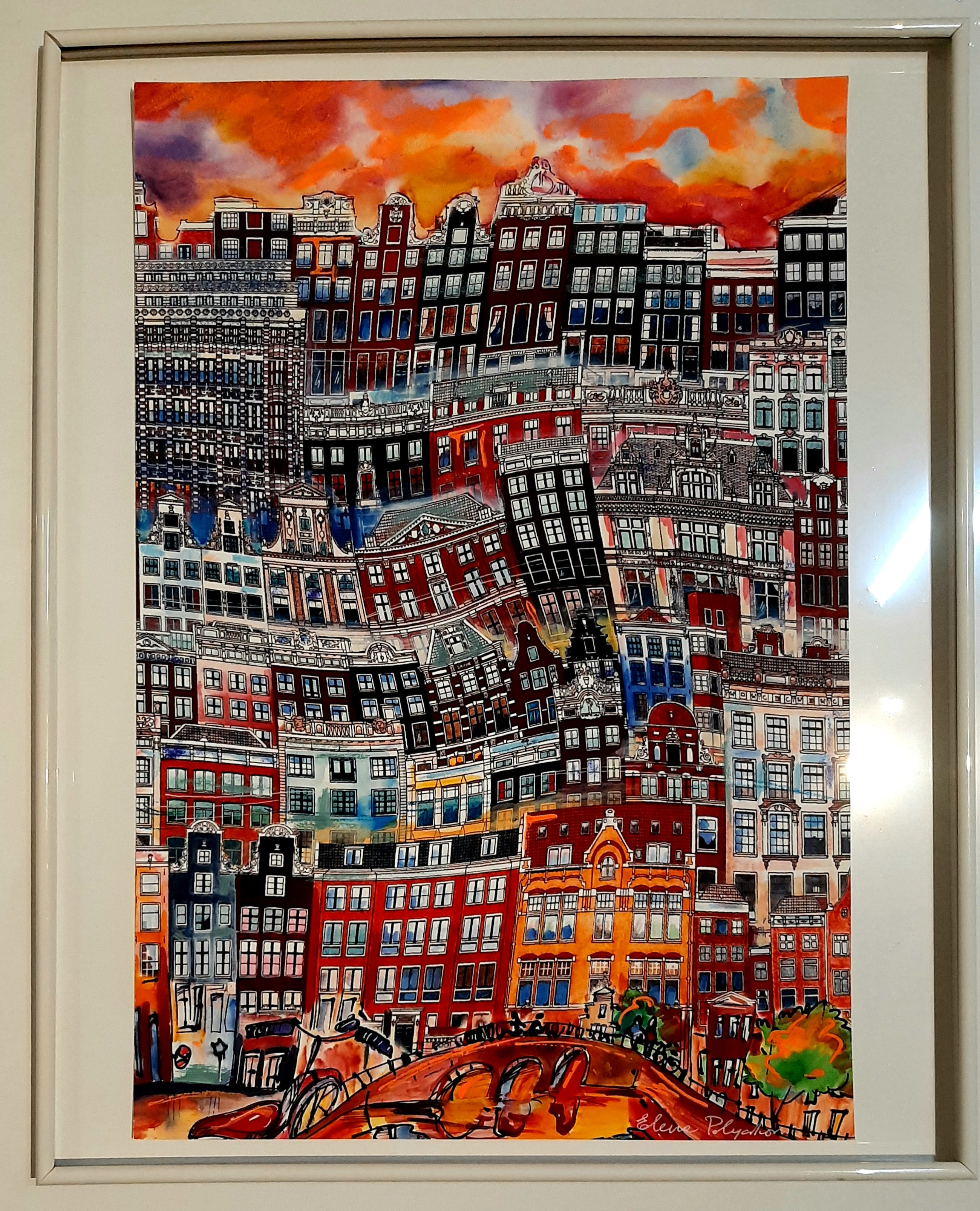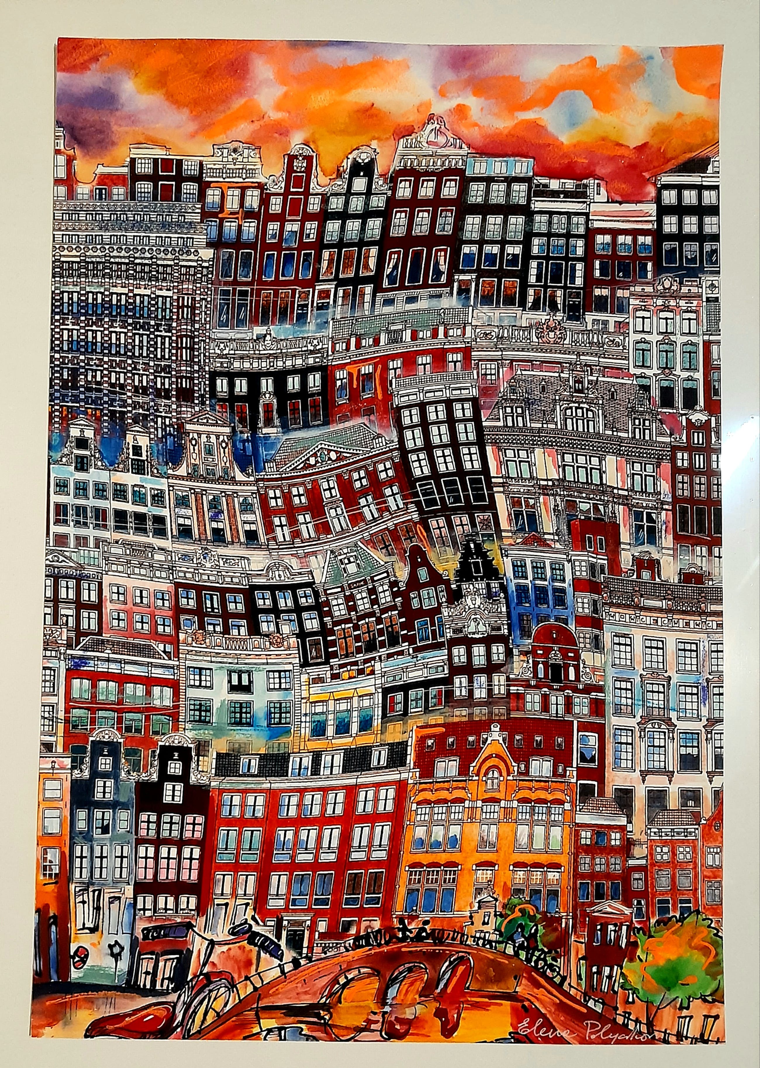 Gemengde techniek met ink en acrylverf op giclee op doek. Certificaat van echtheid zit erbij.