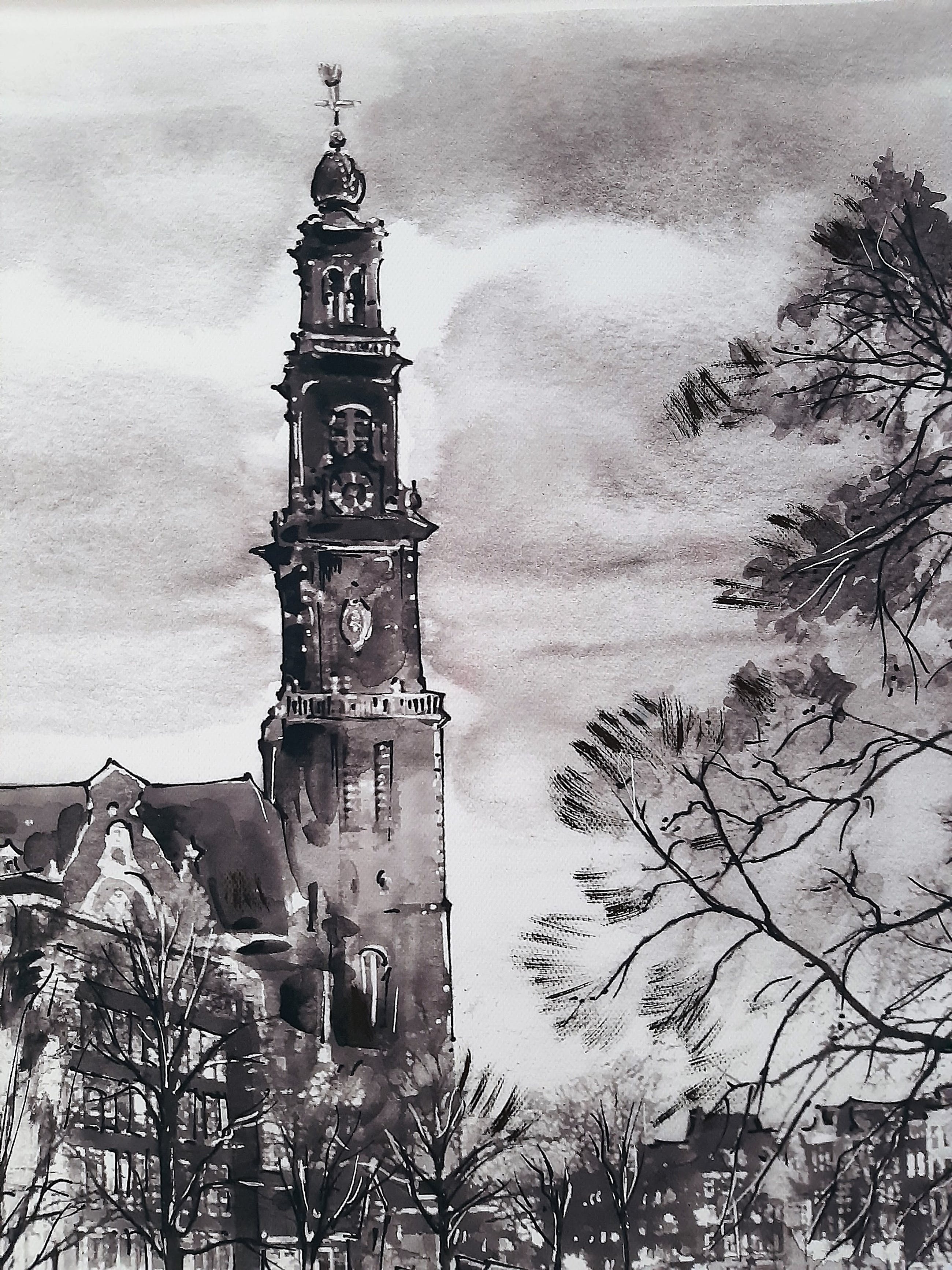 Mix media met inkt en aquarel over druk , ingelijst. Certificaat van echtheid zit erbij. Conditie: in nieuwstaat uit eigen atelier.