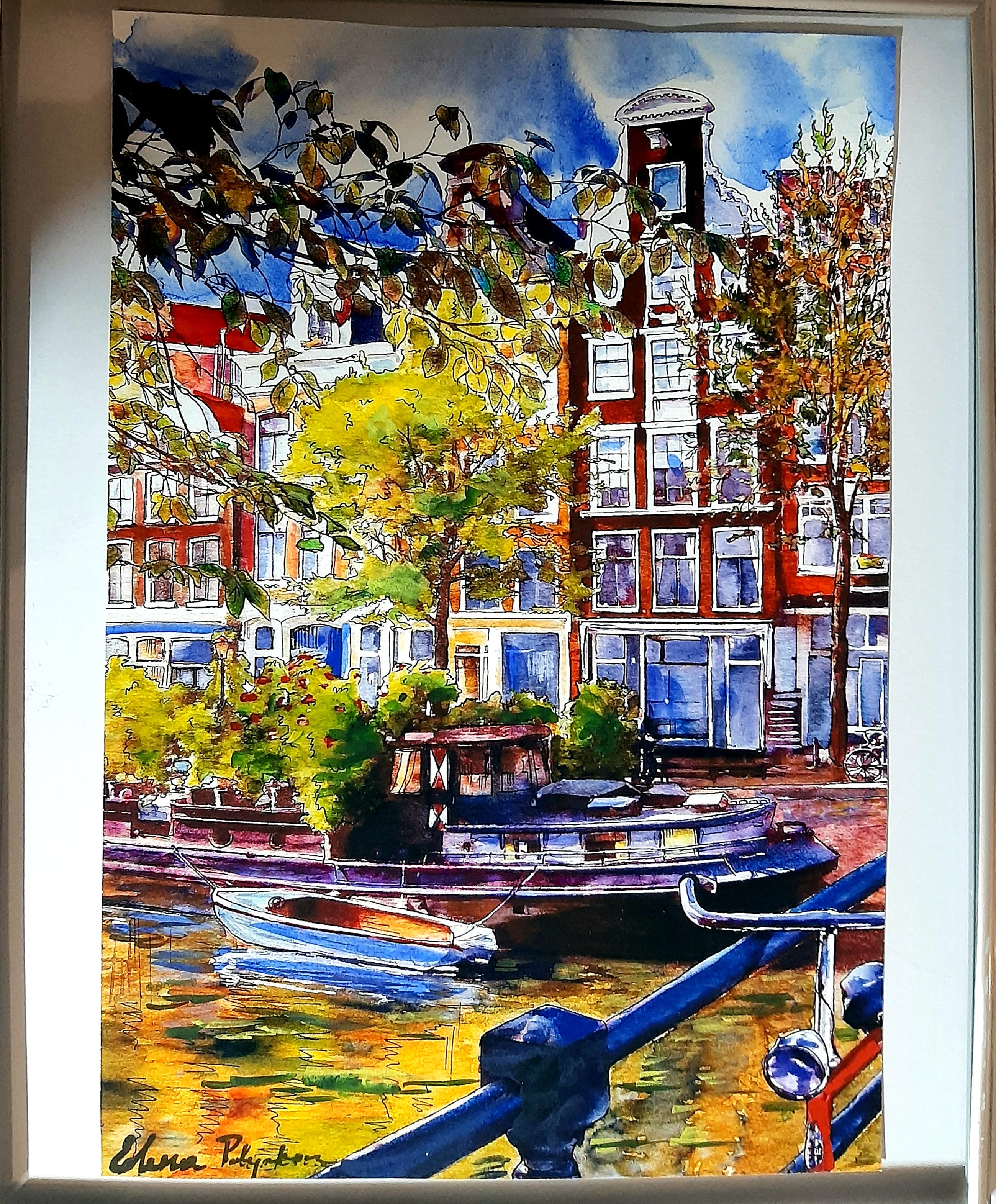 Acrylverf en inkt over giclee op papier - Uniek werk van kunstenaar Elena Polyakova. De kunstenaar zoekt de emotie van licht en beweging. Techniek op grens expressieve en impressionistische schilderijen, met zijn eigen unieke stijl. Certificaat van echtheid is inbegrepen.