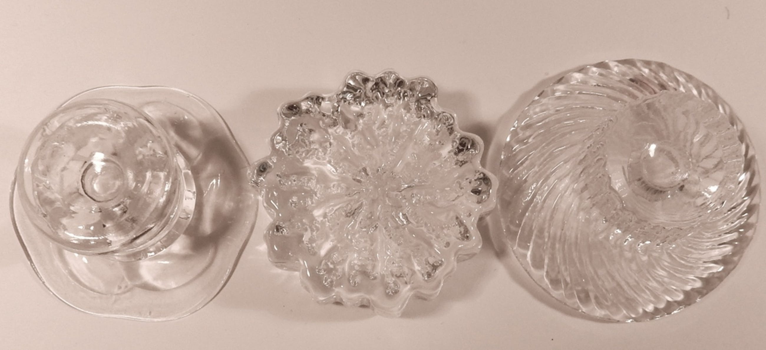 Diameters respectievelijk 6,5, 6 en 5 cm.
