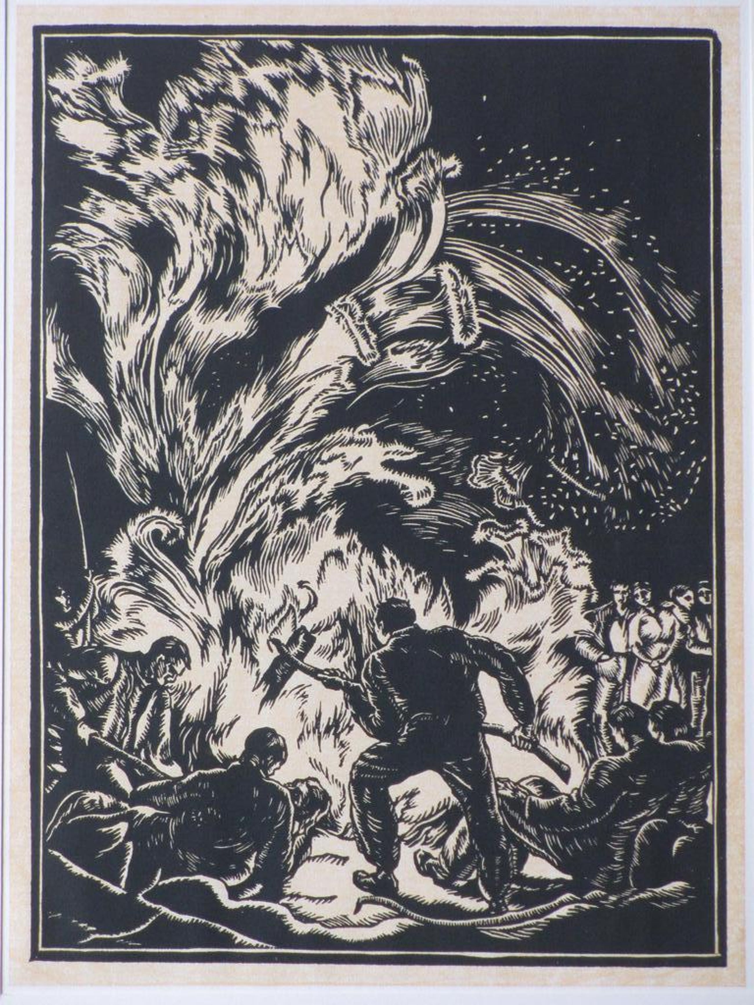 Houtsnede losbladig onder passepartout, beeldmaat 24x17, bladmaat 39x29