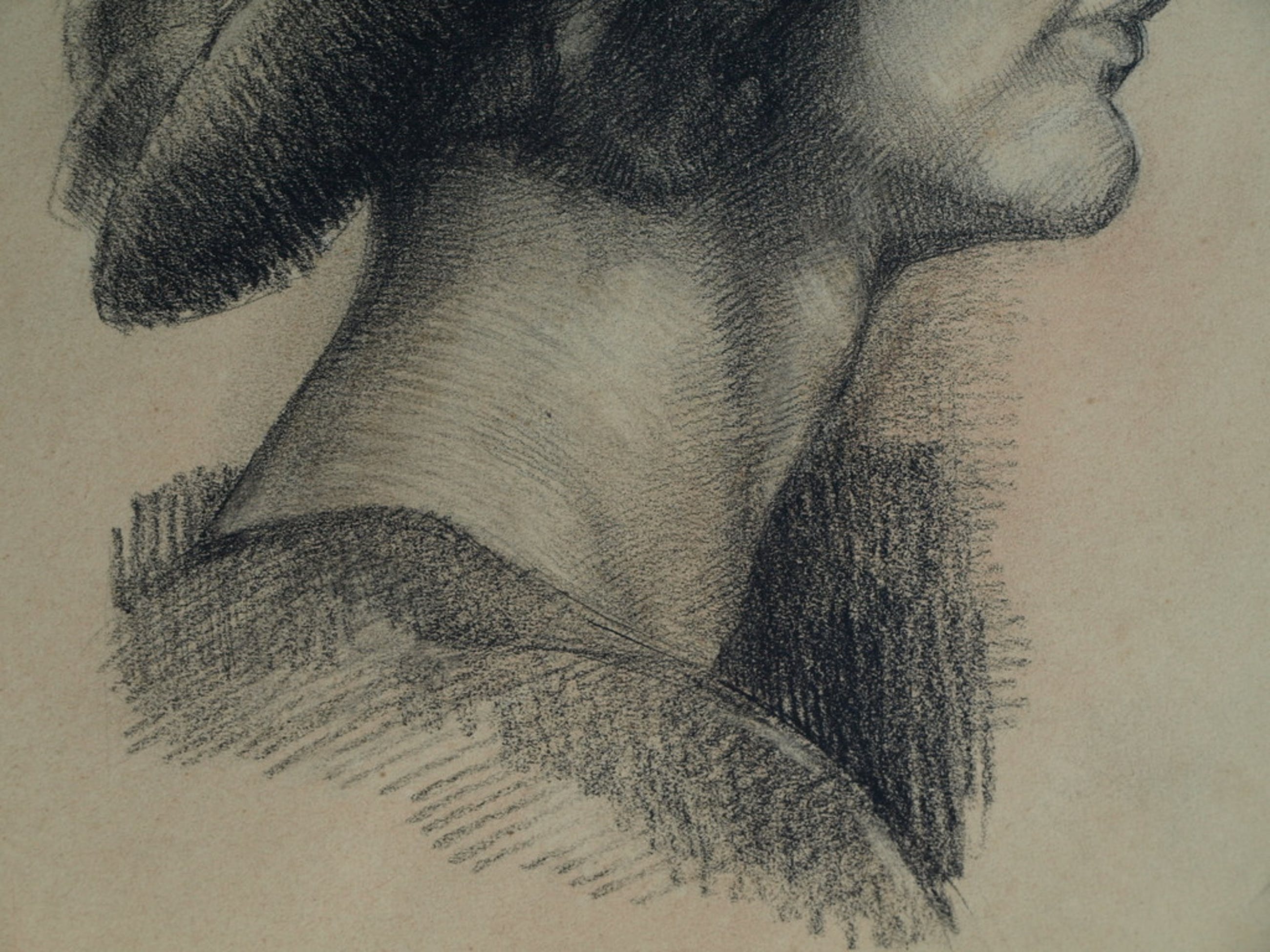 Een tekening, gemaakt door Elias (Elie) Smalhout (1889-1939) met een portret van zijn echtgenote Bregtje Sombogaart, waarmee hij in 1918 in het huwelijk trad.