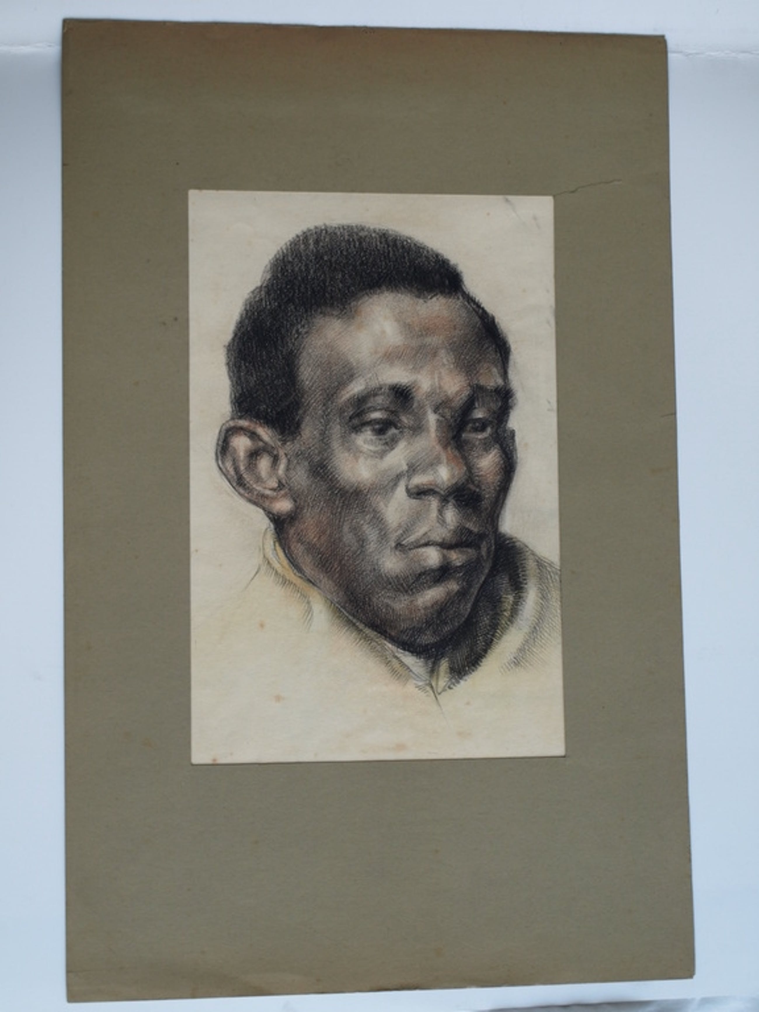 -De tekening is niet gesigneerd en niet ingelijst; zit wel achter een papieren passe-partout.