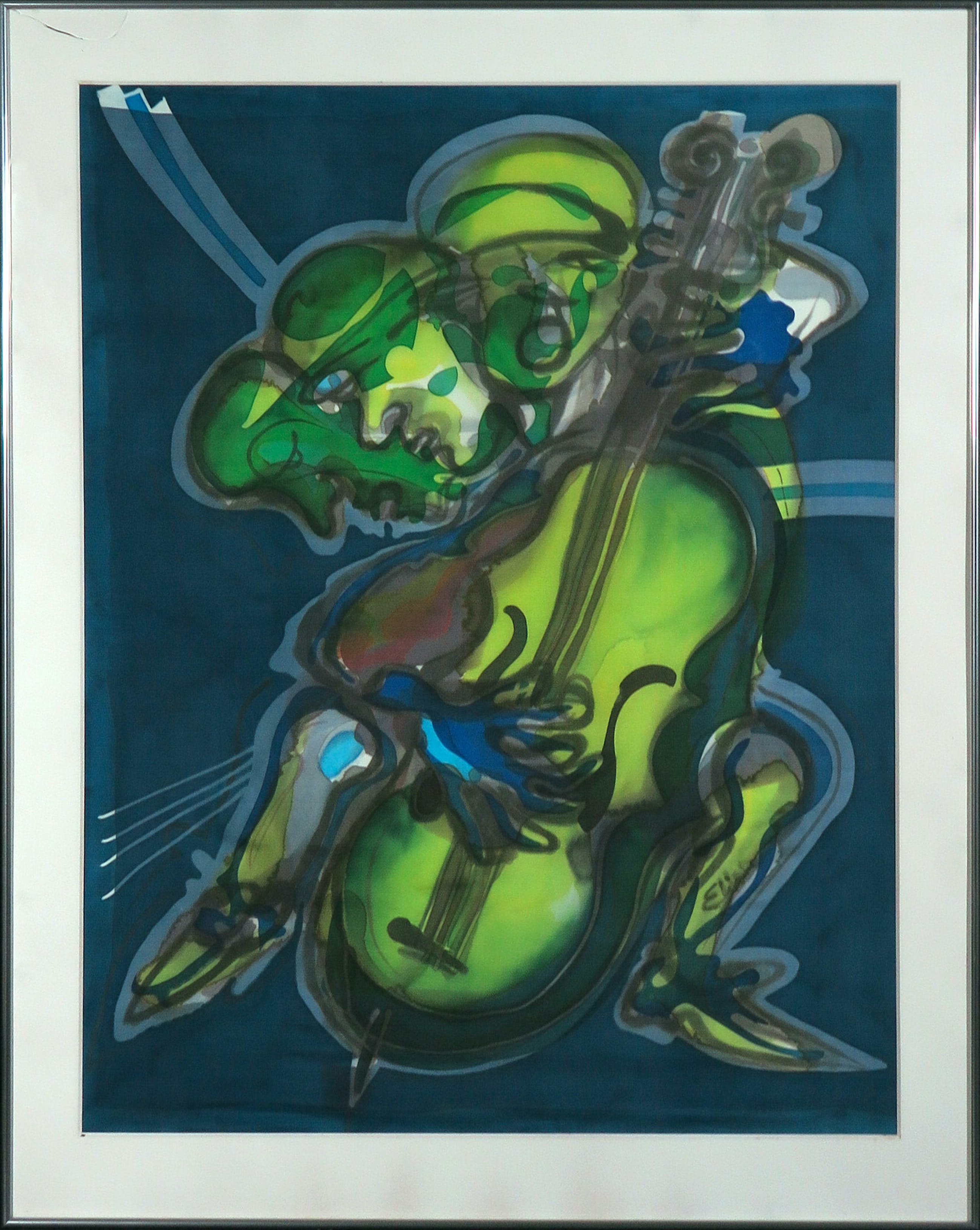 Het werk heeft glasschade links bovenin. De binnenmaten van het werk zijn: hoogte is 91,5cm en 71 cm breed.