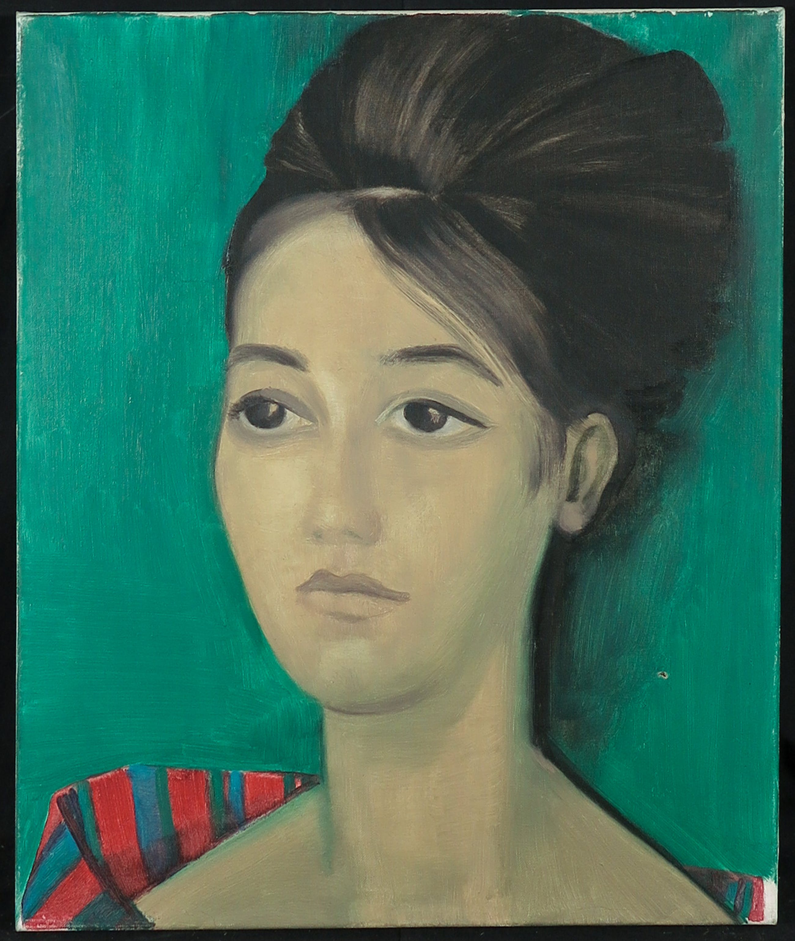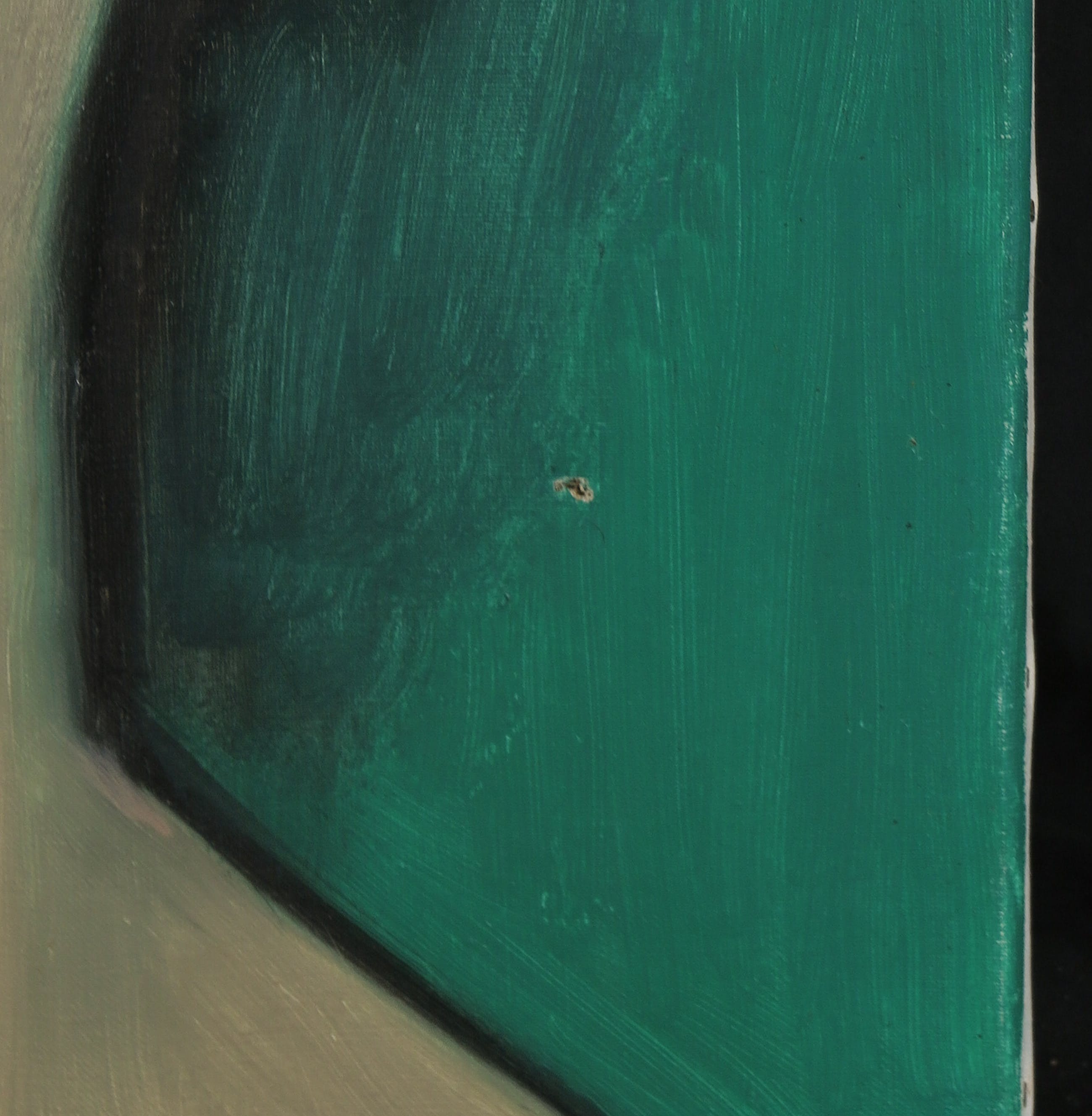 | In goede staat, doch met een gaatje in het doek rechts van de geportretteerde. En wat slijtage langs de randen en hoeken. | |