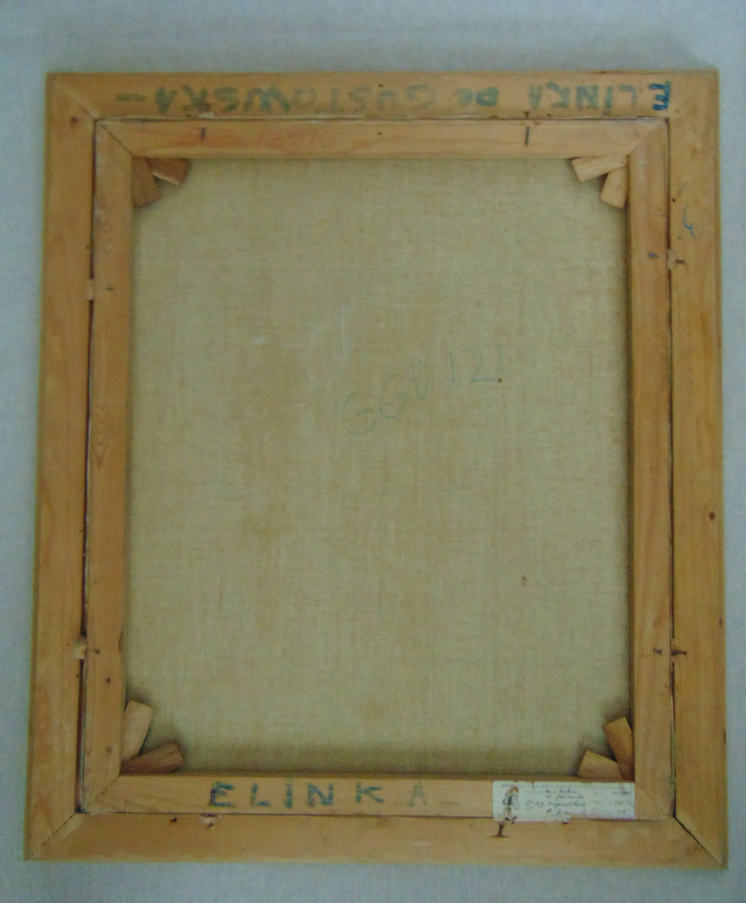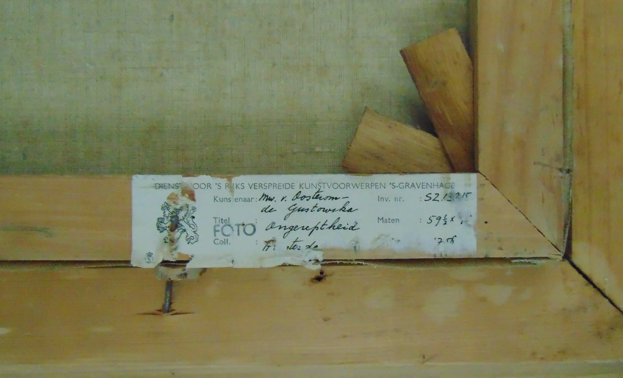 Dit olieverf is aan de achterzijde gesigneerd. Het werk zit in een houten lijst. De lijst heeft wat leeftijdssporen.