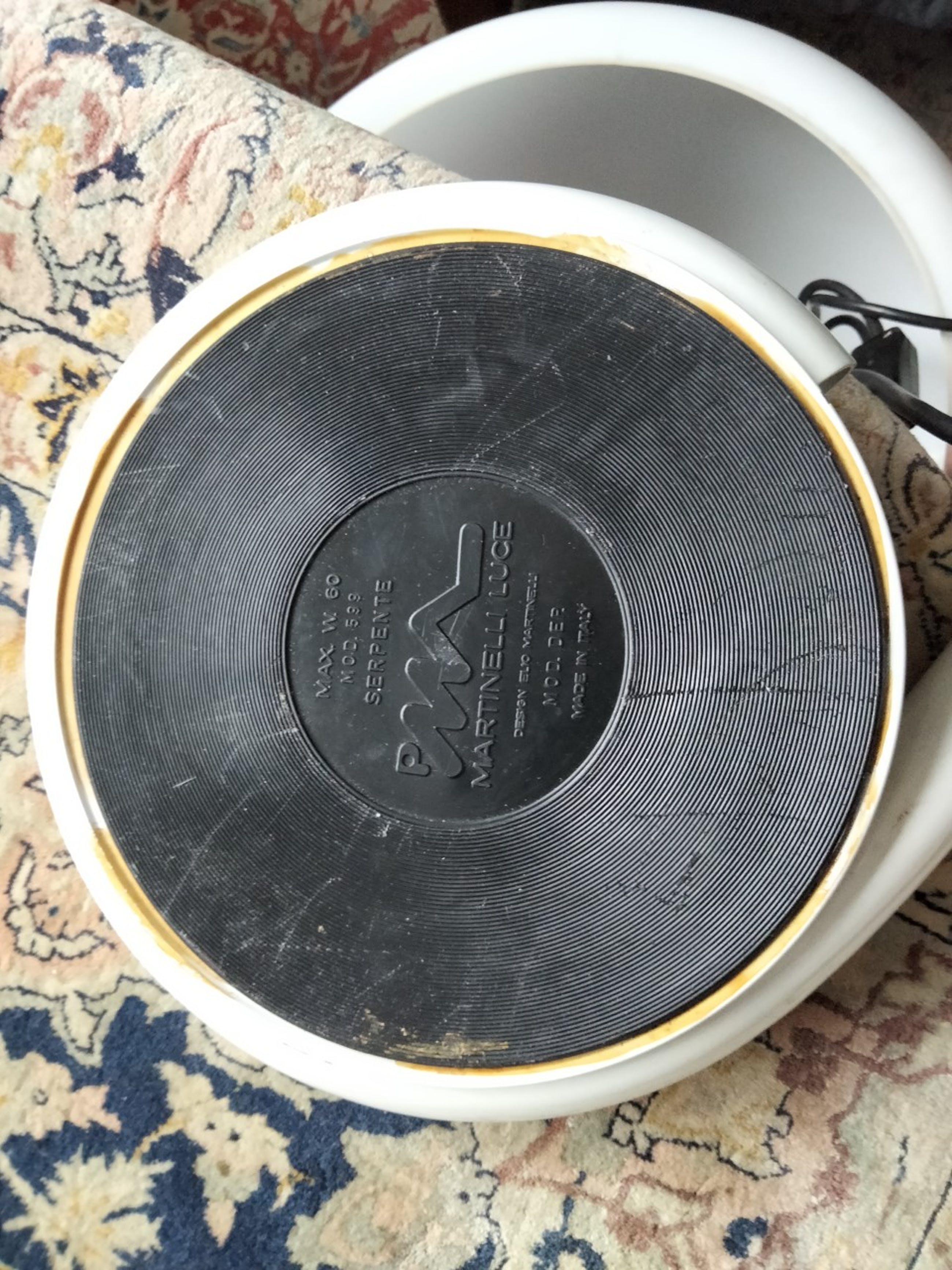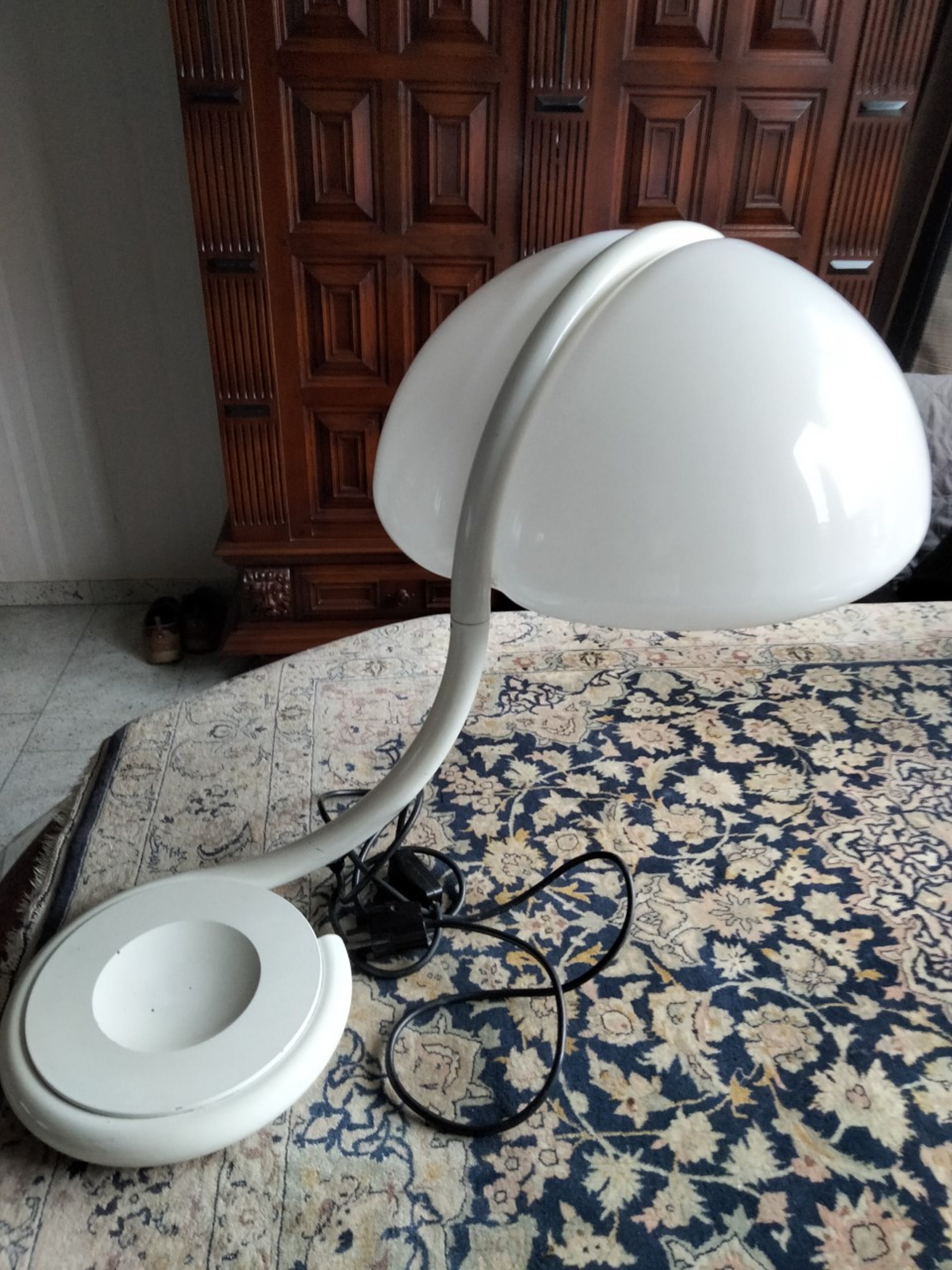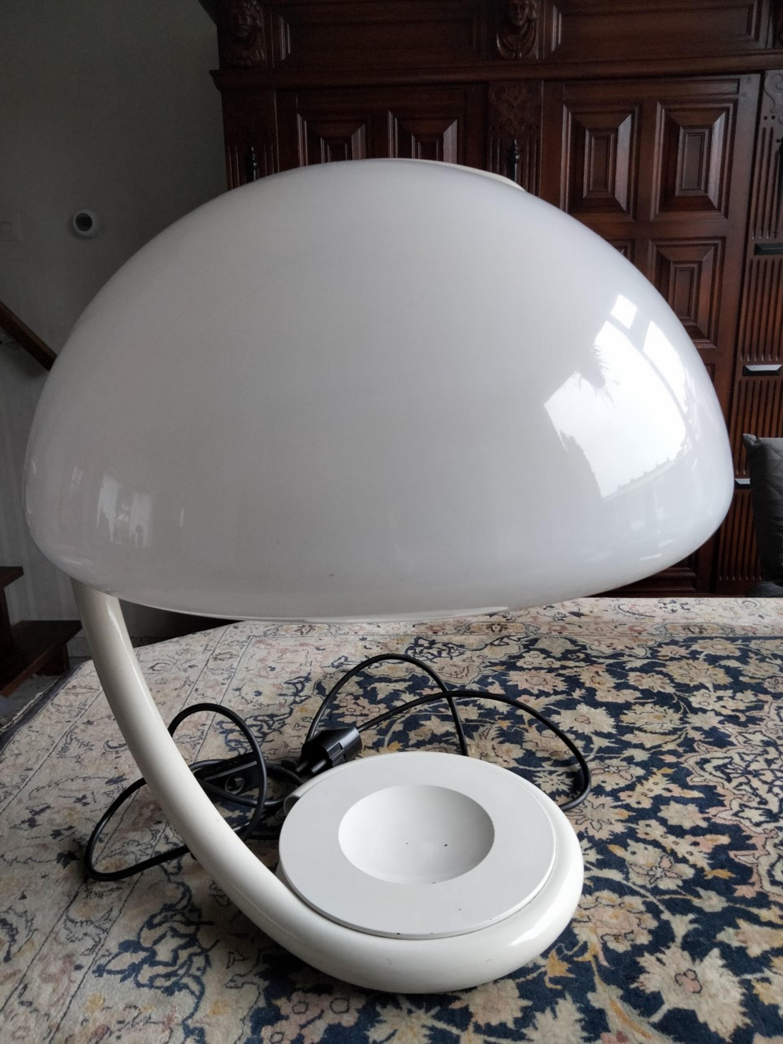Lamp stamt uit de laat 60-er jaren, 180 - 360 graden draaibaar, zwaar van gewicht zodat hij niet kan omvallen.