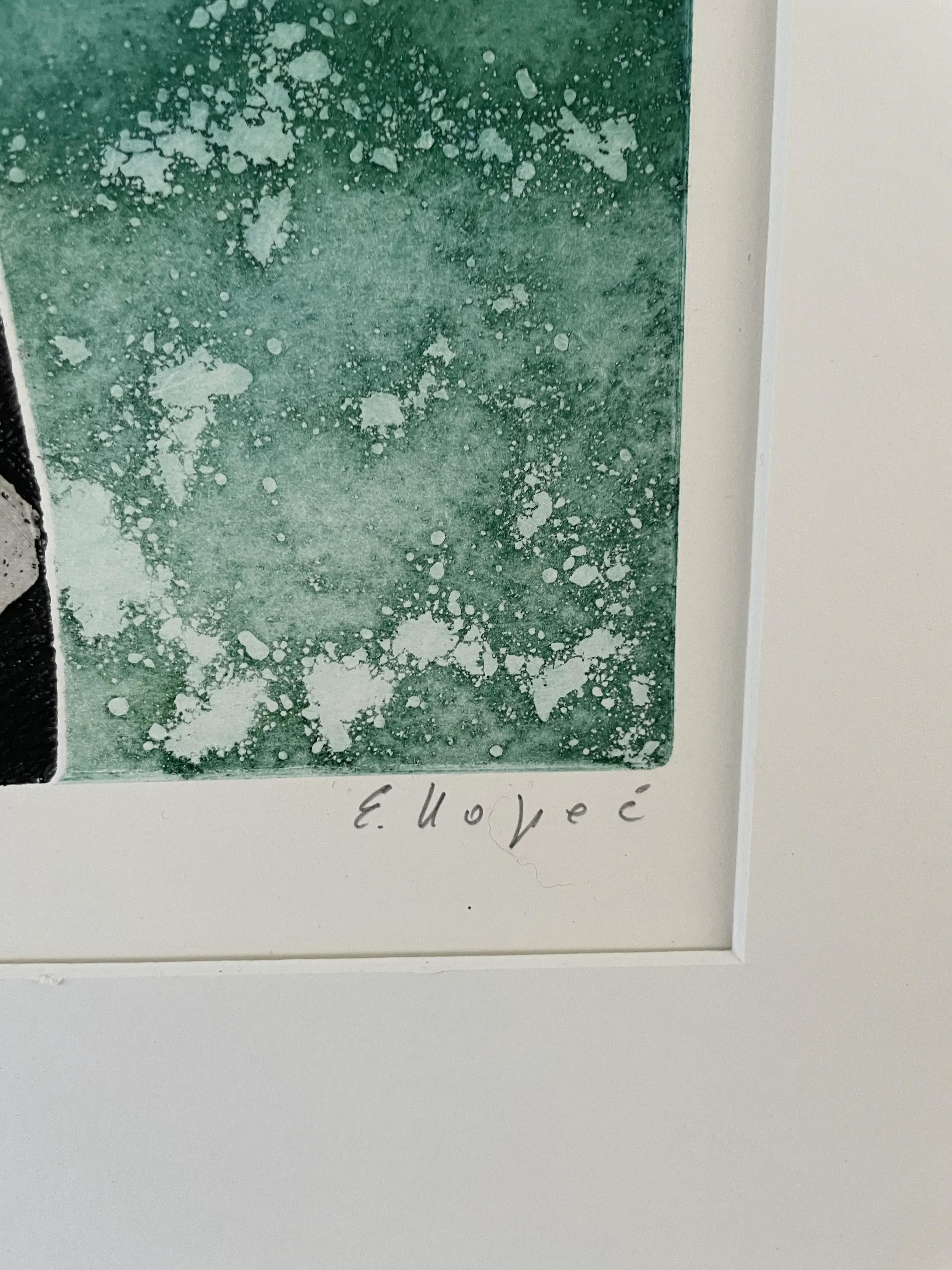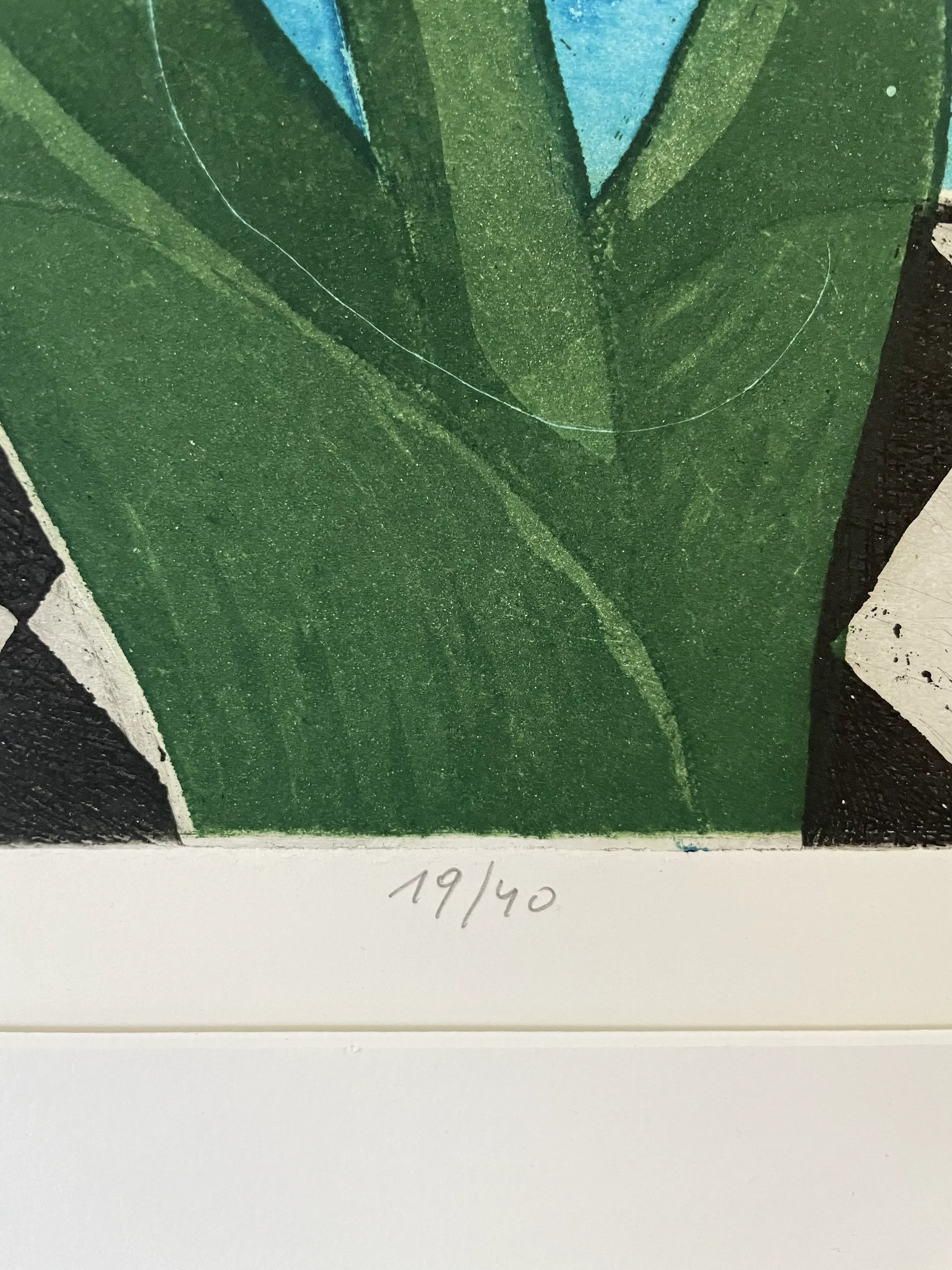 Lijst heeft kleine beschadigingen en het glas ontbreekt maar het werk is volledig intact.