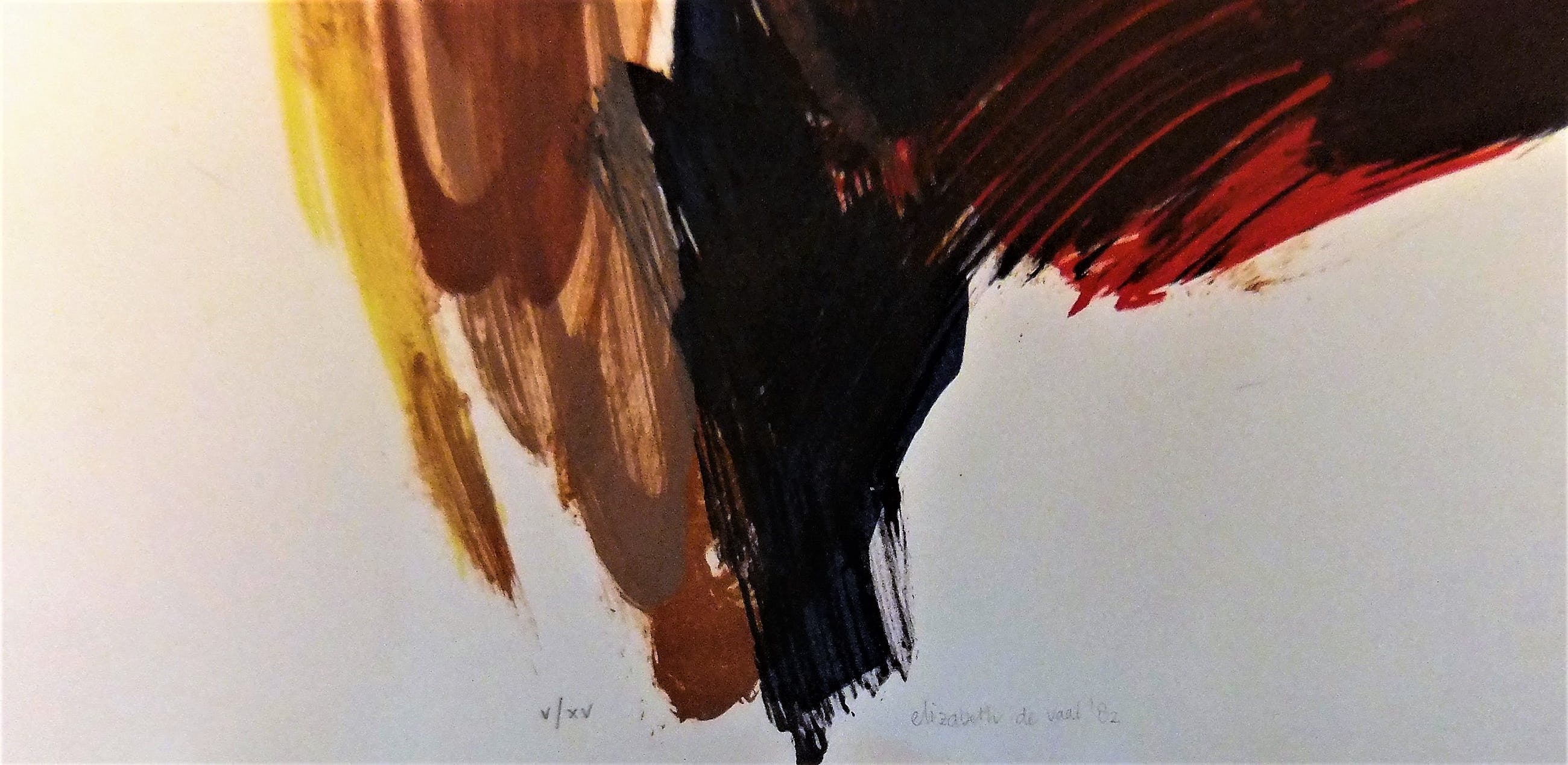 zij is later abstracter gaan werken - dit is nog figuratief onderaan op de prent genummerd - gesignbeerd - datum