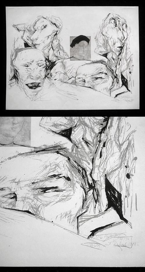 Elke Hopfe (* 1945). Dialog mit Raffael. Lithographie, 1983.