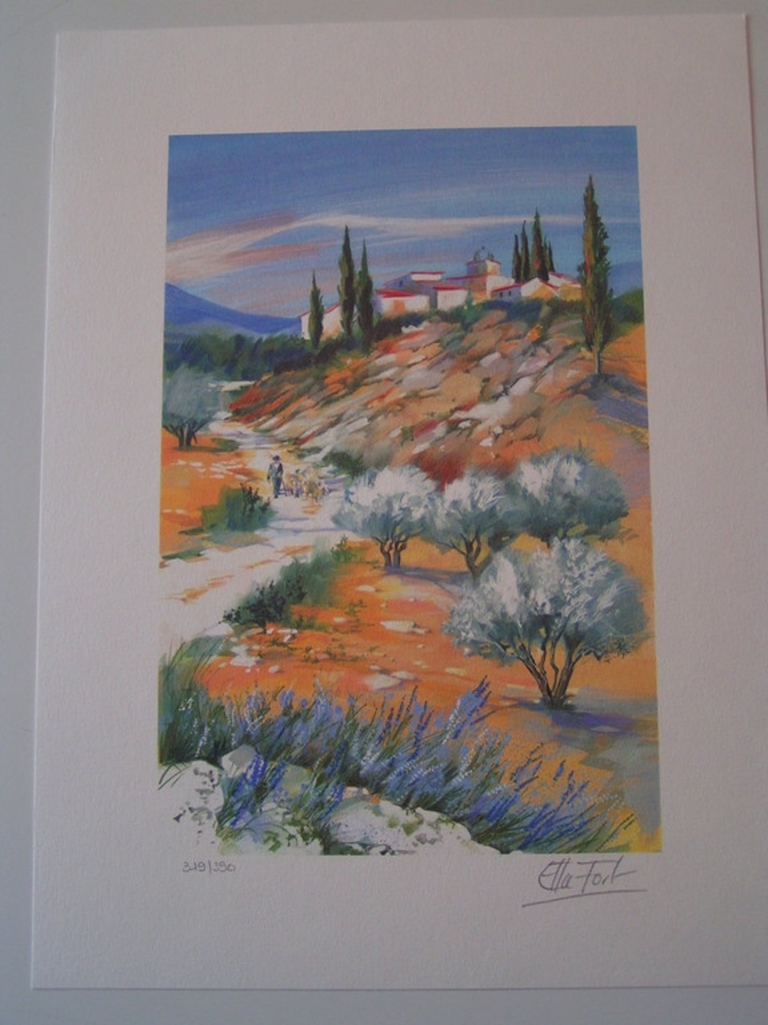 Kleurenlithographie, linksonder in potlood genummerd 319/390 rechtsonder in potlood gesigneerd "Ella Fort".