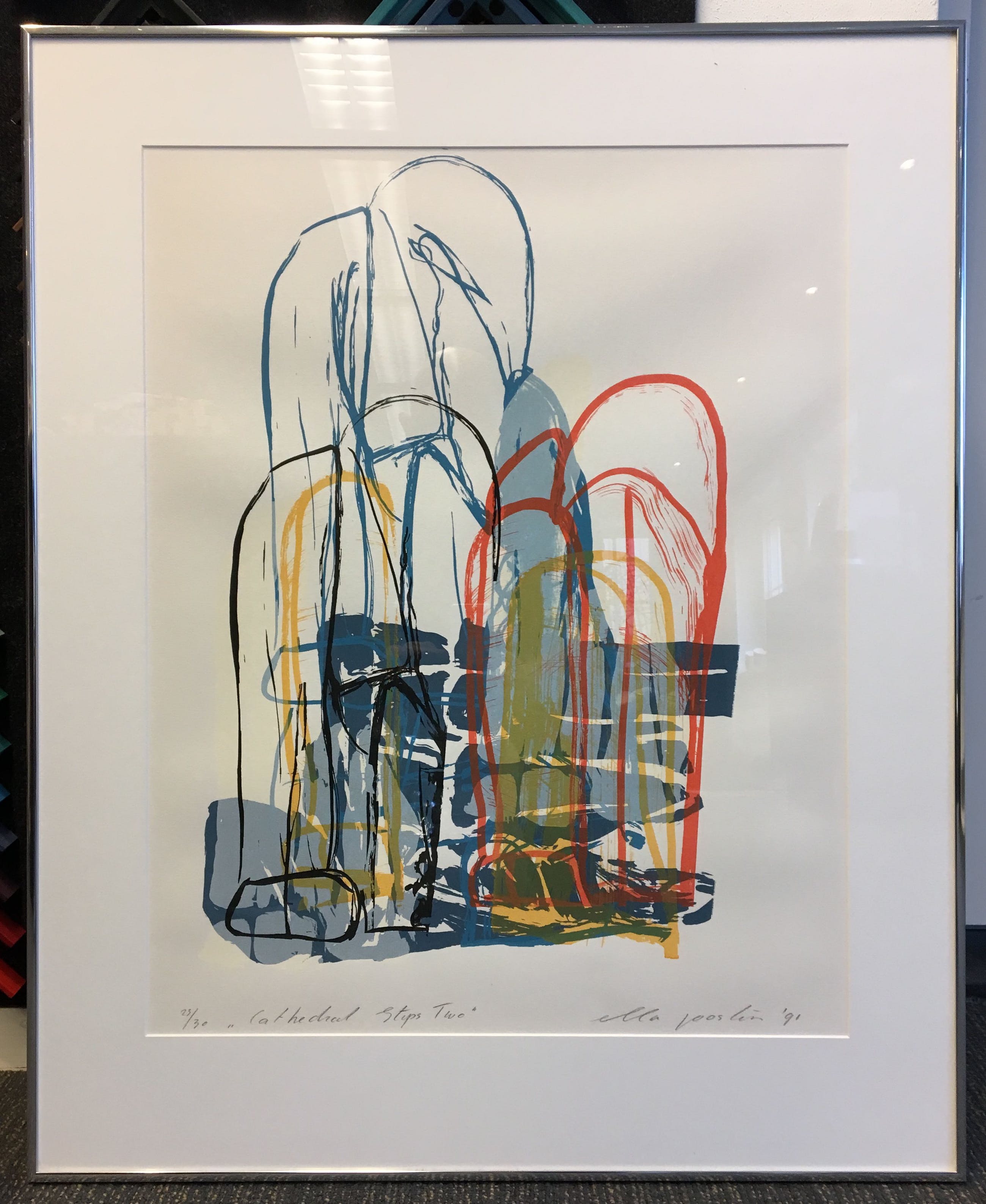 Fraaie zeefdruk van Ella Joosten. In de serie 'Cathedral' zijn verschillende titels van haar hand verschenen. Oplage 30, nummer 23. Titel + nummer + gesigneerd in potlood.