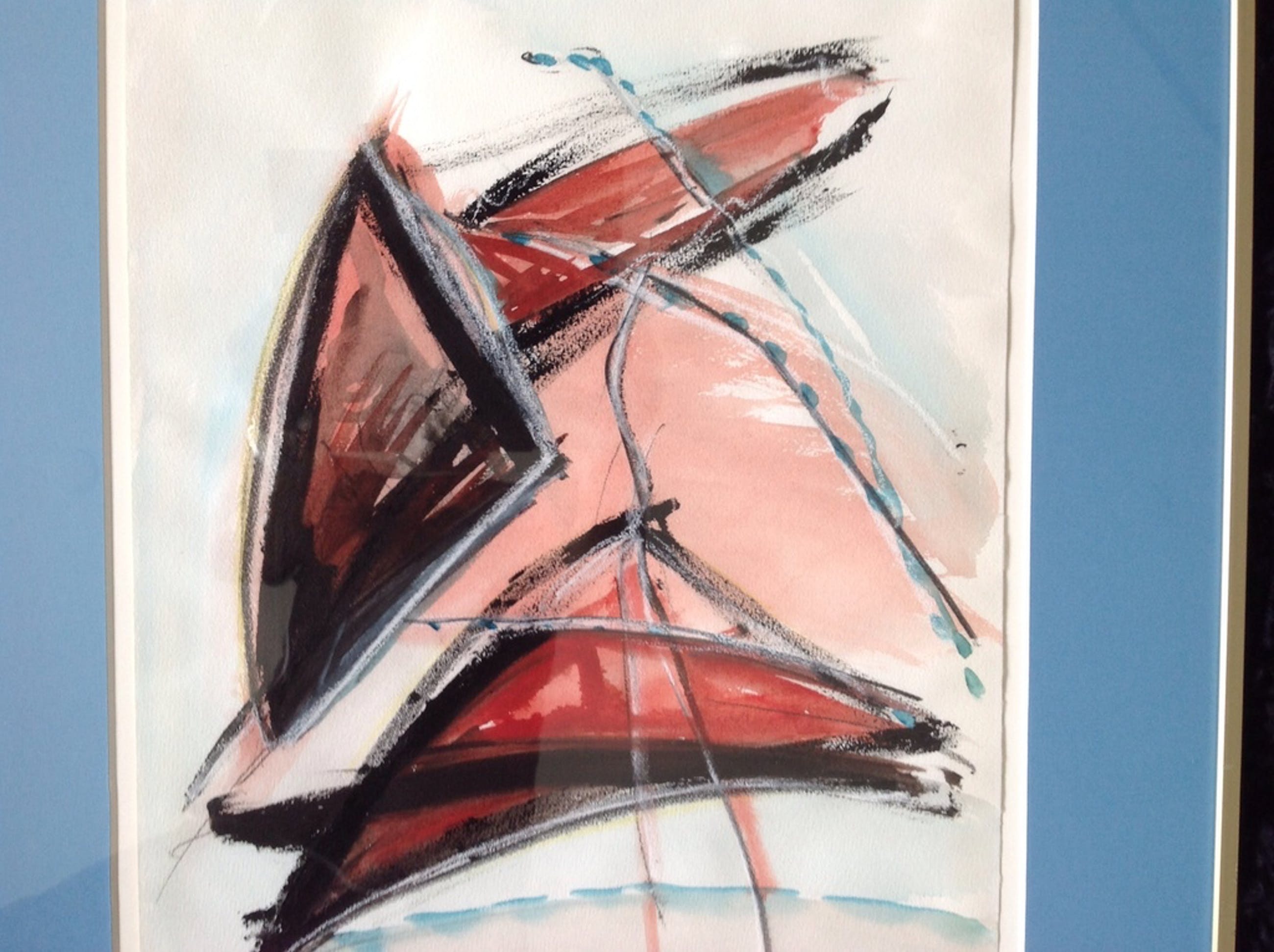 Ingelijst: In een aluminium goudkleurige lijst met mooi blauw passe-partout ophangklaar