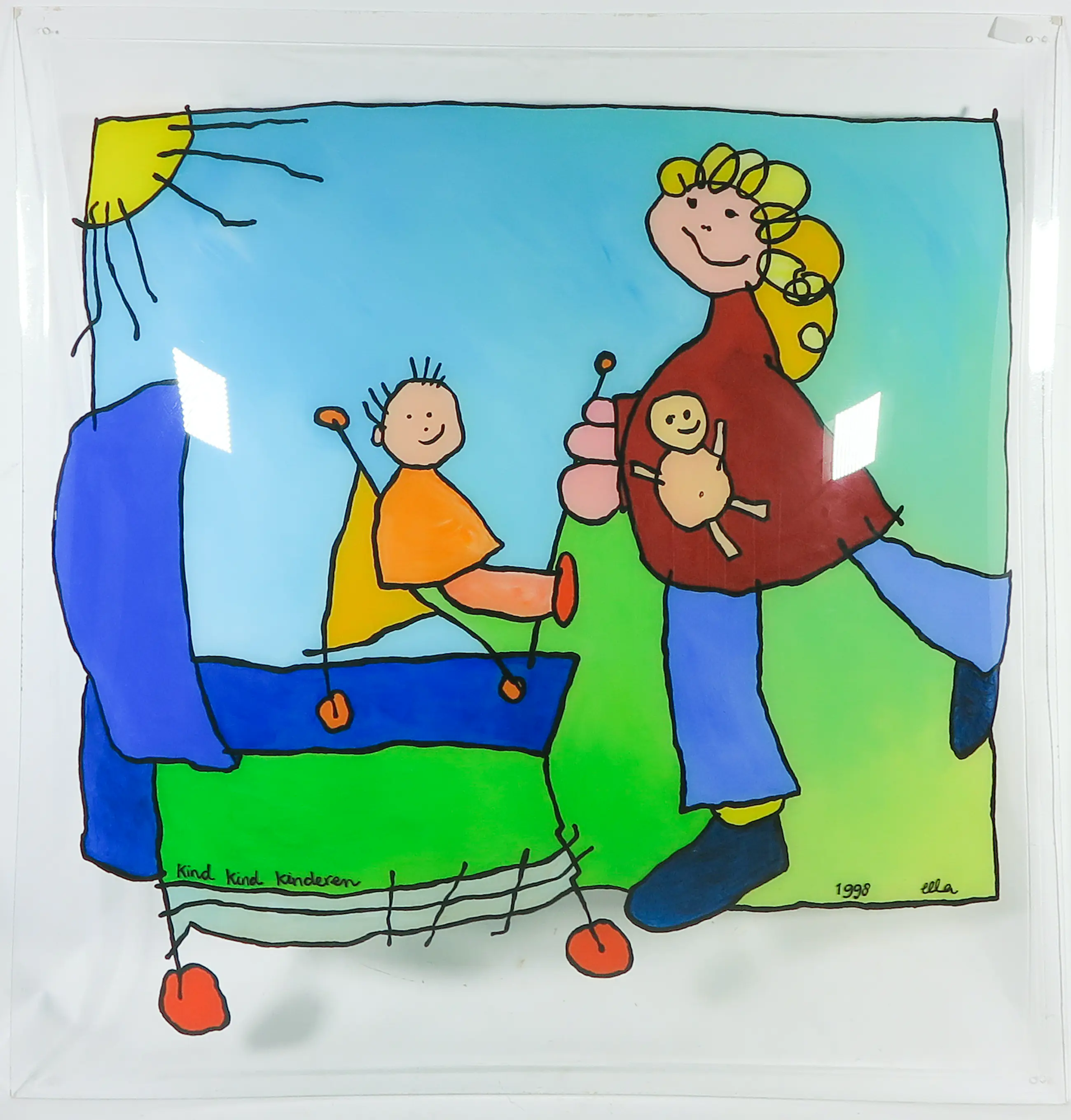 Ella Steenmeijer - Acryl op koepelvormig plexiglas, Kindertekening - Verkocht