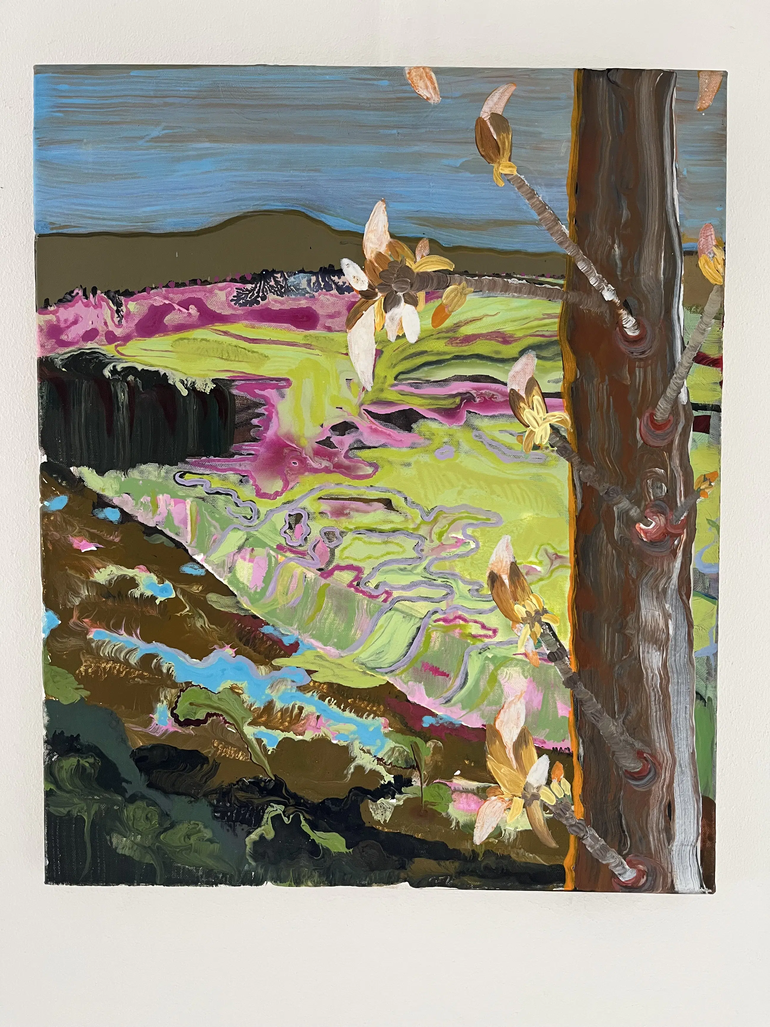 Fraai landschappelijk doek uit 2003. Werk is niet gelijst. Afmeting 60 x 50 cm .