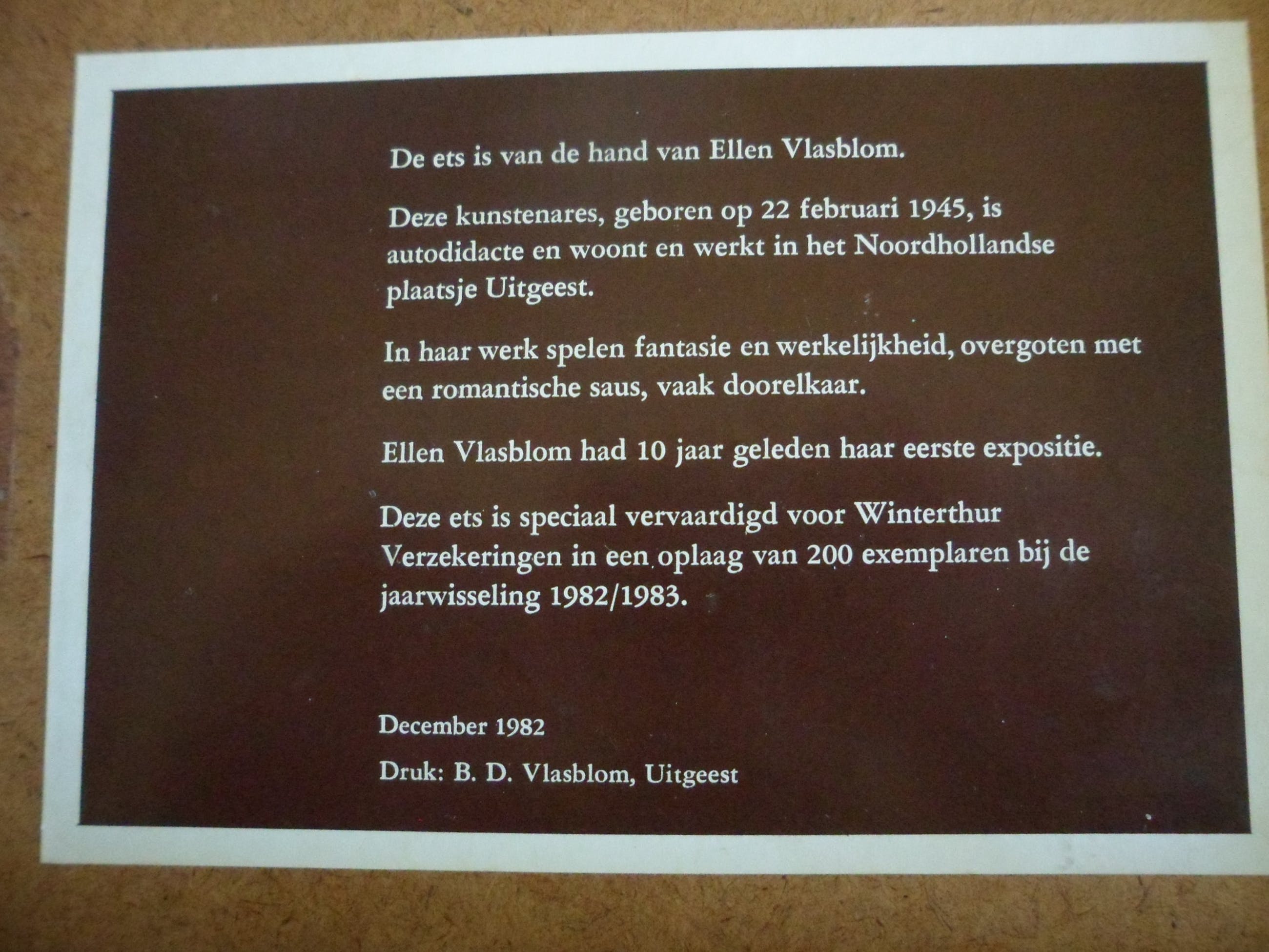 Ellen Alblas-Vlasblom 1945. Deze ets is speciaal vervaardigd voor Winterhur verzekeringen in een oplage van 200 exemplaren Bij de jaarwisseling 1982/1983.
