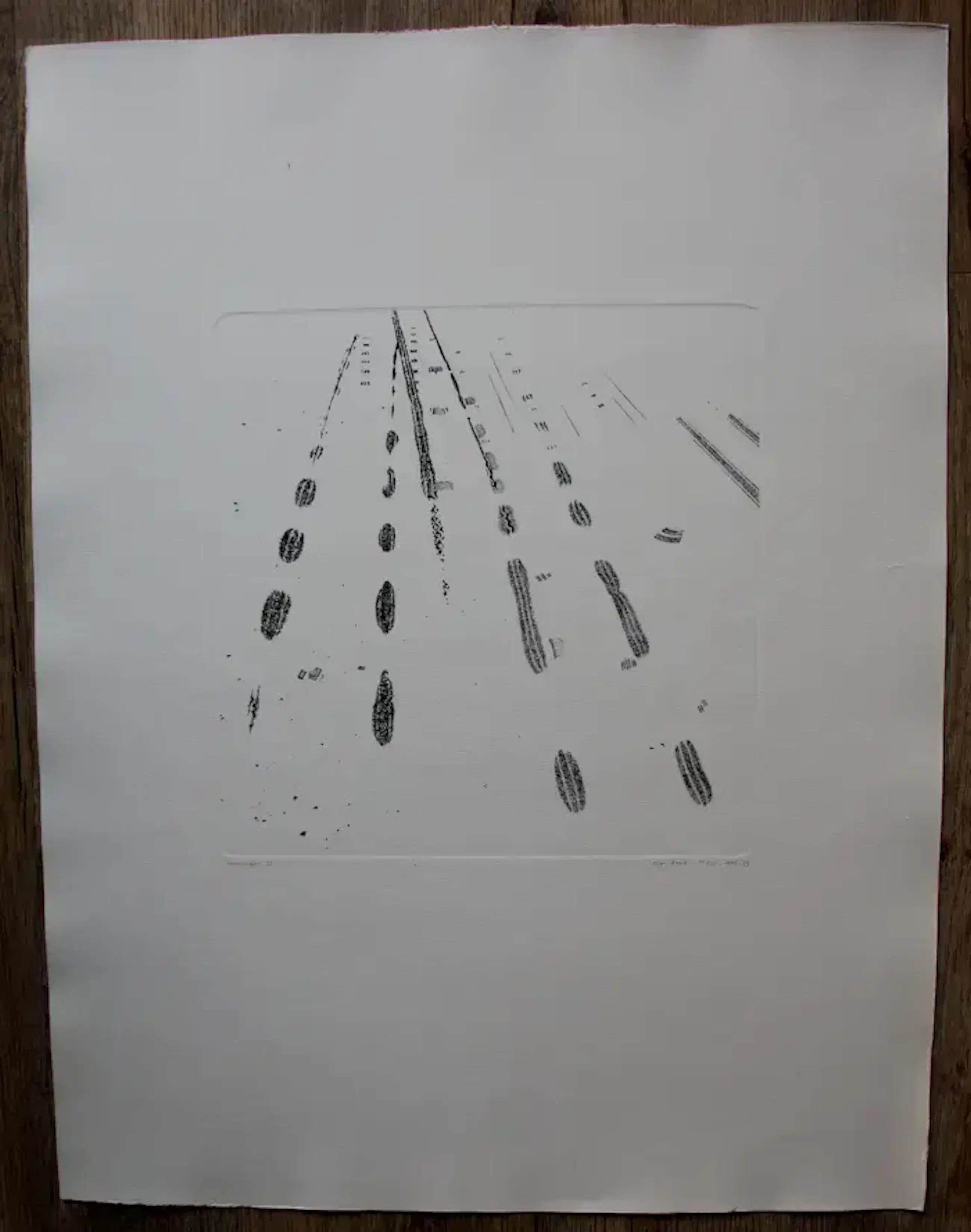 Ets van Ellen Jens uit 1979. Titel: Remmingen I. Oplage: Eigen druk, 22/30. Afmetingen blad: H66 x b50cm. Afmetingen voorstelling: H29 x b29cm. Het werk is rechts onderaan gesigneerd door de kunstenaar. De authenticiteit van het aangeboden werk wordt volledig gegarandeerd. Een certificaat van echtheid kan, op aanvraag, worden gemaild.