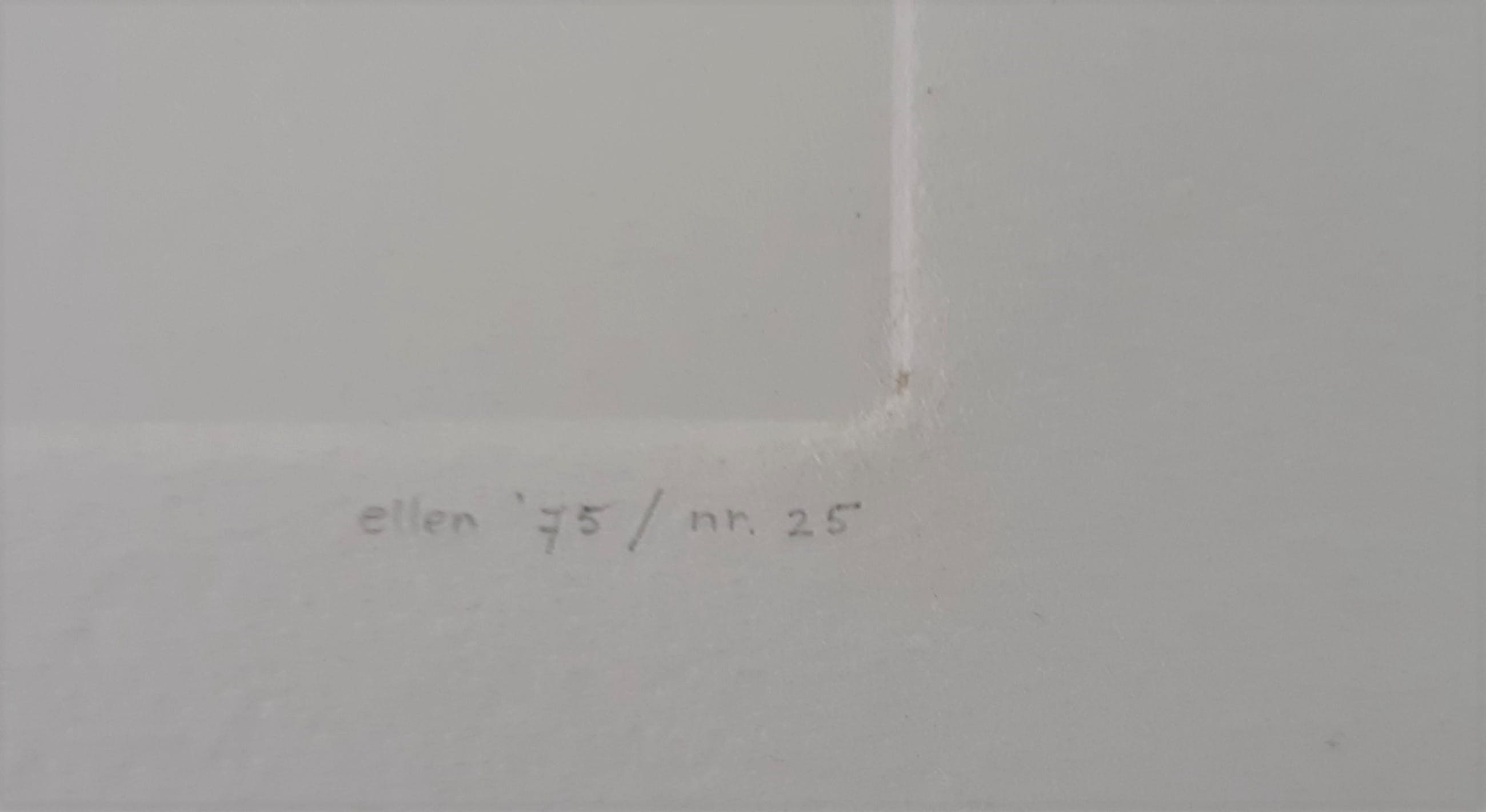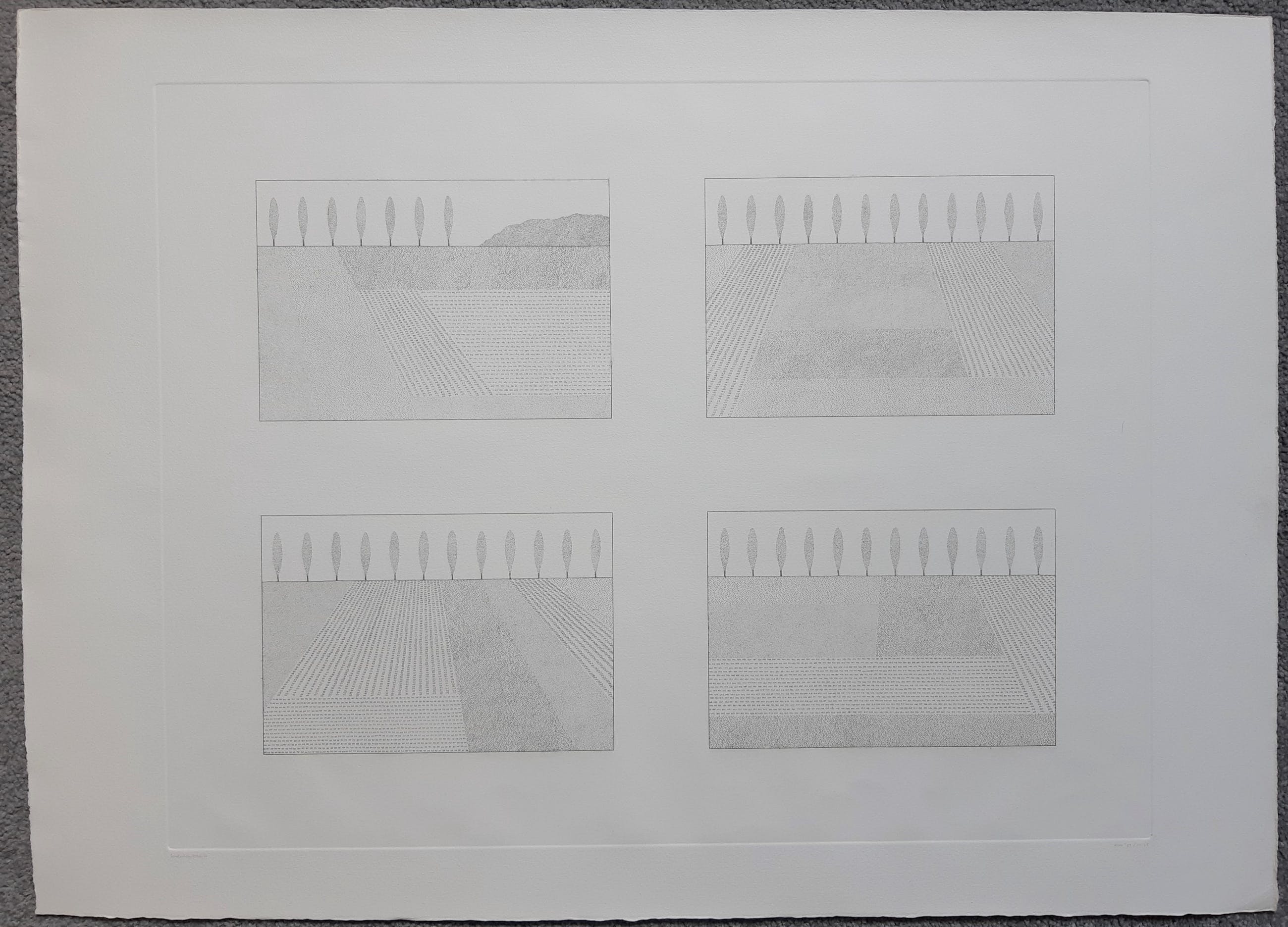 4 etsen in 1 plaat van Ellen Jens. De etsen zijn ieder 15 x 21,5 cm, het blad is 56 x 78 cm. Met potlood gesigneerd, gedateerd, genummerd en van titel voorzien. Het werk is in nieuwstaat.