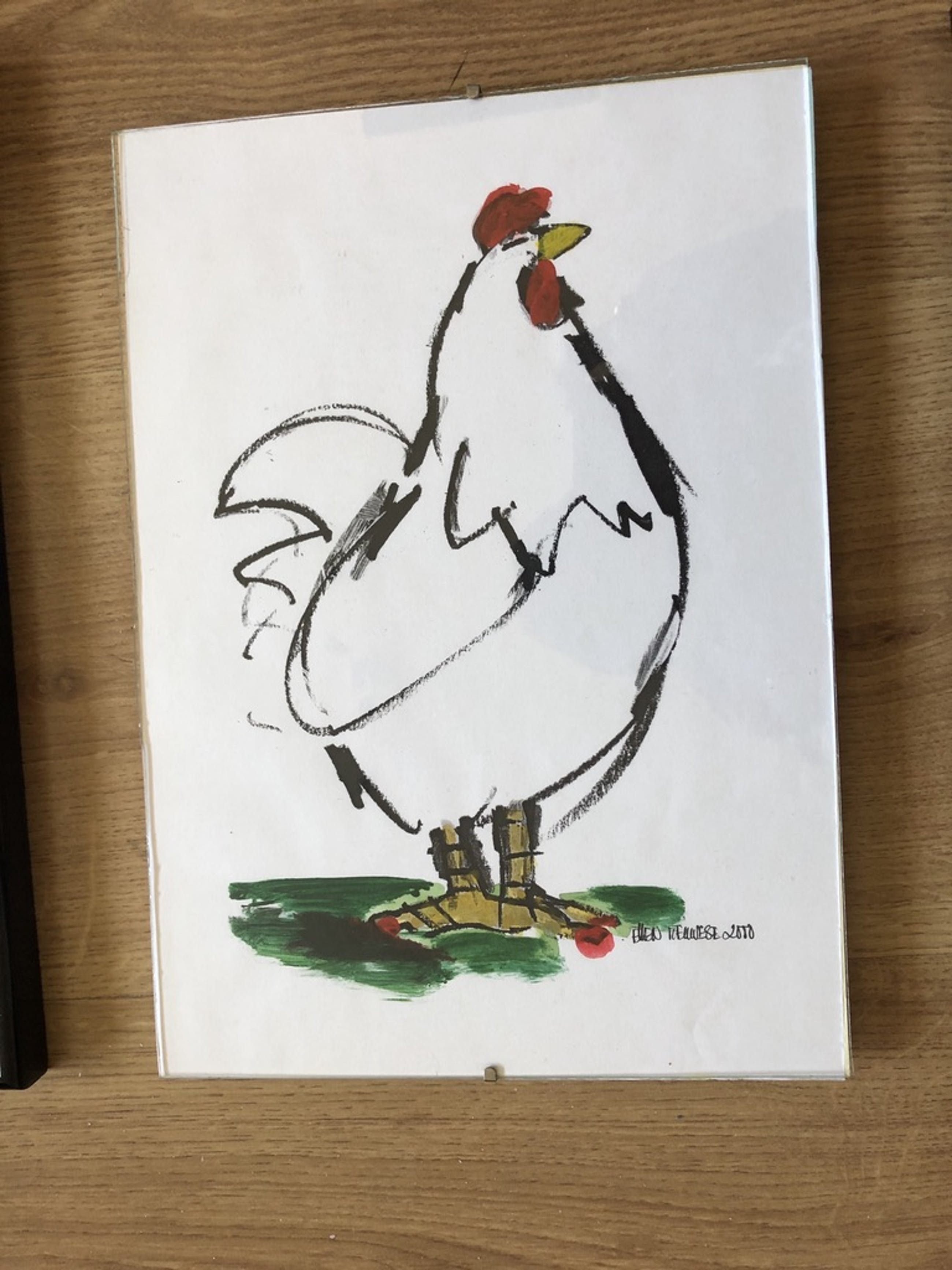 Het betreft 3 vrolijke kip schilderijtjes uit 2000.