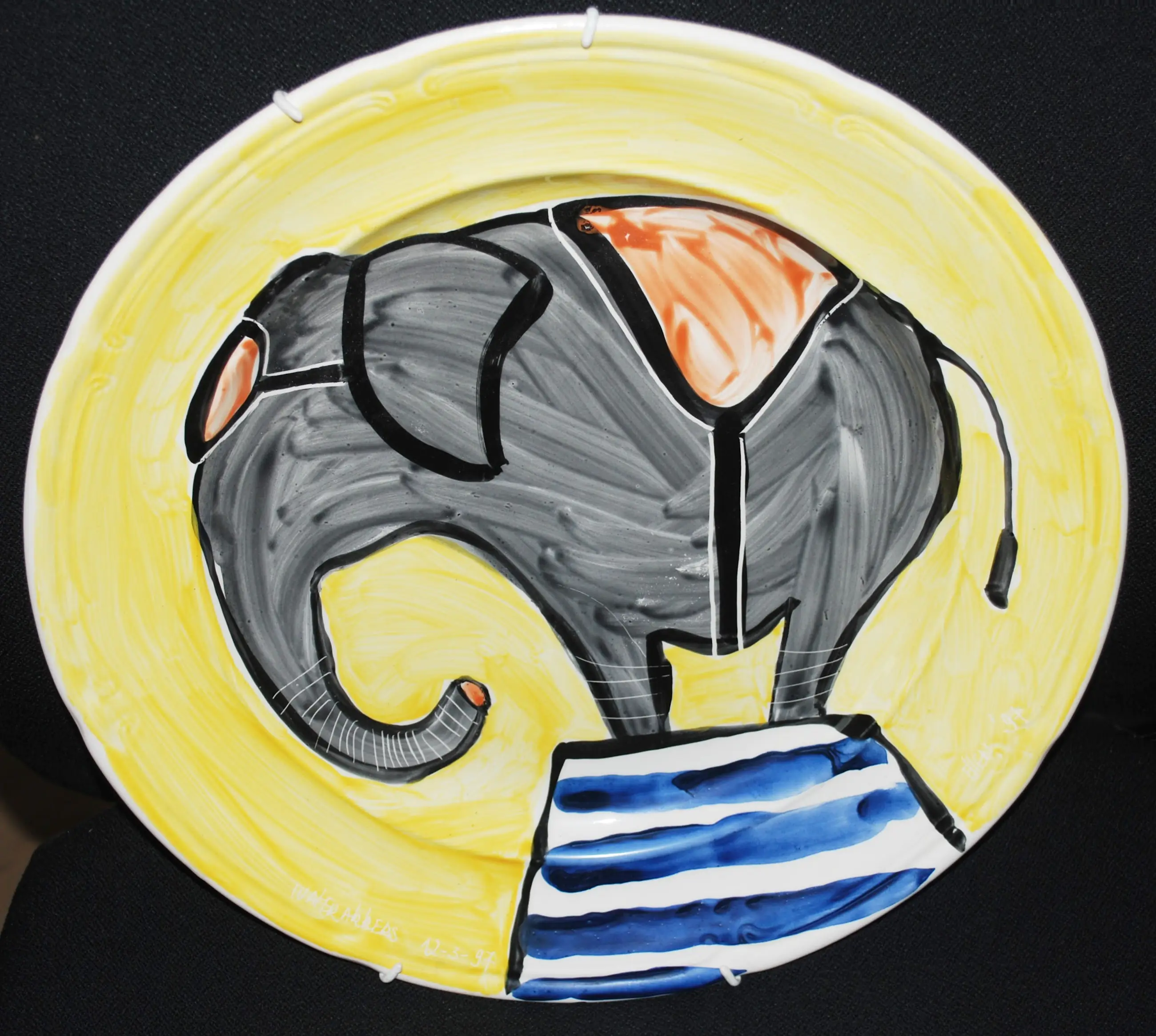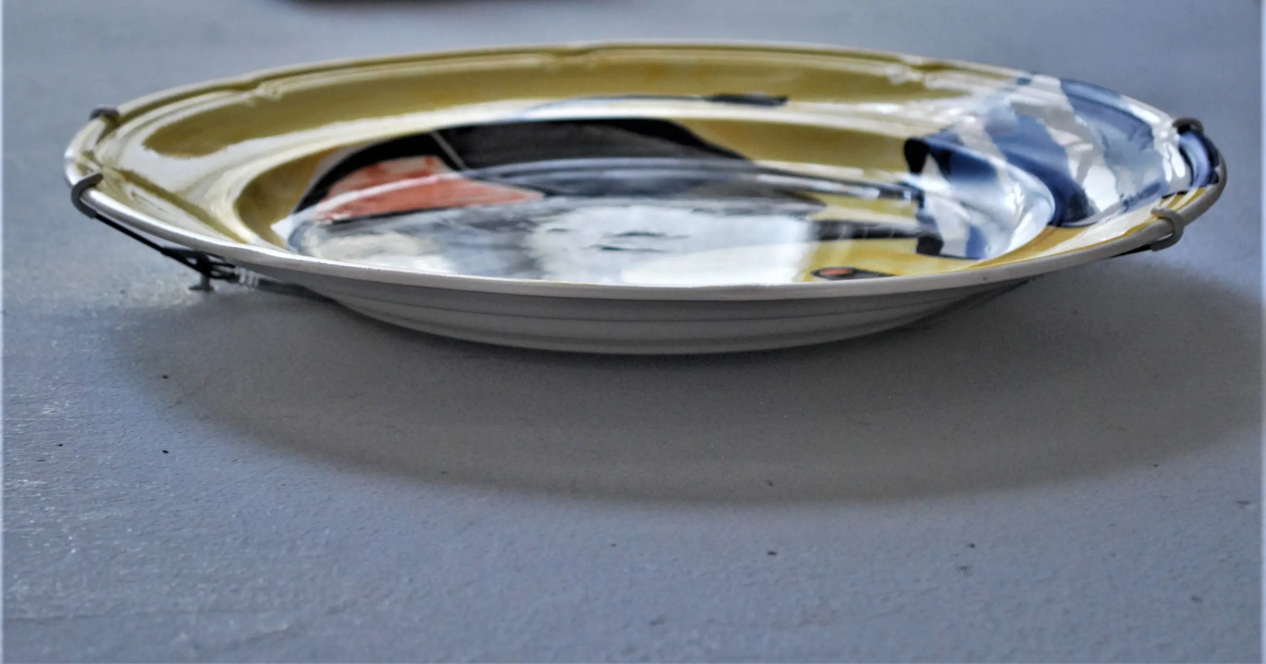 Handbeschilderd bord (geschulpte randen) met een diameter van liefst 35 cm, ca. 3.5/4 cm diep.